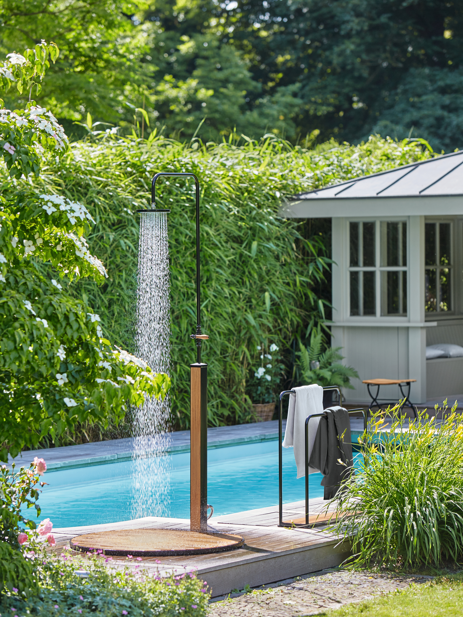 Die Gartendusche schont insofern Ressourcen, als auch kalt – ohne Gas- oder Stromanschluss – geduscht werden kann und das verbrauchte Wasser dem Garten zugutekommt, statt ins Abwasser zu fließen. Um den Boden nicht zu belasten, empfehlen wir eine Dusche mit Naturseife.