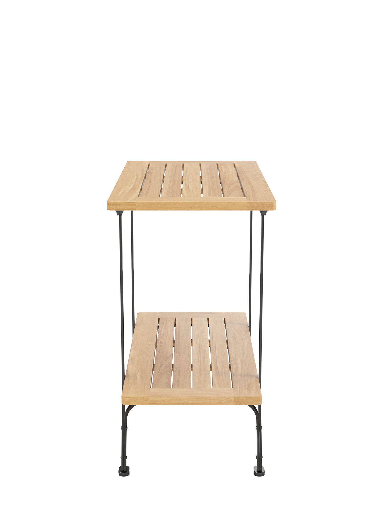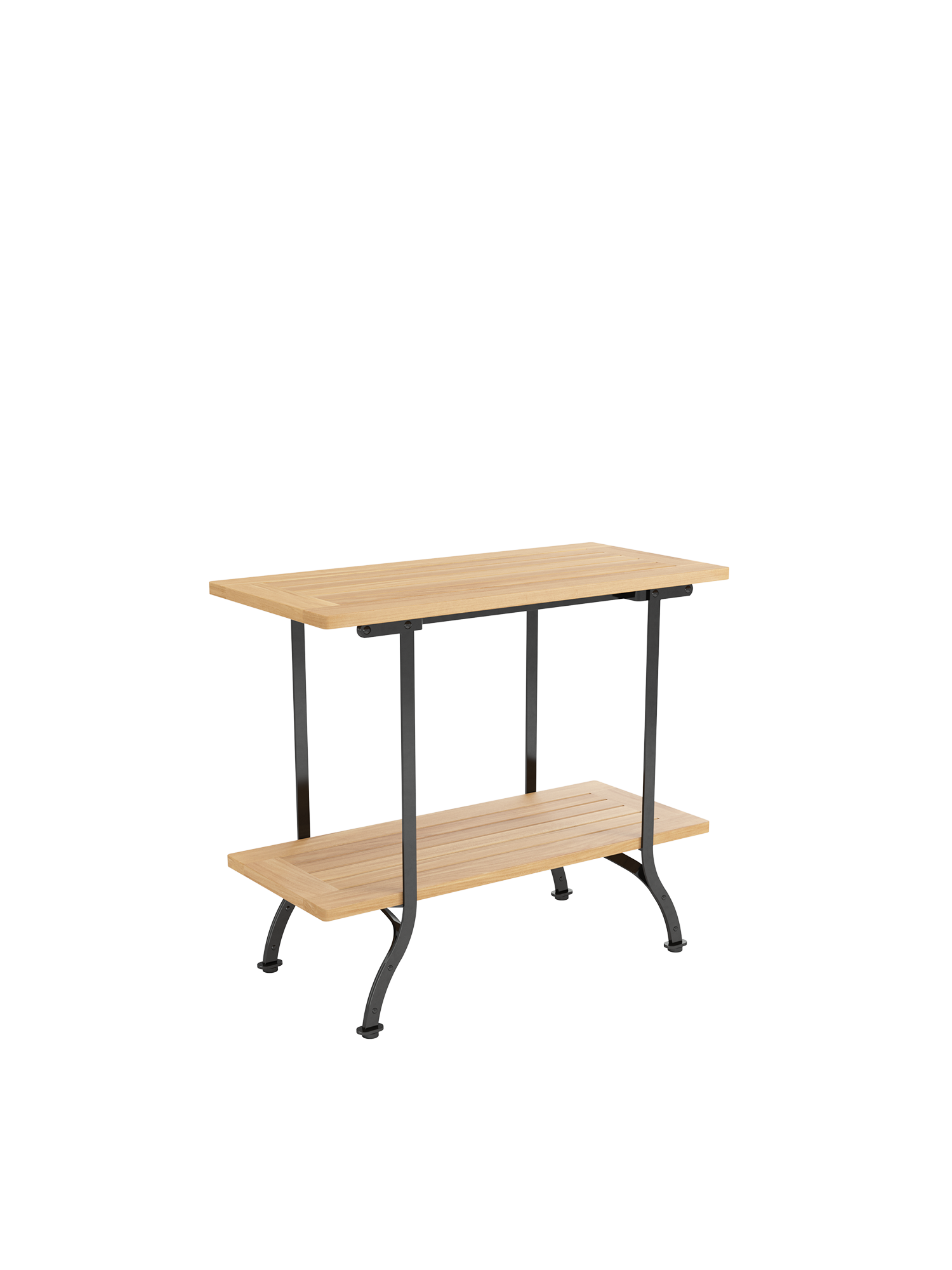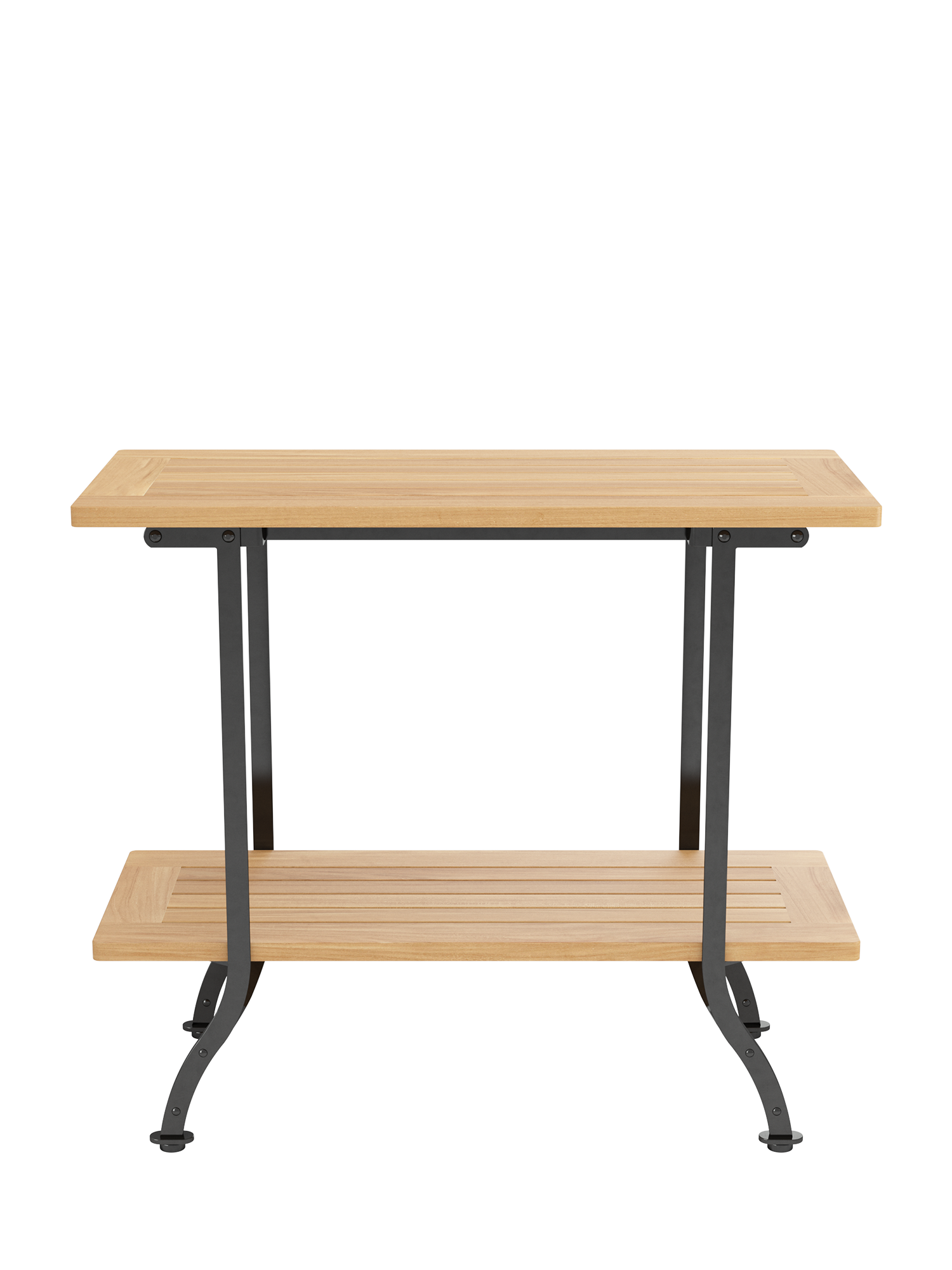 Der passende Konsoltisch zur Serie hat ein Gestell aus verzinktem, graphitschwarz pulverbeschichtetem Stahl. Auf zwei Ebenen bietet er Platz für Geschirr und Accessoires. Mit ihm lassen sich zudem viele feste Fontenay Tische ergänzen - ihre Maße sind perfekt aufeinander abgestimmt. Fußgleiter aus abriebfestem Kunststoff schützen wertvolle Böden vor Kratzern.