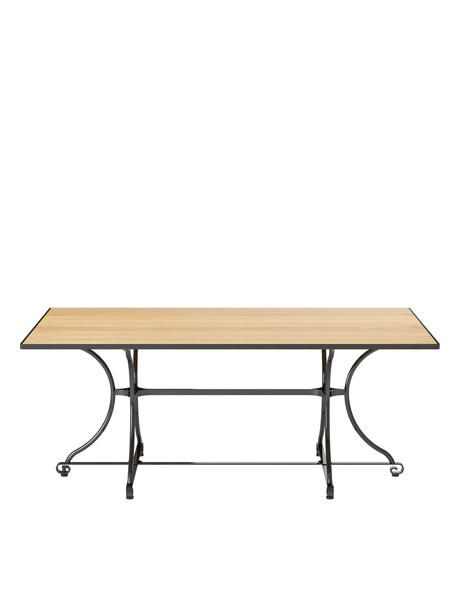 Die historischen Vorbilder der Fontenay Gartenmöbel mit dem unverwechselbaren Schwung avancierten schon im 19. Jahrhundert zu Favoriten. Heute bringen sie Grüße aus der Belle Époque in ländliche und urbane Refugien. Der niedrige Esstisch bereitet die Basis für ungezwungene Tafelfreuden im Freien. Mit 65 Zentimetern Höhe ist er exakt so bemessen, dass man in Sessel oder Bank im Loungeformat bequem daran essen kann – oder auch nur einen Cocktail genießen.