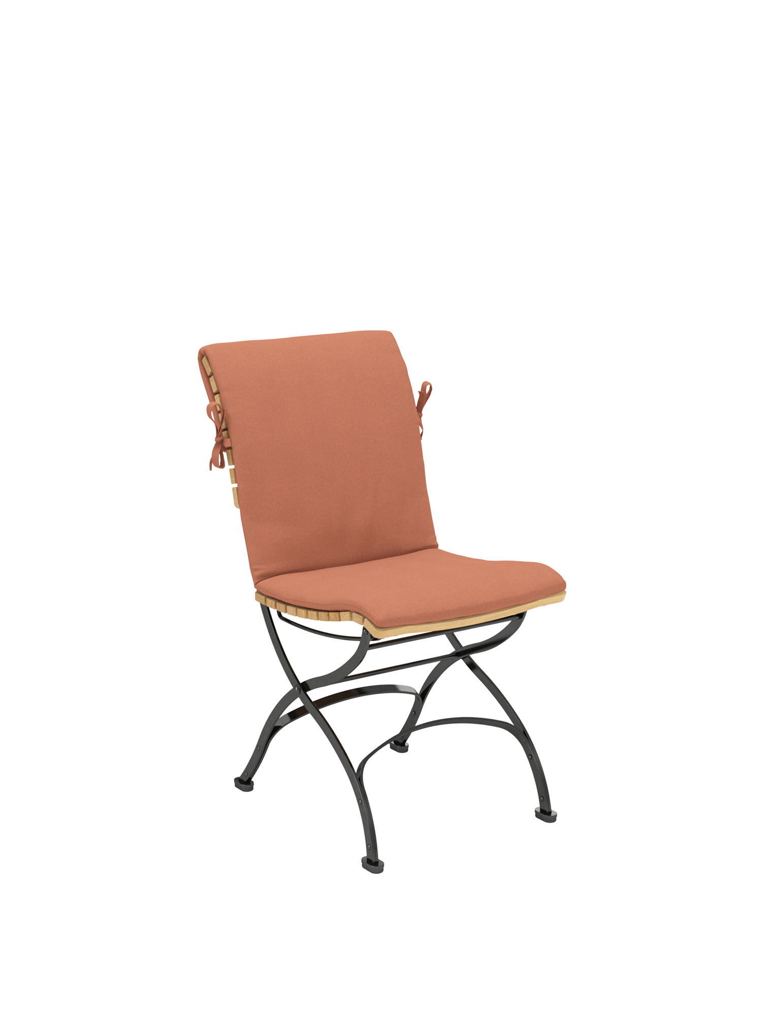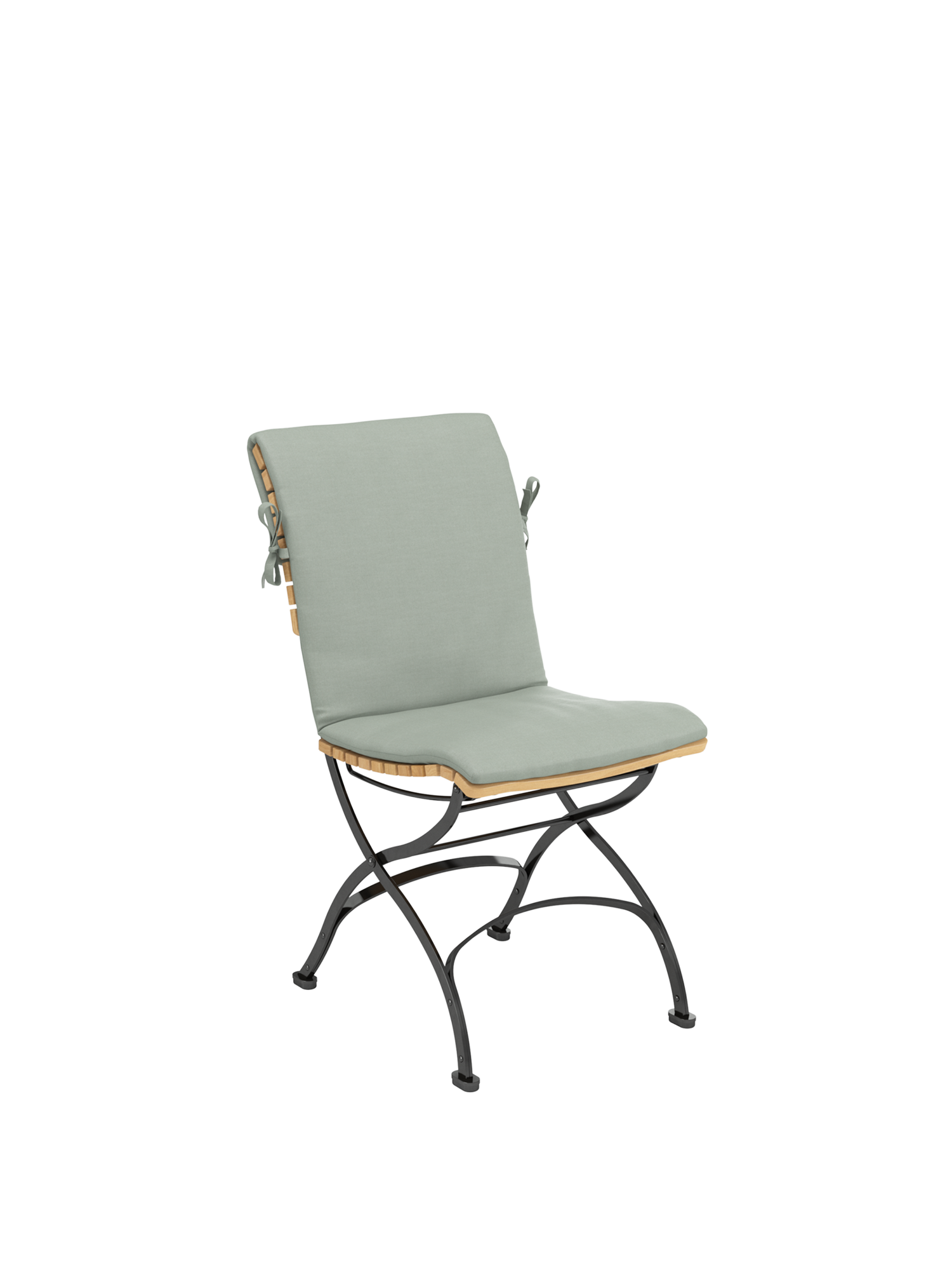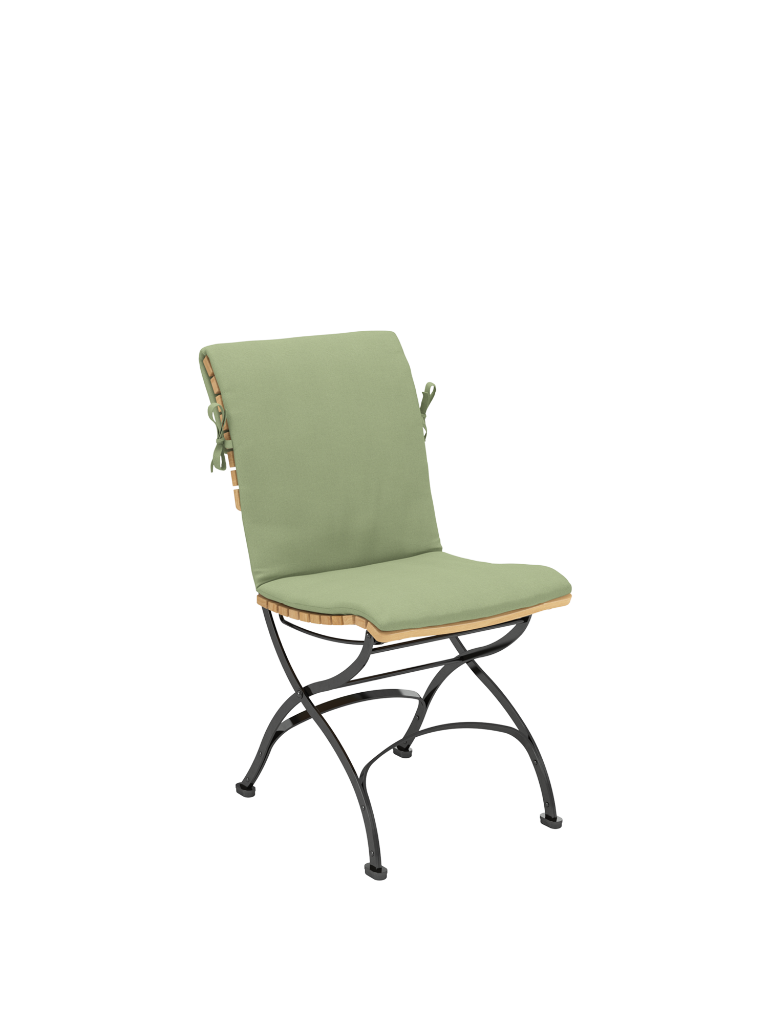 Die Rückenlehne des Fontenay Stuhls besteht aus massiven Teakleisten, die in engem Abstand aufeinander folgen. Ihre Form ist nach einem der ungewöhnlichsten Kurvenverläufe modelliert: dem des menschlichen Rückens. Die große Sitzfläche aus Teak ist dreidimensional geformt, so dass sie sich dem Körper anschmiegt. Vorn ist sie zur besseren Schenkelauflage abgerundet. Auflagen in verschiedenen Farbtönen erhöhen noch die Bequemlichkeit der Möbel und setzen feine Akzente.