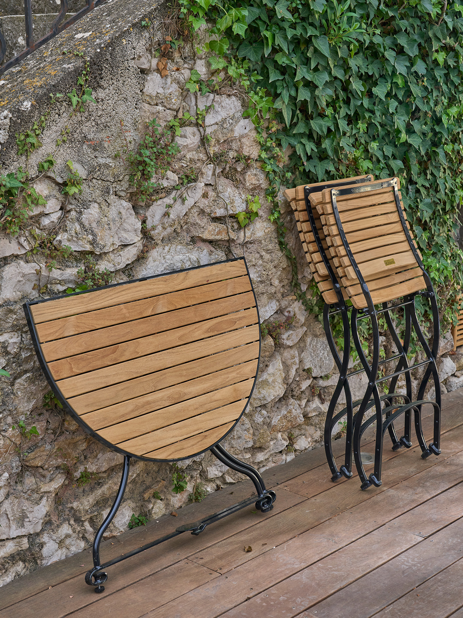 - ergonomisch geformte Sitz- und Rückenflächen aus Plantagenteak.