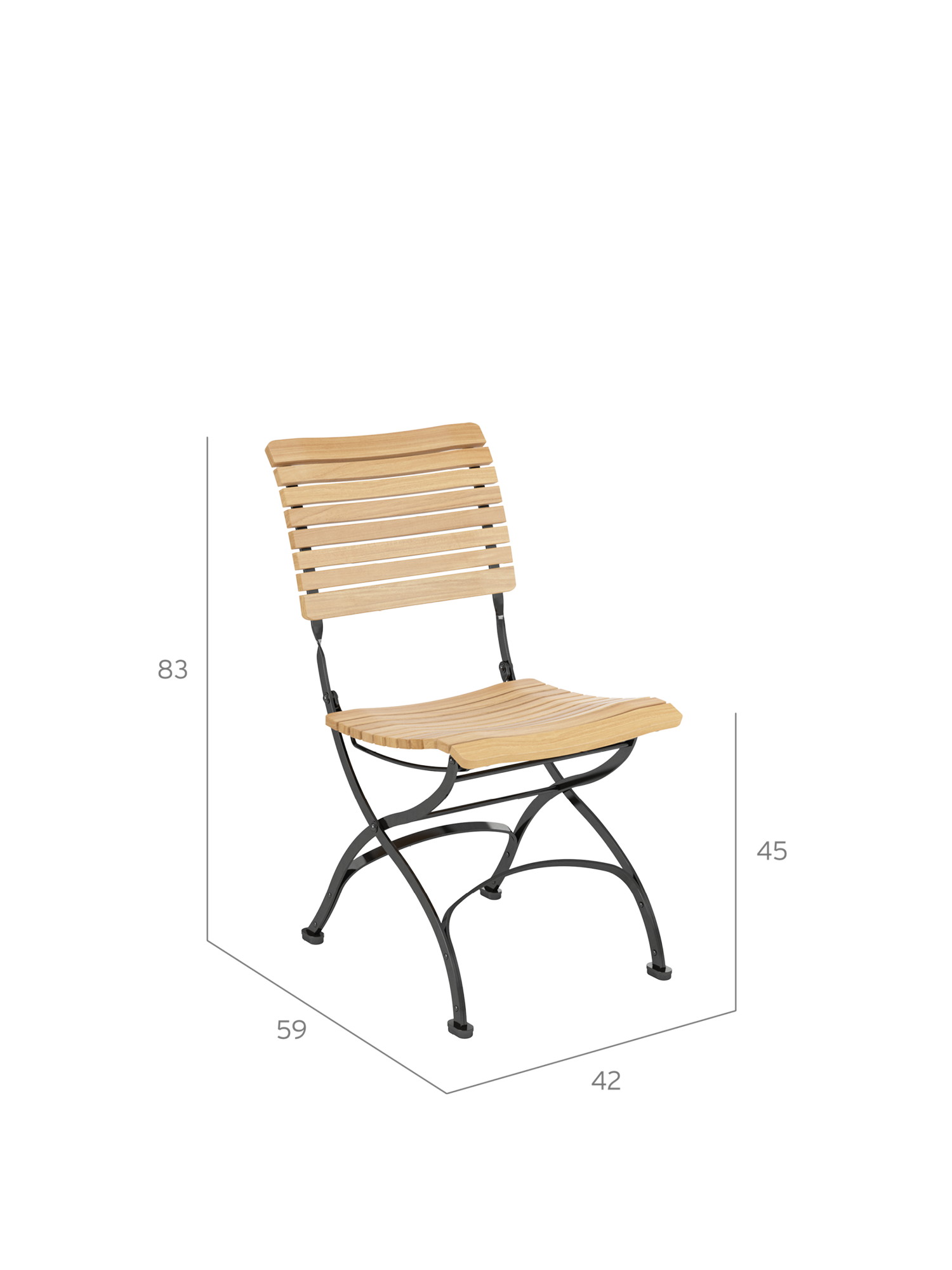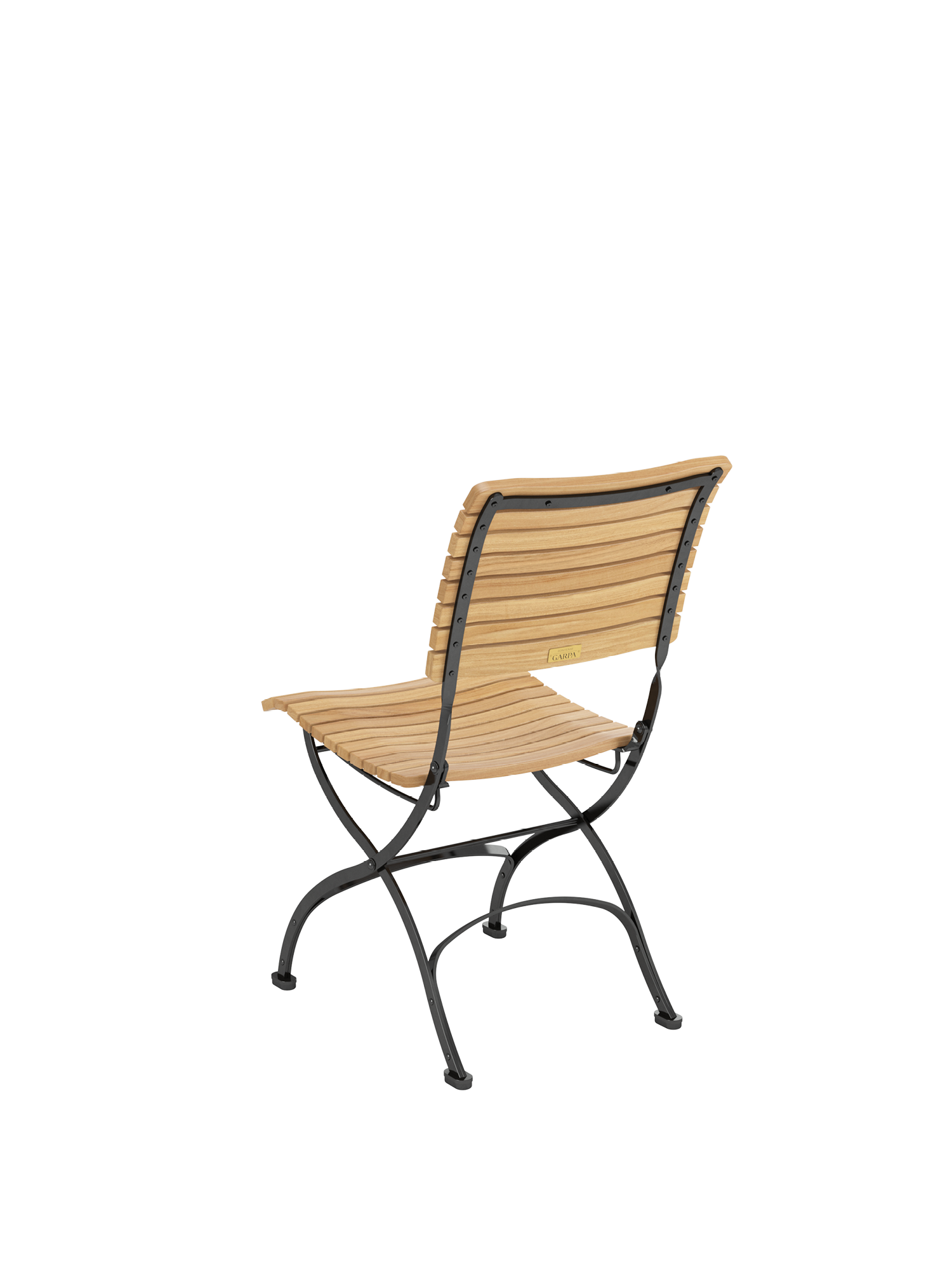 Die Rückenlehne des Fontenay Stuhls wird aus massiven Teakleisten gefertigt, die in engem Abstand aufeinander folgen. Ihre Form ist nach einem der ungewöhnlichsten Kurvenverläufe modelliert: dem des menschlichen Rückens. Die dreidimensional geformte Sitzfläche schmiegt sich dem Körper an. Das Gestell besteht aus verzinktem, pulverbeschichtetem Stahl. Zusammengefaltet ist der Stuhl nur 12 Zentimeter schmal.