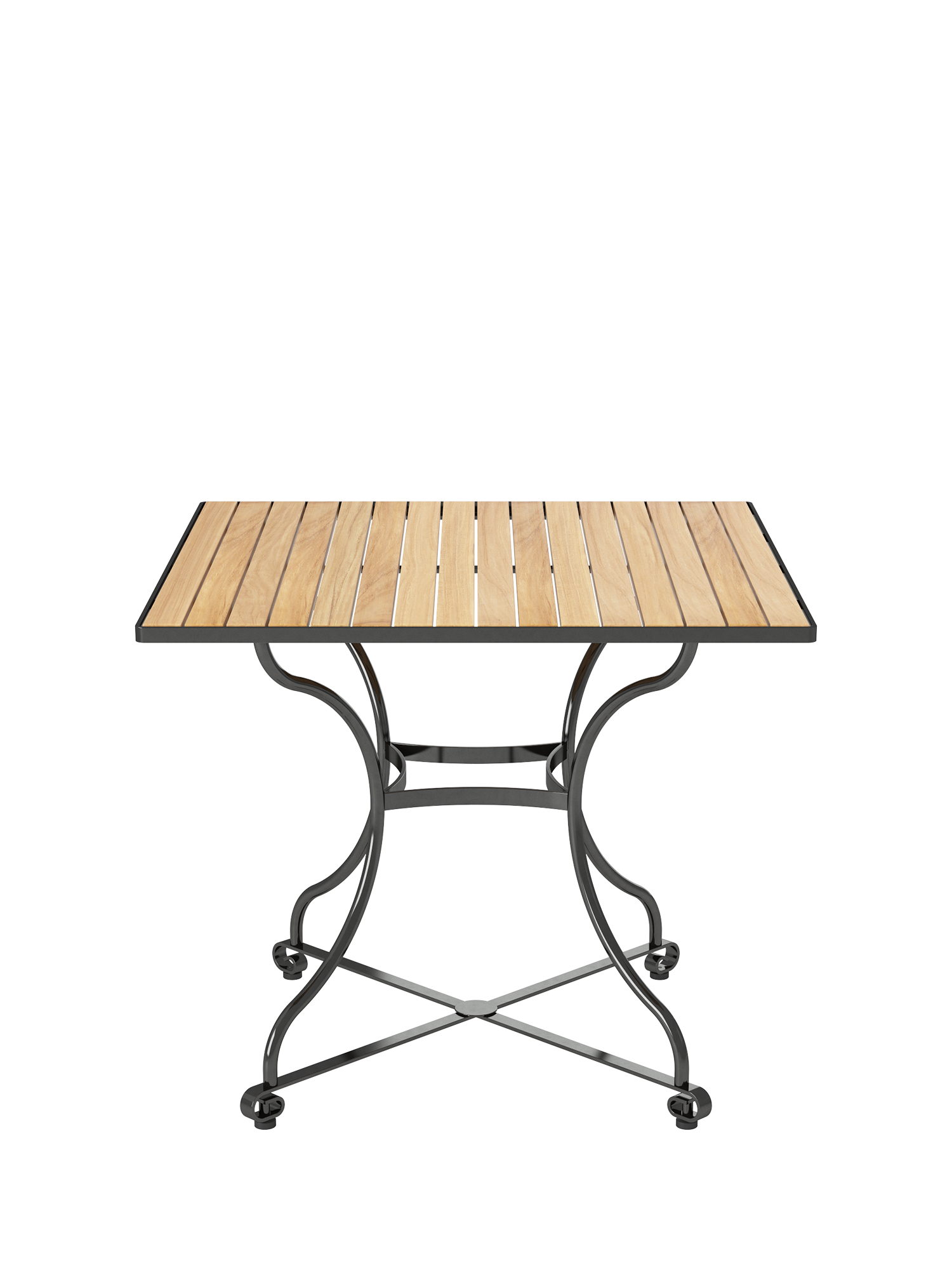Präzise bearbeitete Leisten aus massivem Plantagenteak prägen die edle Anmutung der klassischen Gartentische der Fontenay Kollektion in verschiedenen Größen.
