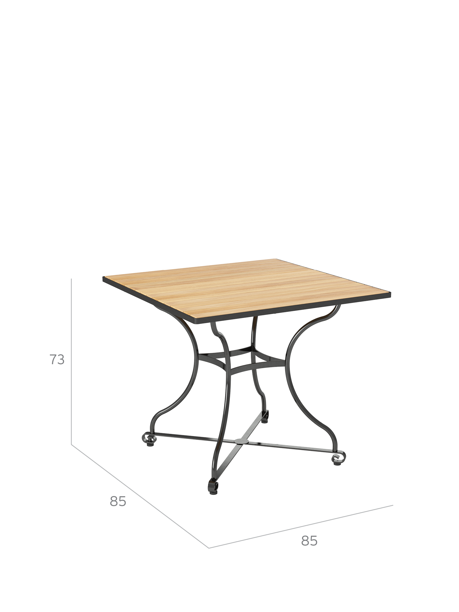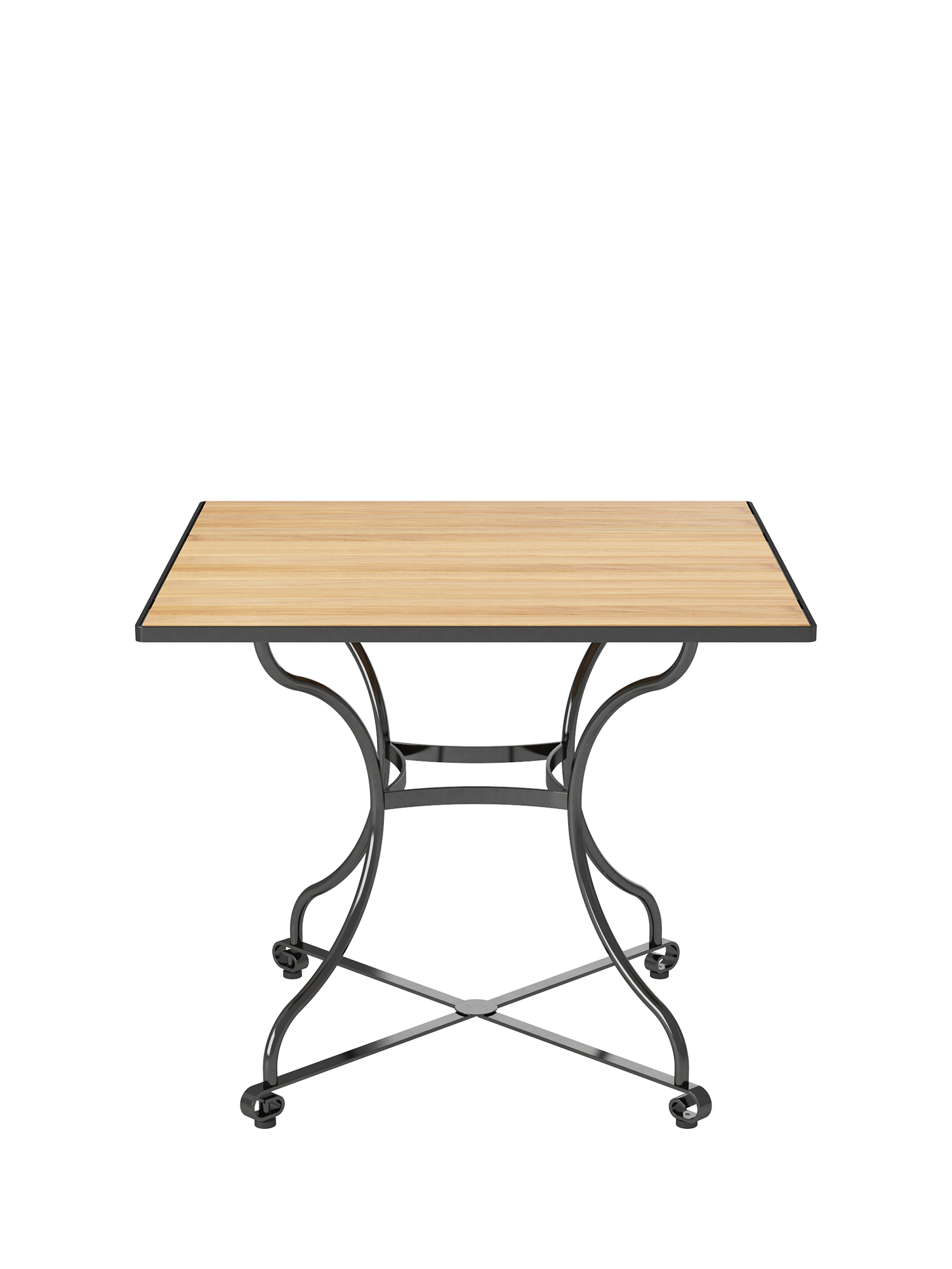 Die Fontenay Tische mit einer Oberfläche aus Plantagenteak laden mit selbstverständlicher Eleganz zur Tafelrunde. Das hochwertige Material widersteht problemlos Regen und Sonneneinstrahlung, Temperaturschwankungen und Frost. Im Laufe der Zeit entwickelt das Holz durch Witterungseinflüsse eine natürliche silbergraue Patina. Alle Fontenay Tische haben ein Gestell aus verzinktem, pulverbeschichtetem Stahl, die Tischplatte wird von einem Stahlreif gefasst. Fußgleiter aus abriebfestem Kunststoff gleichen Unebenheiten aus und schützen wertvolle Böden.