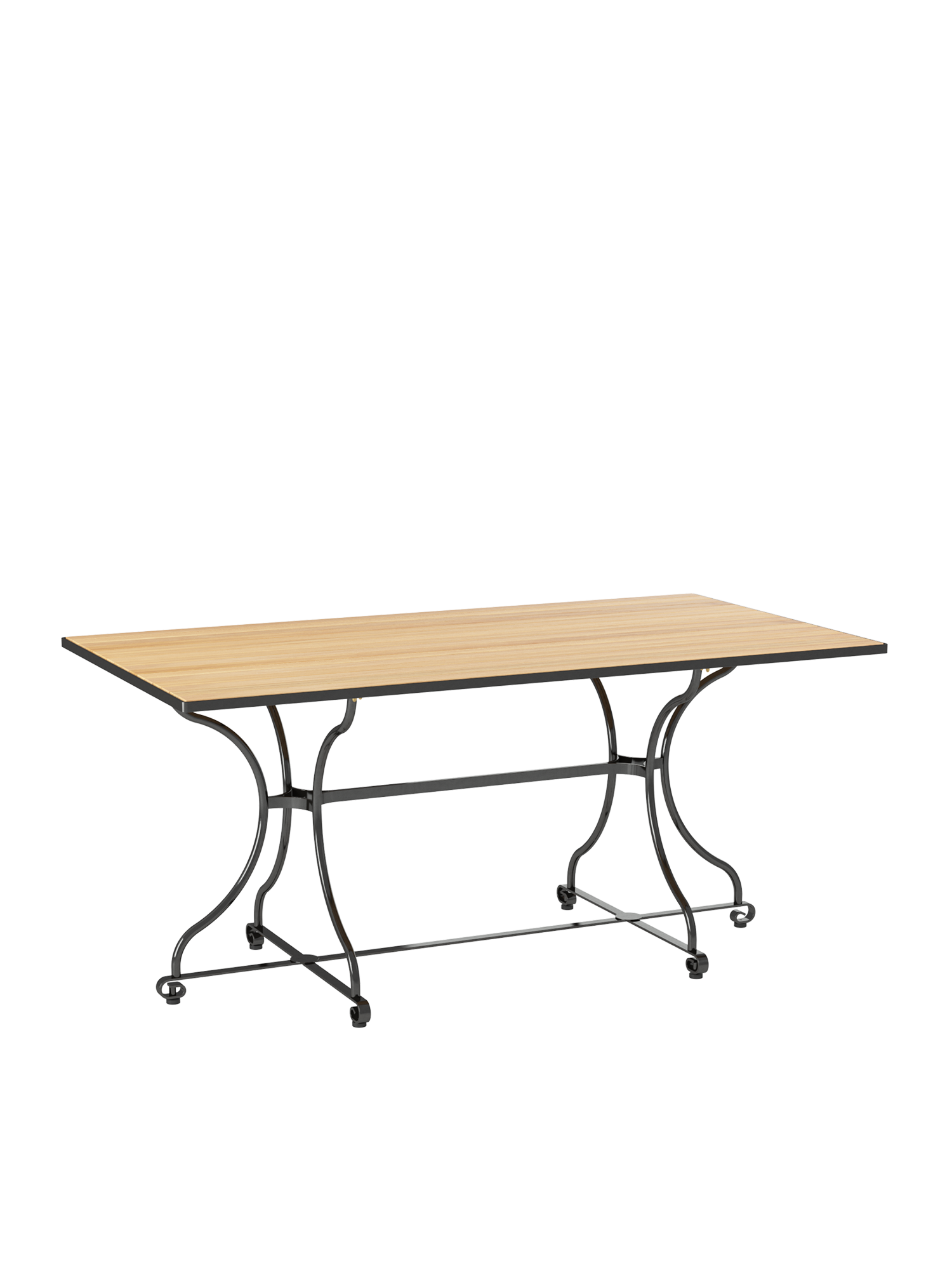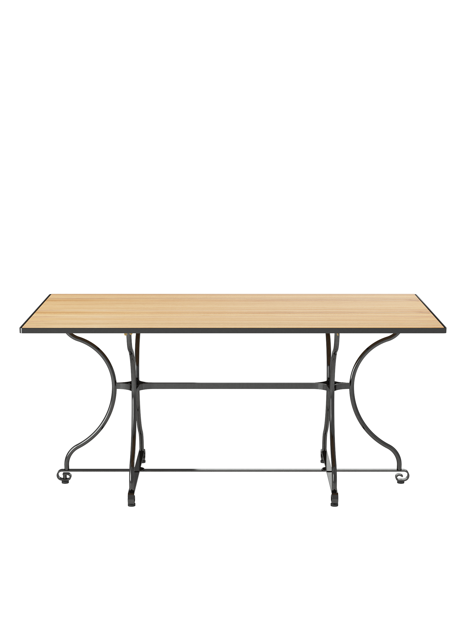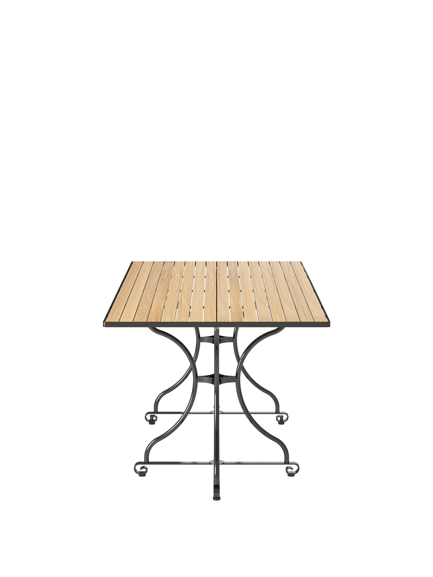 Die Fontenay Tische mit einer Oberfläche aus Plantagenteak laden mit selbstverständlicher Eleganz zur Tafel. Das hochwertige Material widersteht problemlos Regen und Sonneneinstrahlung, Temperaturschwankungen und Frost. Im Laufe der Zeit entwickelt das Holz durch Witterungseinflüsse eine natürliche silbergraue Patina. Alle Fontenay Tische haben ein Gestell aus verzinktem, pulverbeschichtetem Stahl, die Tischplatte wird von einem Stahlreif gefasst. Fussgleiter aus abriebfestem Kunststoff gleichen Unebenheiten aus und schützen wertvolle Böden.