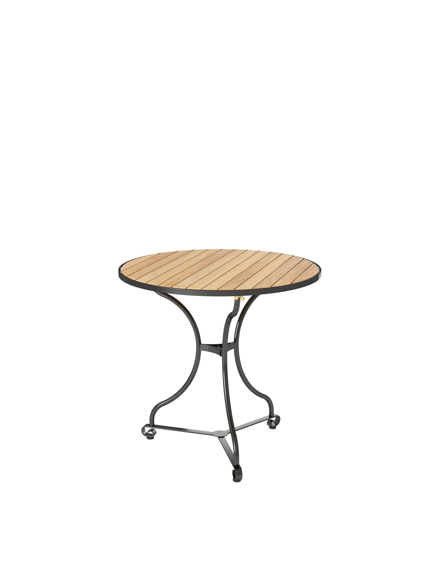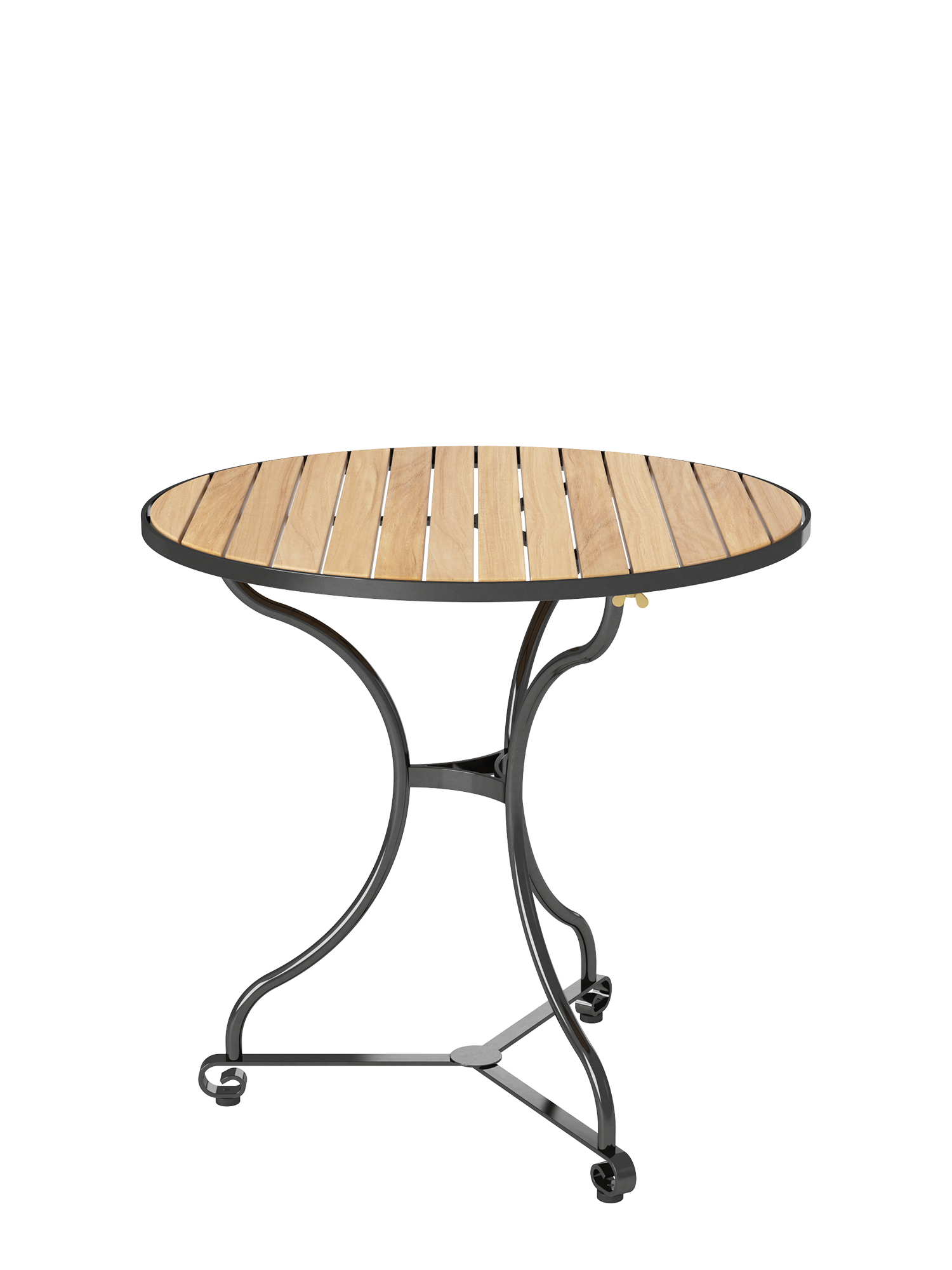 Präzise bearbeitete Leisten aus massivem Plantagenteak prägen die edle Anmutung der klassischen Gartentische der Fontenay Kollektion in verschiedenen Größen.