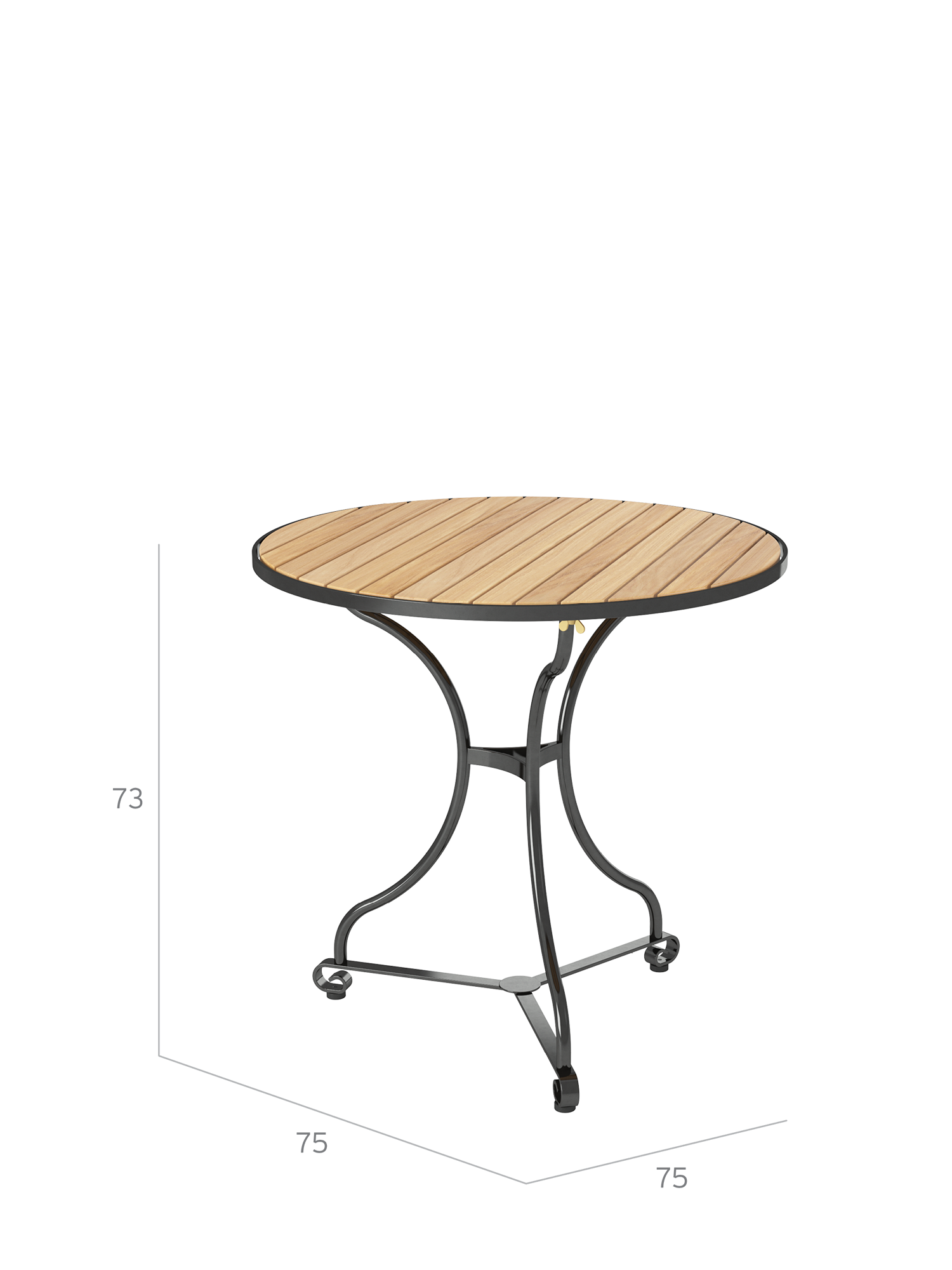 Für die Geselligkeit im kleinen Kreis: Die Fontenay Tische mit einer Oberfläche aus Plantagenteak laden mit selbstverständlicher Eleganz zur Tafelrunde. Das hochwertige Material widersteht problemlos Regen und Sonneneinstrahlung, Temperaturschwankungen und Frost. Im Laufe der Zeit entwickelt das Holz durch Witterungseinflüsse eine natürliche silbergraue Patina. Alle Fontenay Tische haben ein Gestell aus verzinktem, pulverbeschichtetem Stahl, die Tischplatte wird von einem Stahlreif gefasst. Fußgleiter aus abriebfestem Kunststoff gleichen Unebenheiten aus und schützen wertvolle Böden.