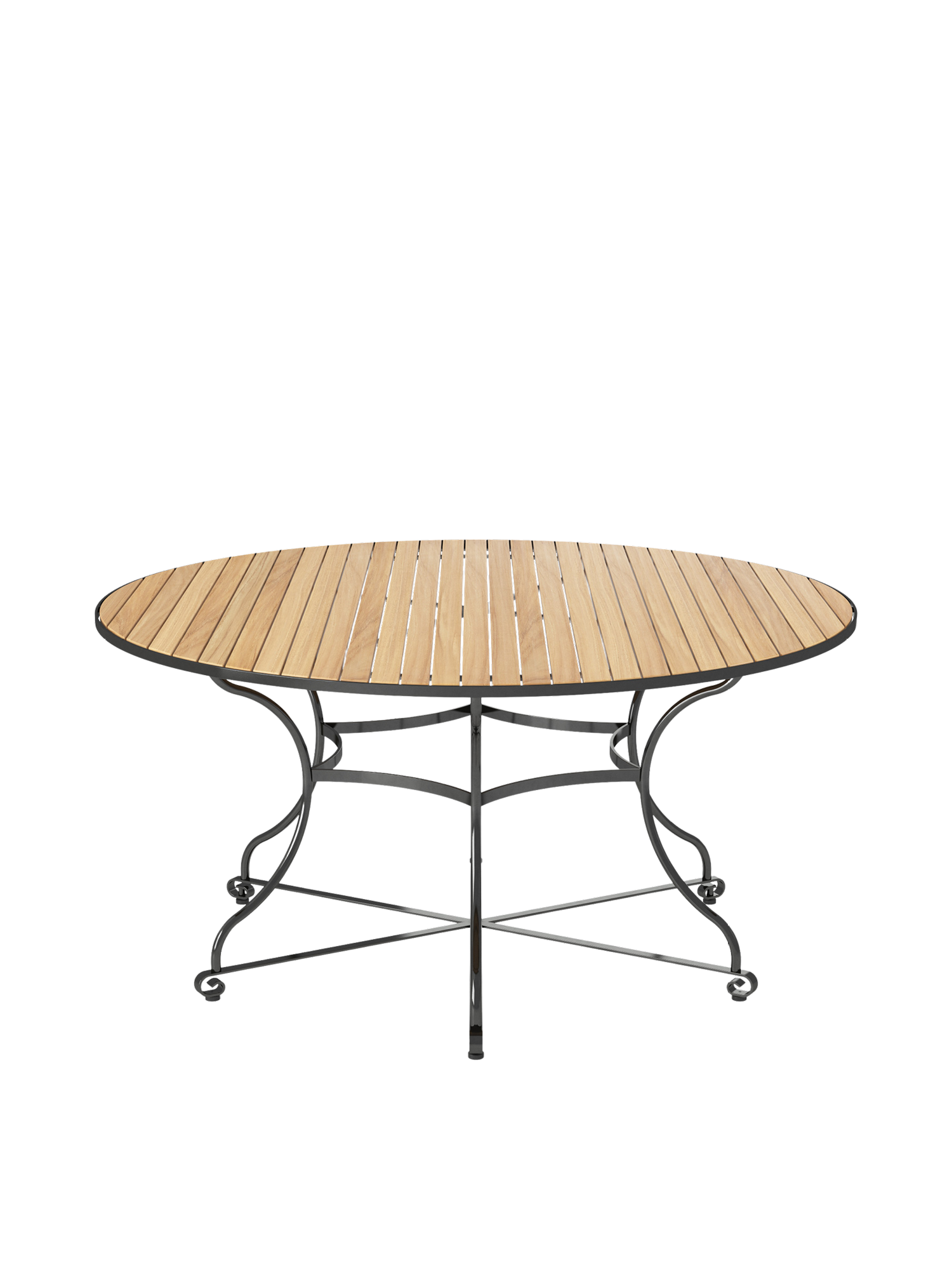 Präzise bearbeitete Leisten aus massivem Plantagenteak prägen die edle Anmutung der klassischen Gartentische der Fontenay Kollektion in verschiedenen Größen.
