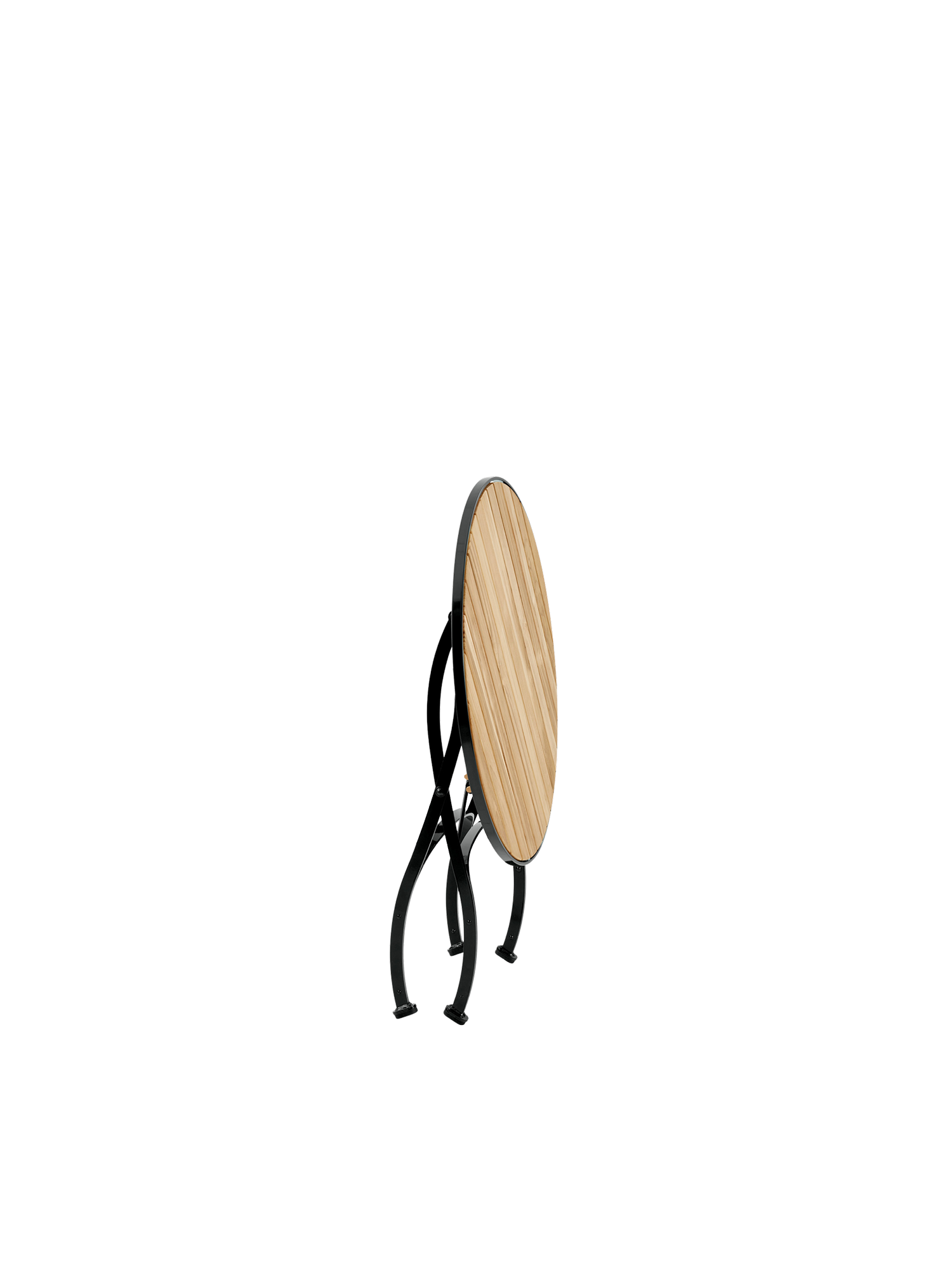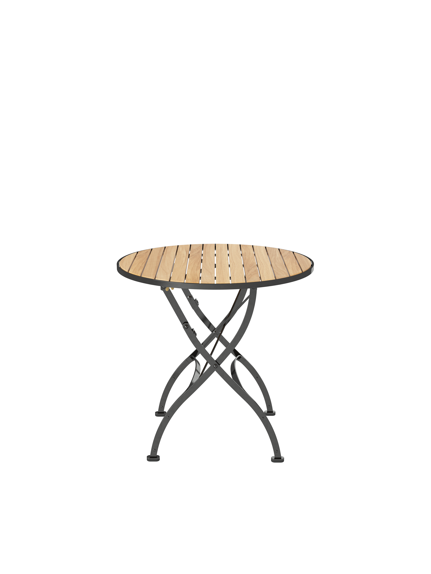 Präzise bearbeitete Leisten aus massivem Plantagenteak prägen die edle Anmutung des klappbaren Gartentisches der Fontenay Kollektion, der sich platzsparend verstauen lässt.