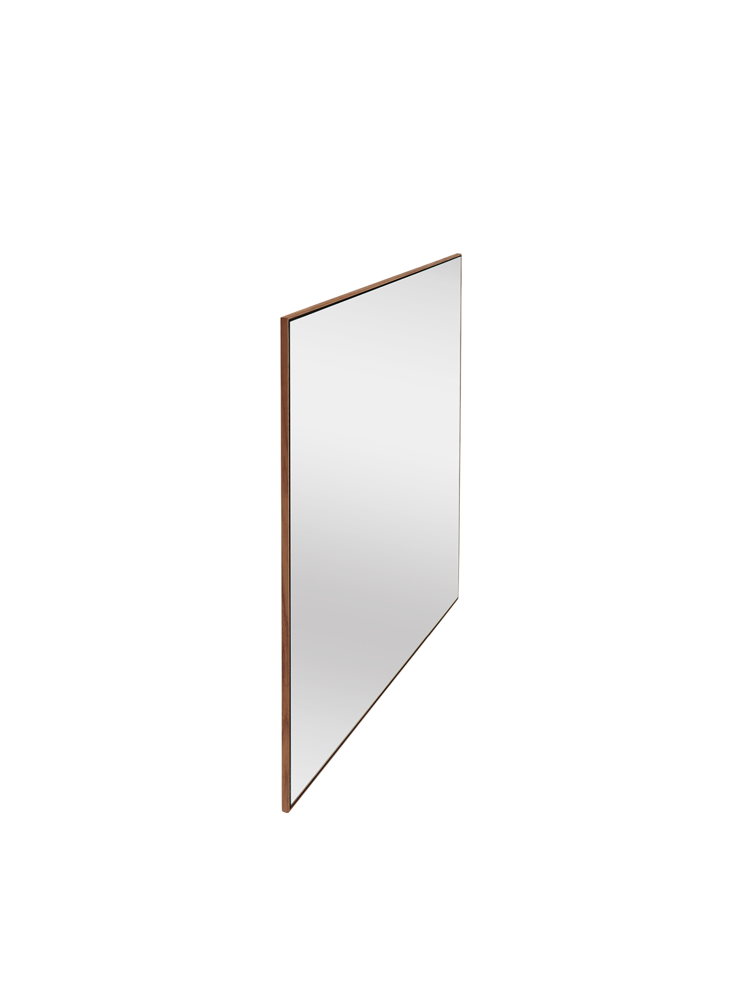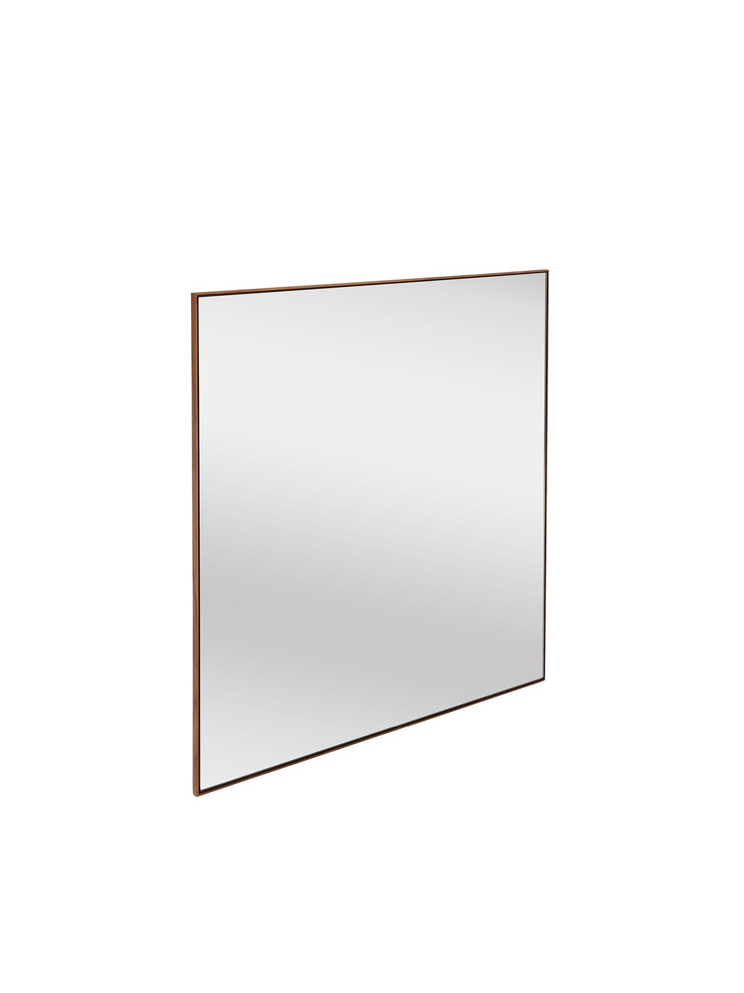 Ein Blickfang in wohnlichen Innenräumen: Der große quadratische Spiegel der Garvo Serie hat einen schmalen Rahmen aus amerikanischem Nussbaum.