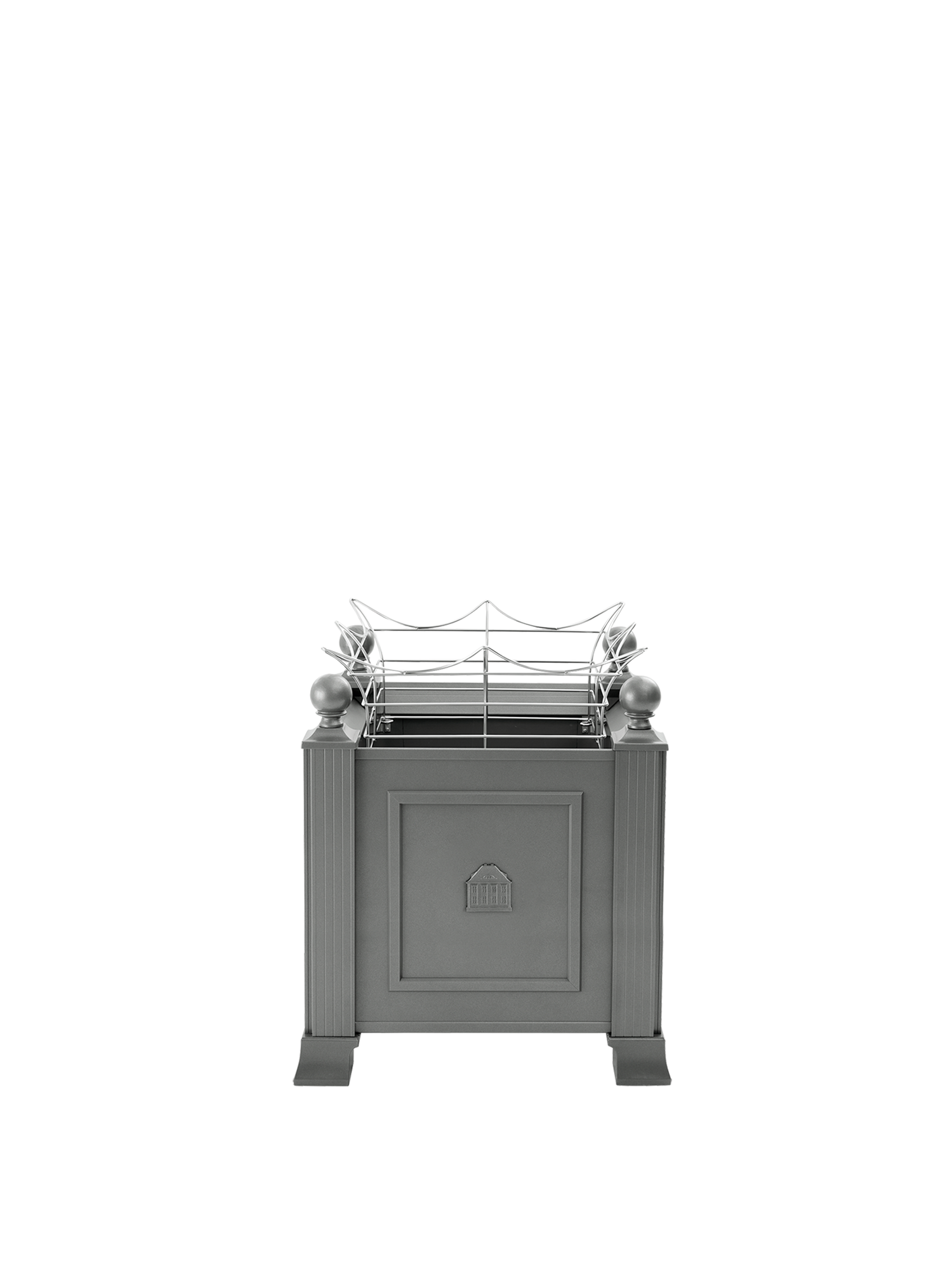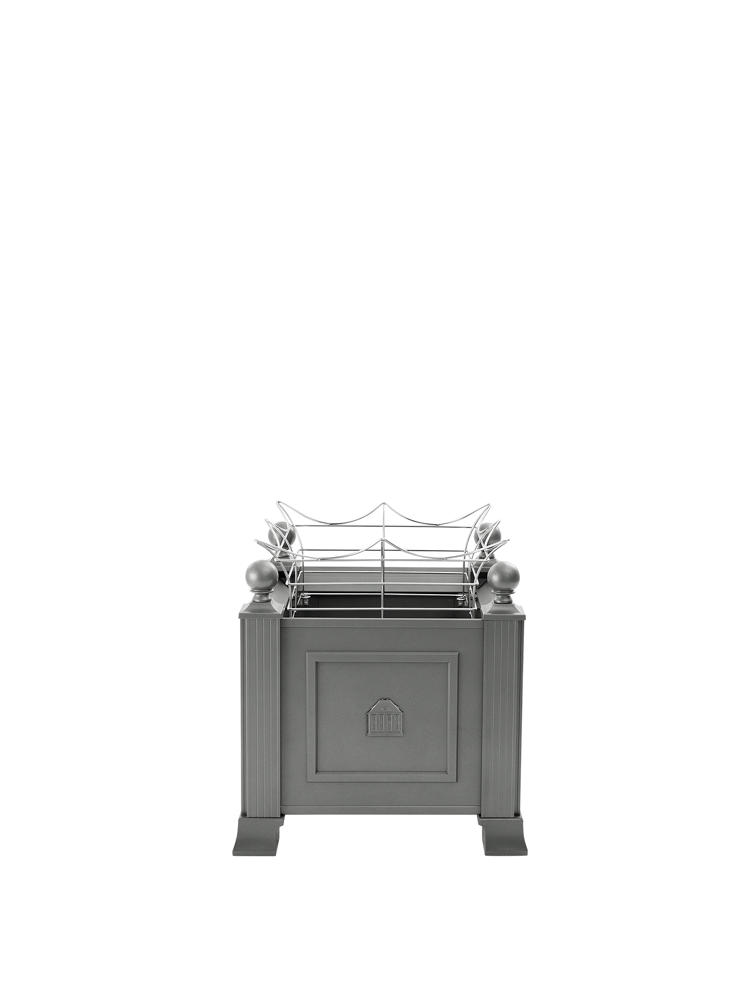Das niedrige Rankgitter aus elektropoliertem Rundedelstahl gibt breitwüchsig aufstrebenden Pflanzen Halt und Stabilität. Sein sanft geschwungenes Design fügt sich dezent in die Gestaltung ein. Das Rankgitter wird von innen an den vier Ecken der Kübel befestigt.