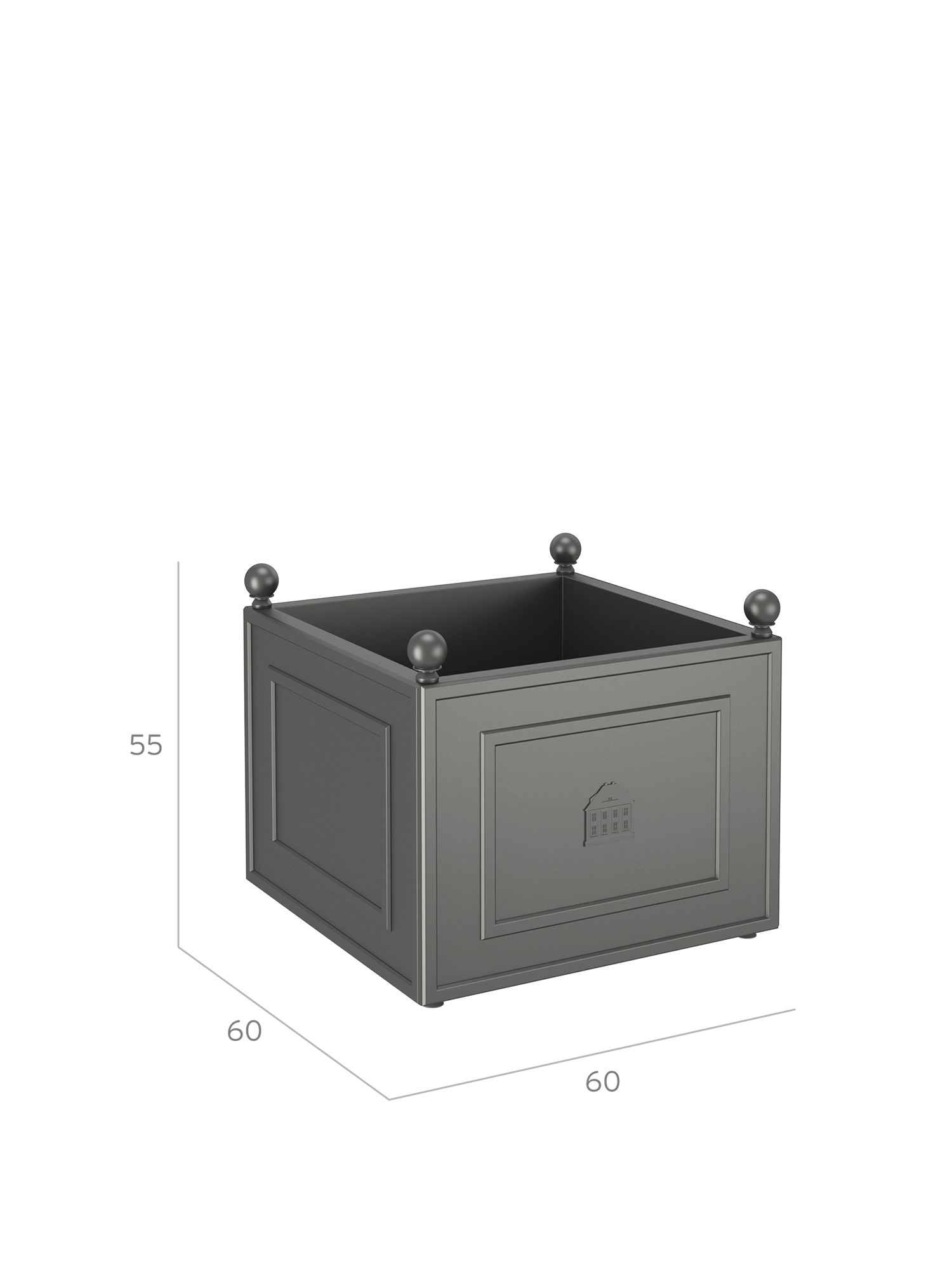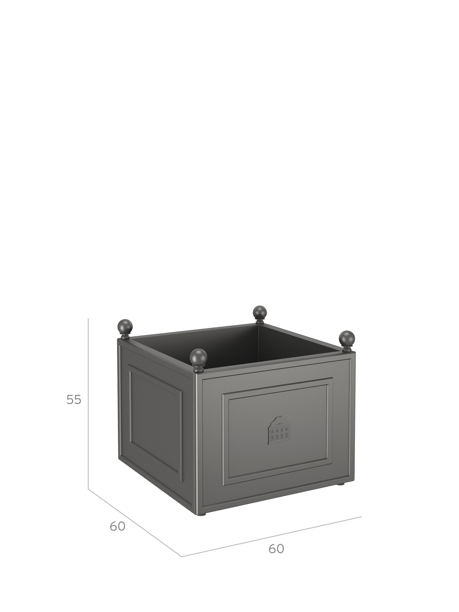 Besonders hochwertiges Aluminium mit einer Pulverbeschichtung, durchdachtes Design und ein ausgeklügeltes System gegen Staunässe und Frost sorgen dafür, dass die Schönheit und Qualität der Grenoble Pflanzkübel ihre Besitzer nachhaltig begeistert. Zierkugeln an den gerahmten Eckelementen setzen einen klassischen Akzent, ein Abbild des Garpa Stammhauses ist als Relief in eine der Seitenflächen eingearbeitet.