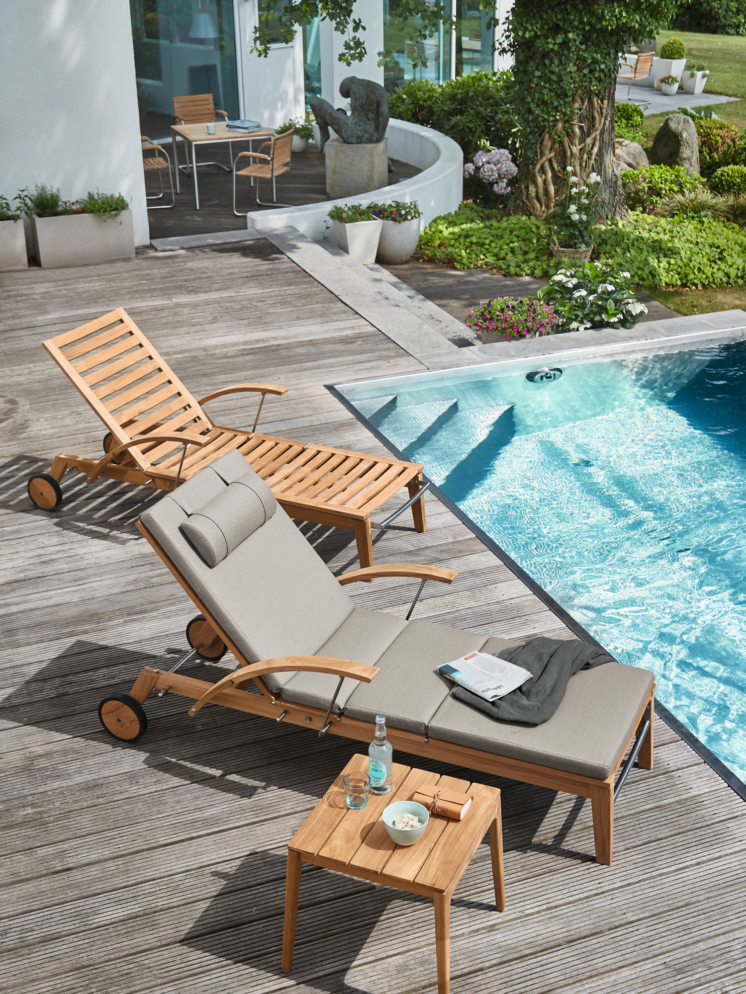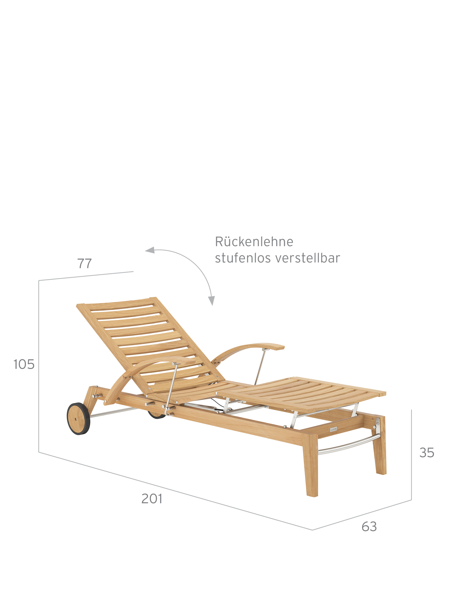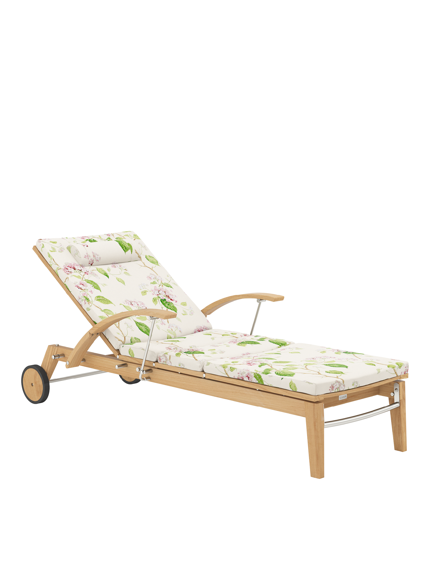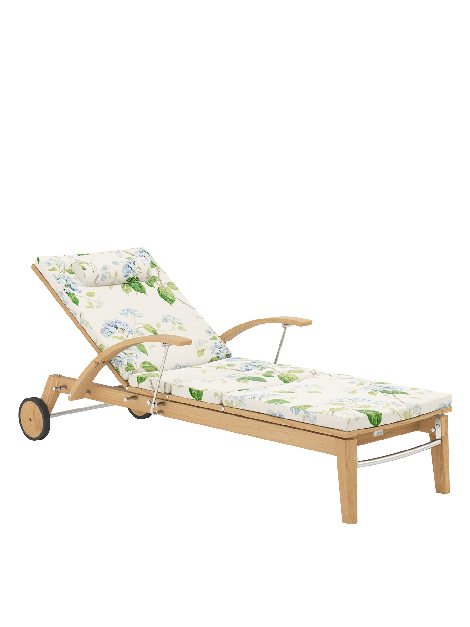 Dank ihrer Räder lässt sich die Liege leicht durch den Garten bewegen.