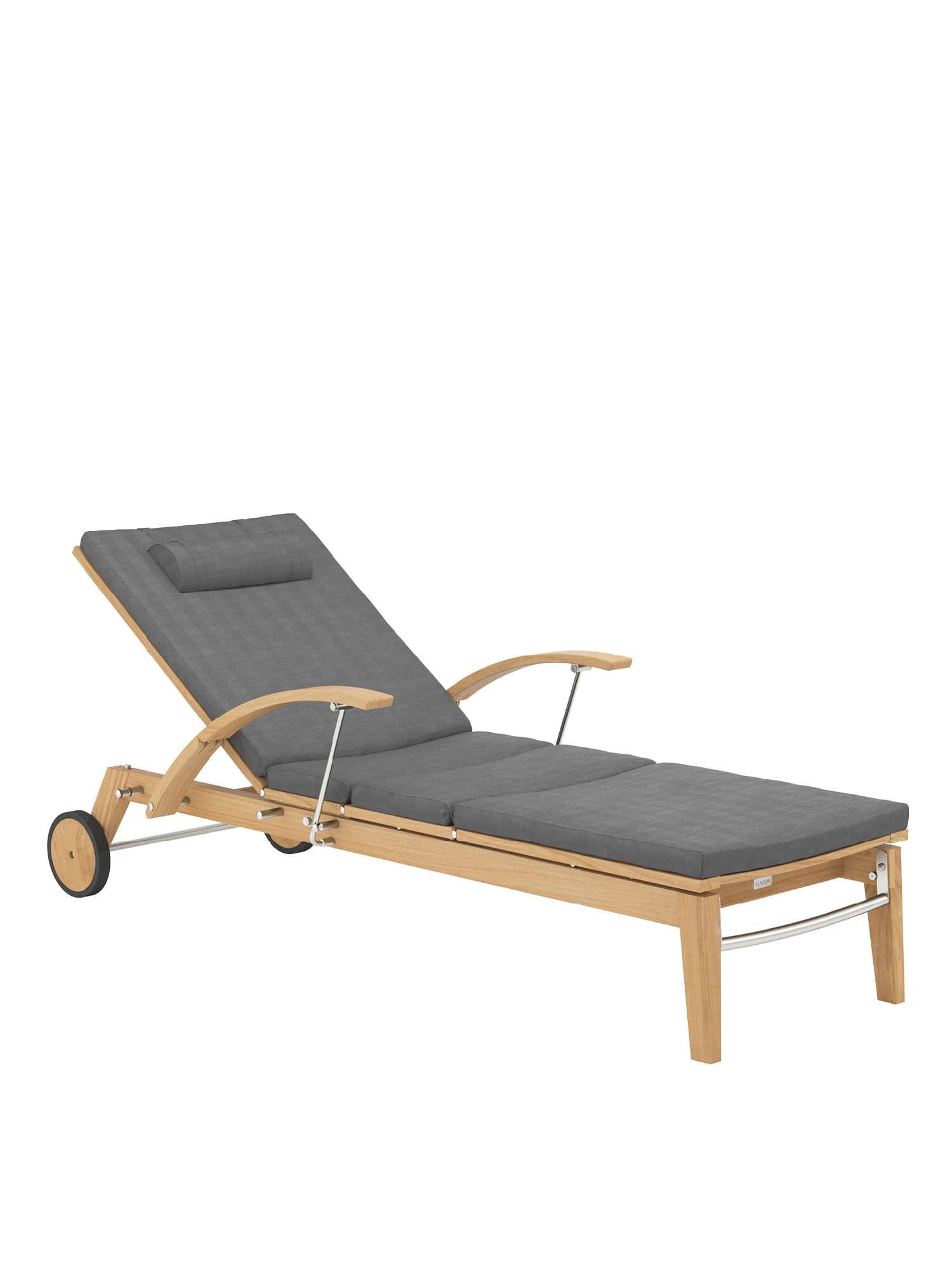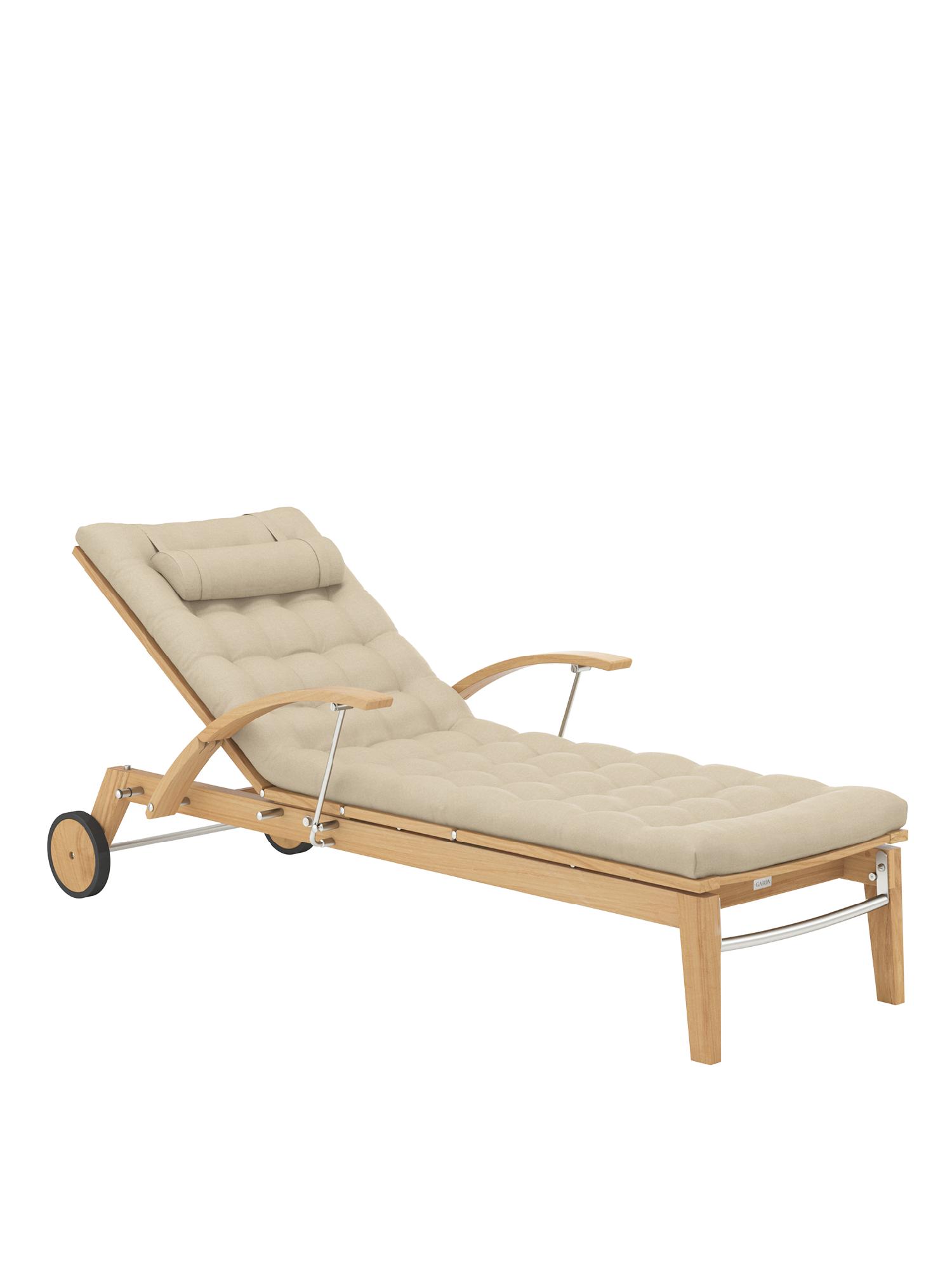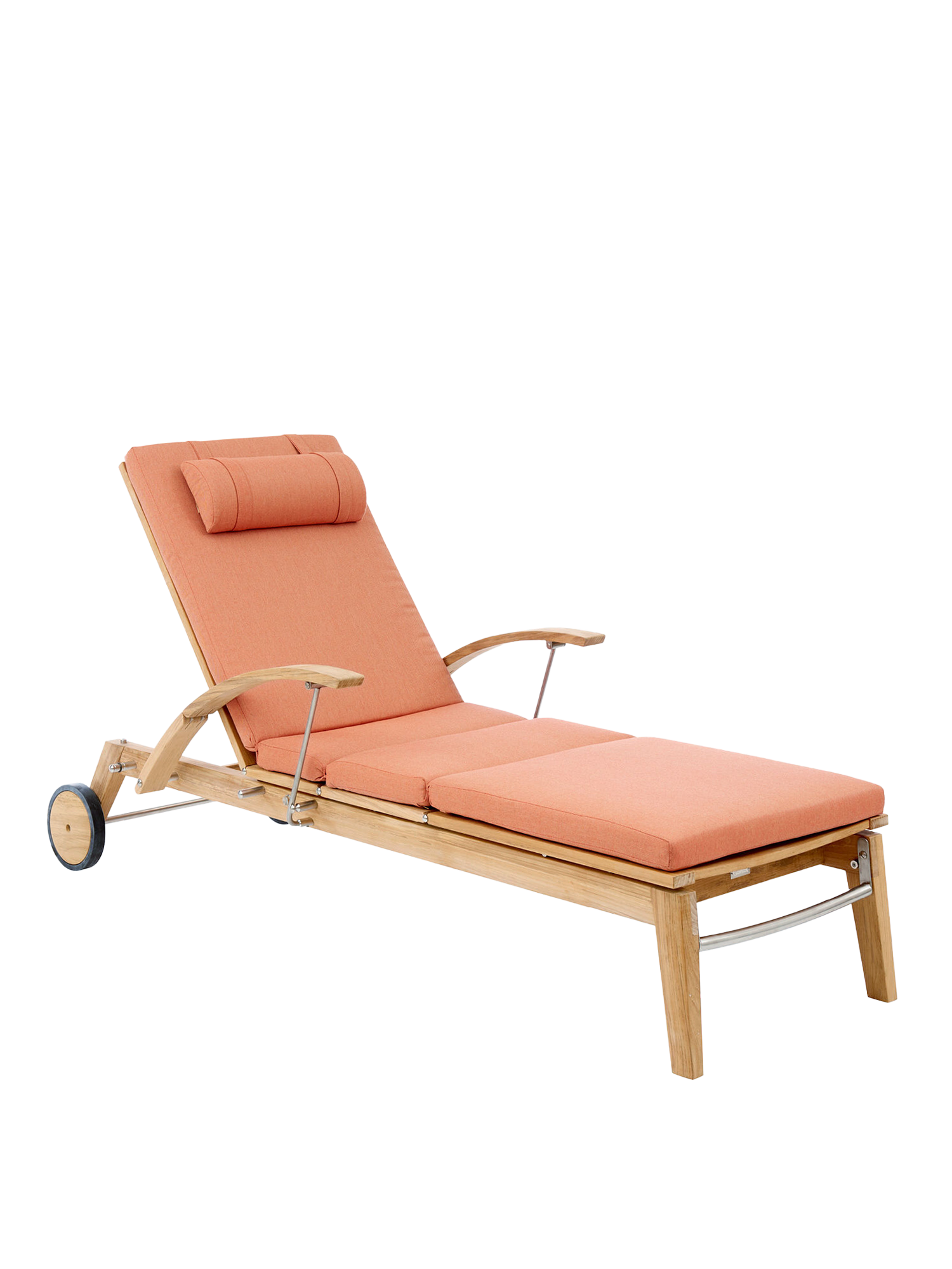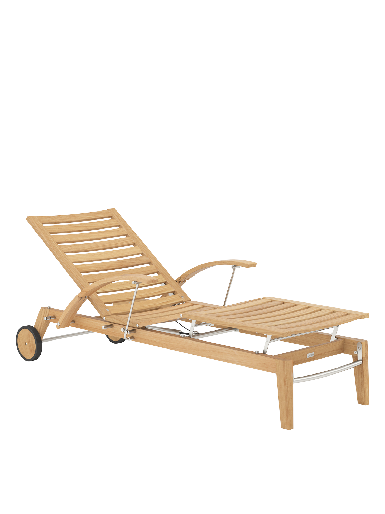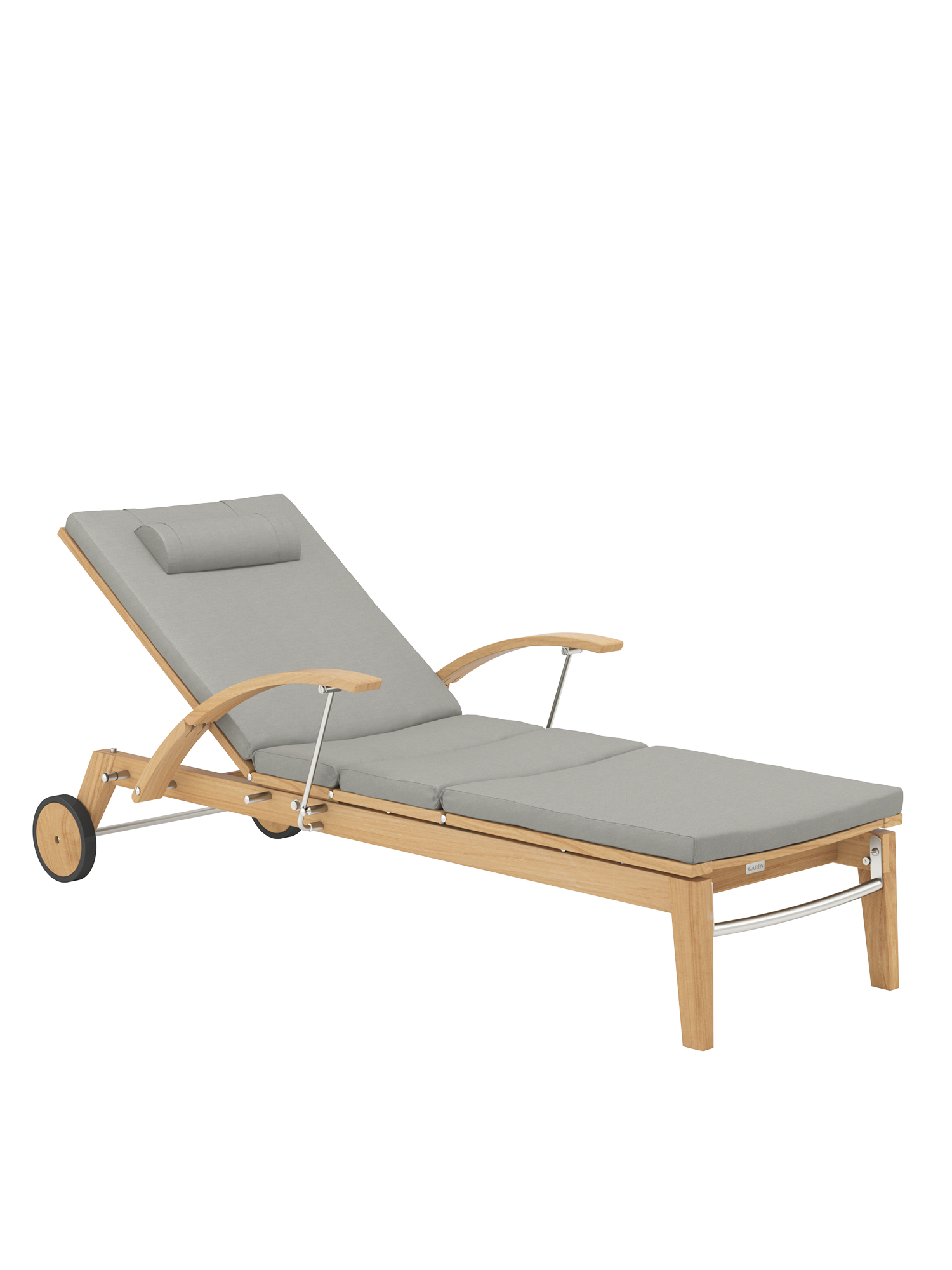 Hamptons vereint schlichte Eleganz mit einem Höchstmaß an Komfort und technischer Raffinesse. Die Rückenlehne der Liege aus Teak lässt sich dank einer Gasdruckfeder einfach per Knopfdruck bedienen. Dezent unter dem Sitz verborgen übernimmt sie die stufenlose Einstellung der gewünschten Liegeposition. Zum bequemen Aus- und Einstieg können die Armlehnen einzeln nach hinten geklappt werden.