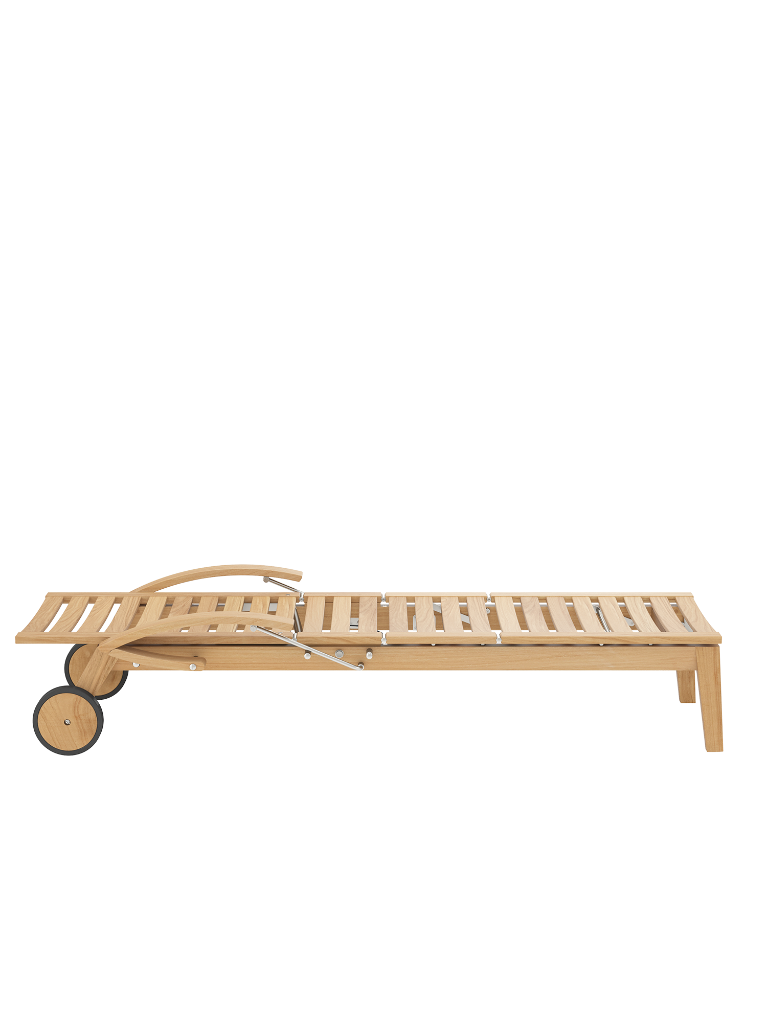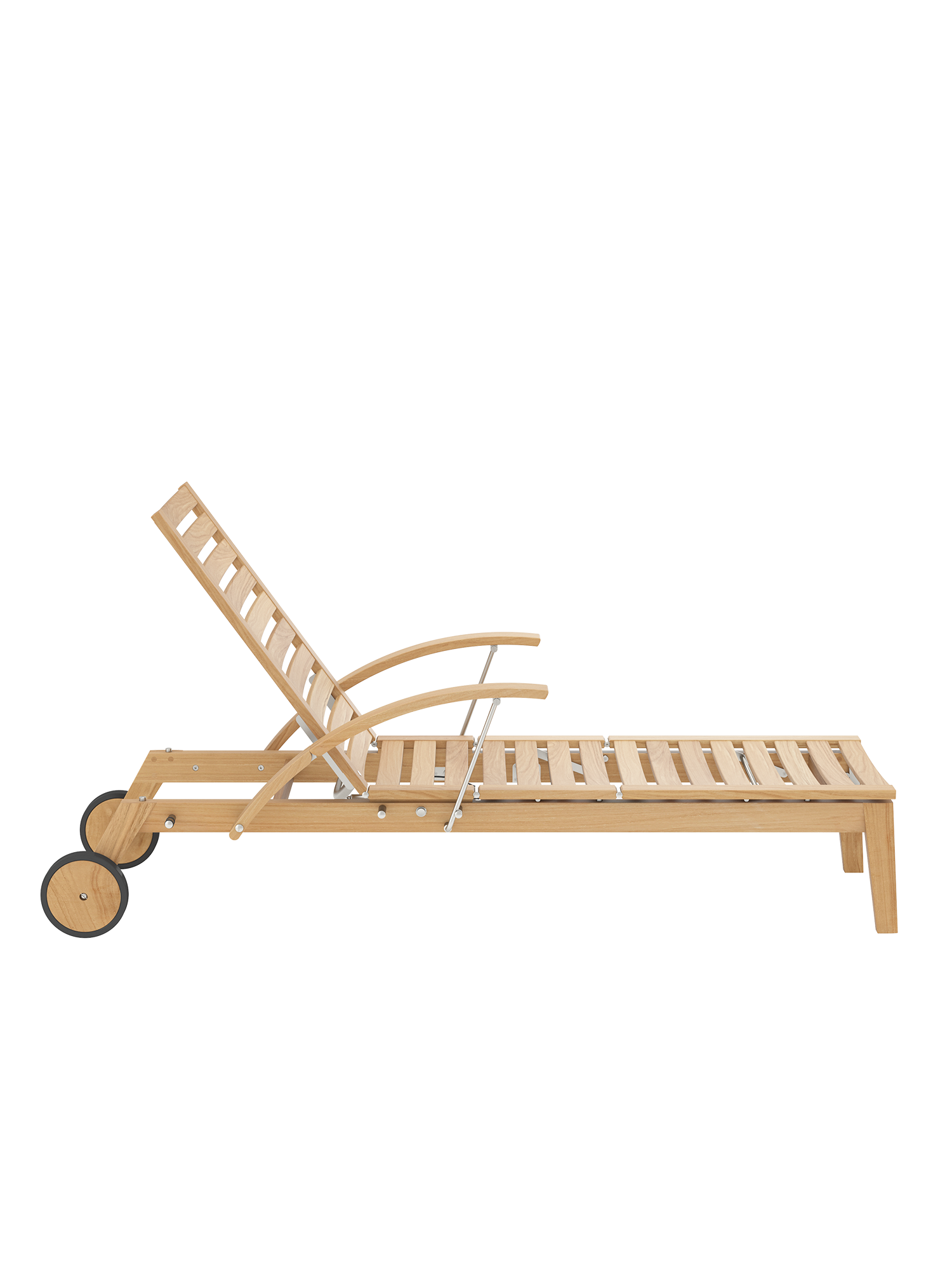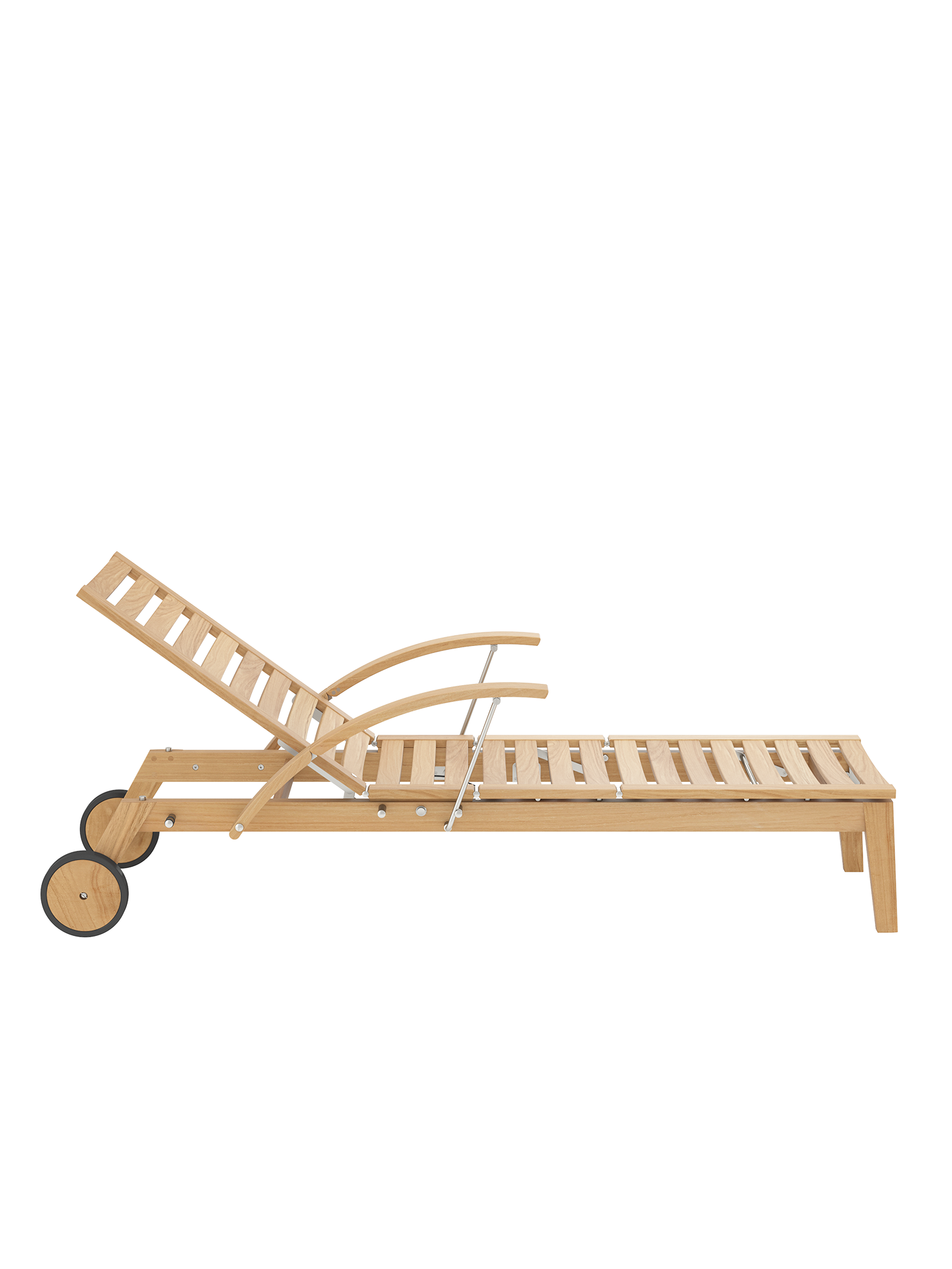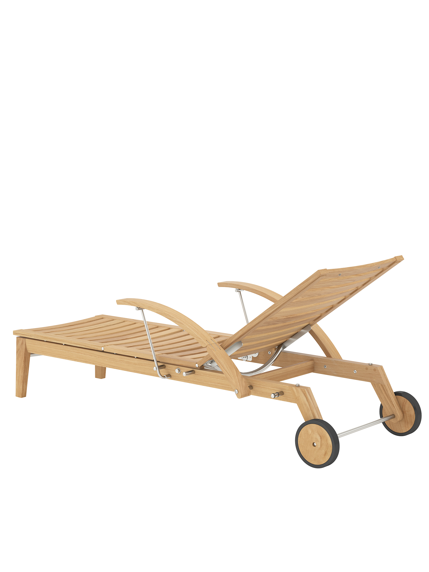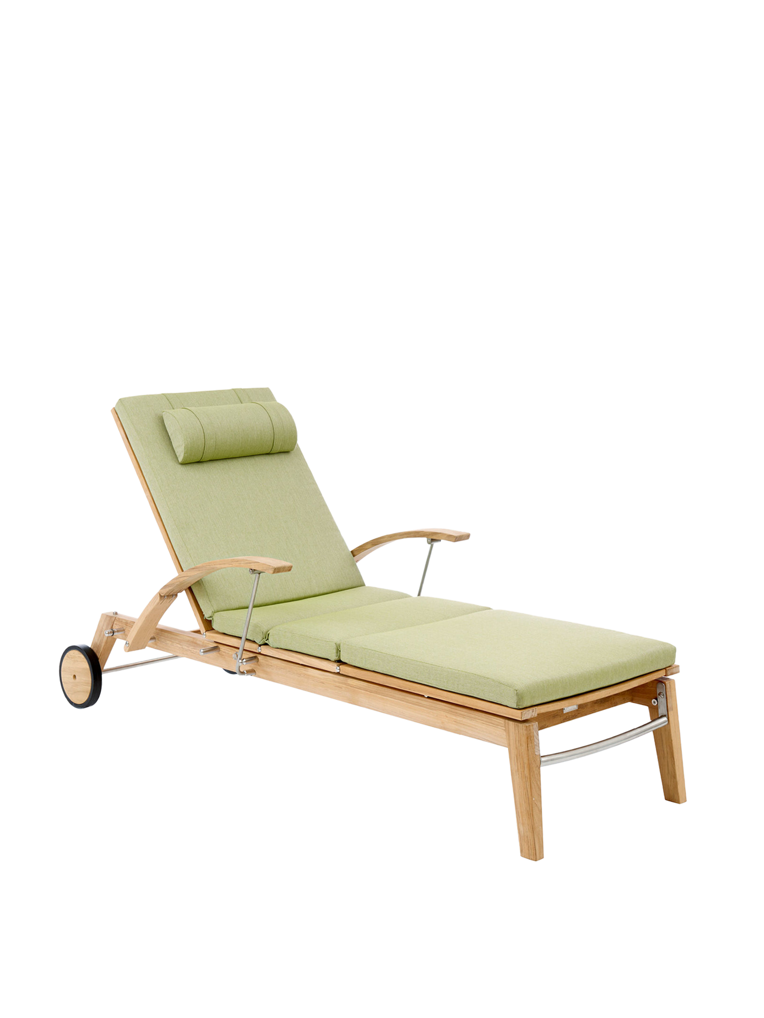 Hamptons vereint schlichte Eleganz mit einem Höchstmaß an Komfort und technischer Raffinesse. Die Rückenlehne der Liege aus Teak lässt sich dank einer Gasdruckfeder einfach per Knopfdruck bedienen. Dezent unter dem Sitz verborgen übernimmt sie die stufenlose Einstellung der gewünschten Liegeposition. Zum bequemen Aus- und Einstieg können die Armlehnen einzeln nach hinten geklappt werden.