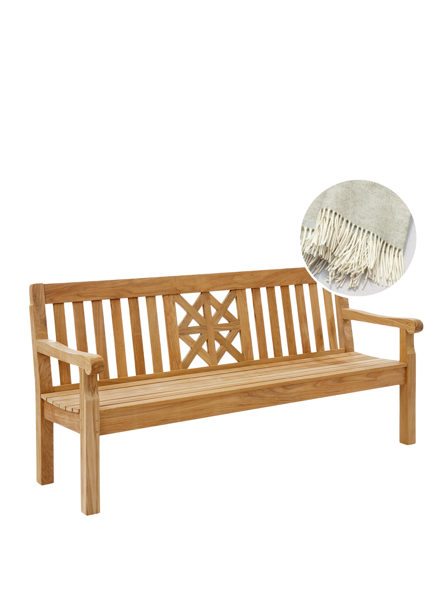 Die Bank trägt den Namen der berühmten Gartenlandschaft in Somerset mit Würde. In drei verschiedenen Größen empfiehlt sie sich wirkungsvoll und wetterfest als Rückzugsort und Beobachtungsposten. Das dekorative Element in der Rückenlehne ist ein ausdrucksvolles Symbol für höchste handwerkliche Fertigkeit.