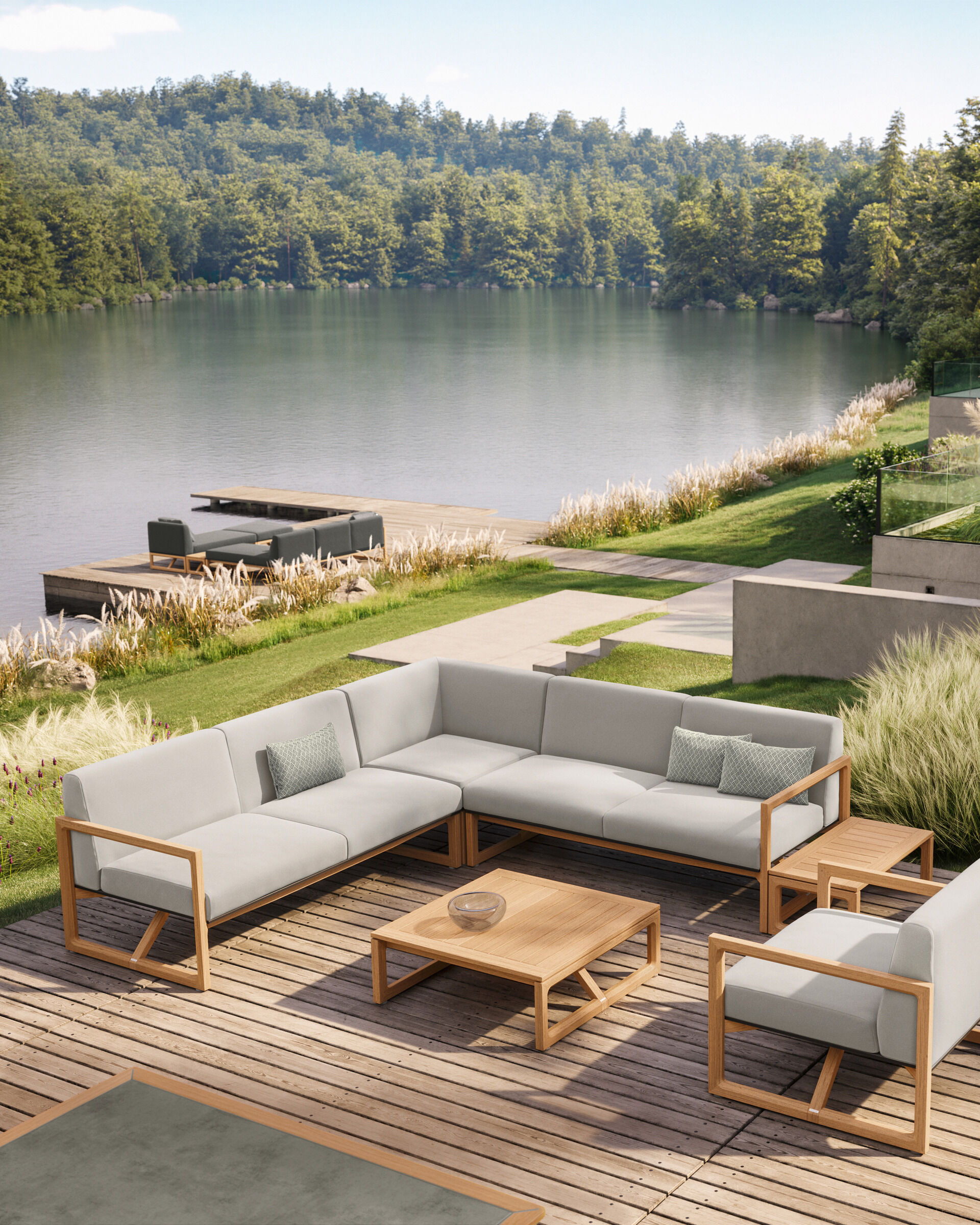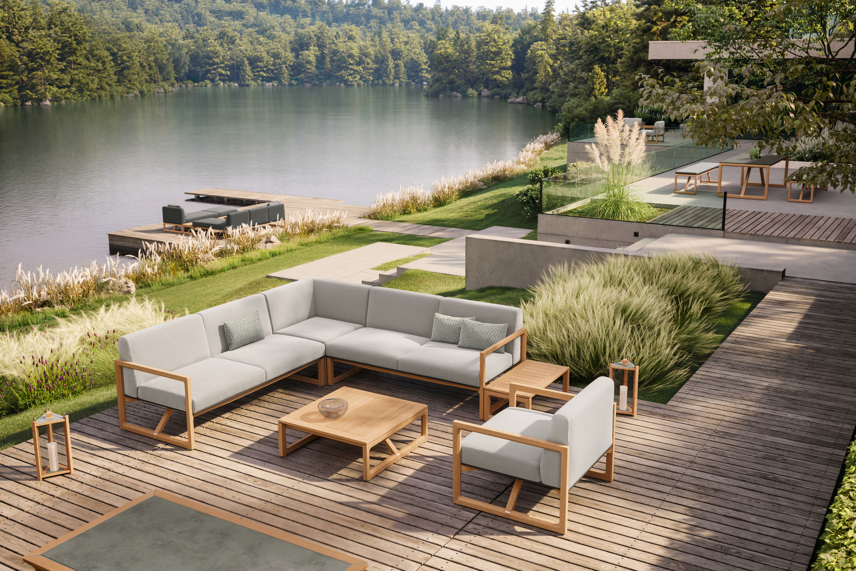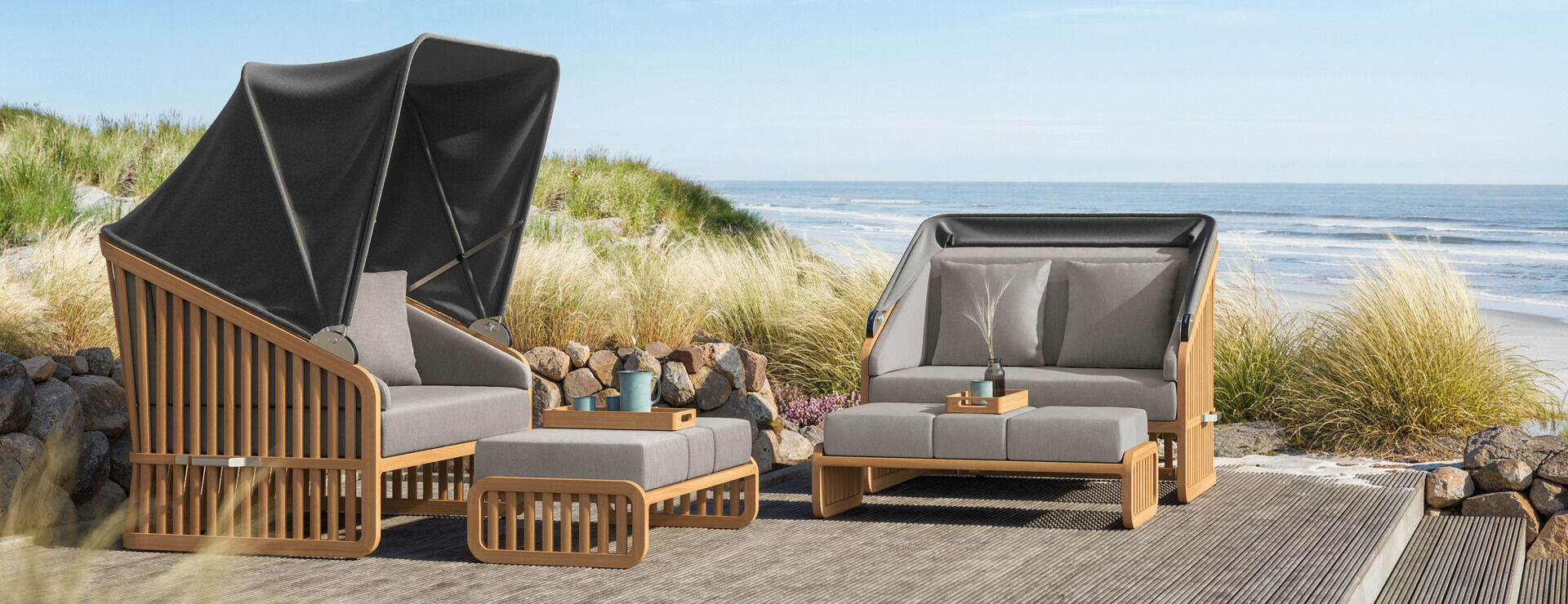 Zeit, im Grünen zusammenzukommen und Komfort zu genießen, dem einfach nichts hinzuzufügen ist. Bänke mit oder ohne Rückenlehne und ein geräumiger Tisch formieren sich zur einladenden Sitzgruppe. Puristisches Detail: Nach dem Essen können Sie die Bänke vollständig unter den Tisch schieben.