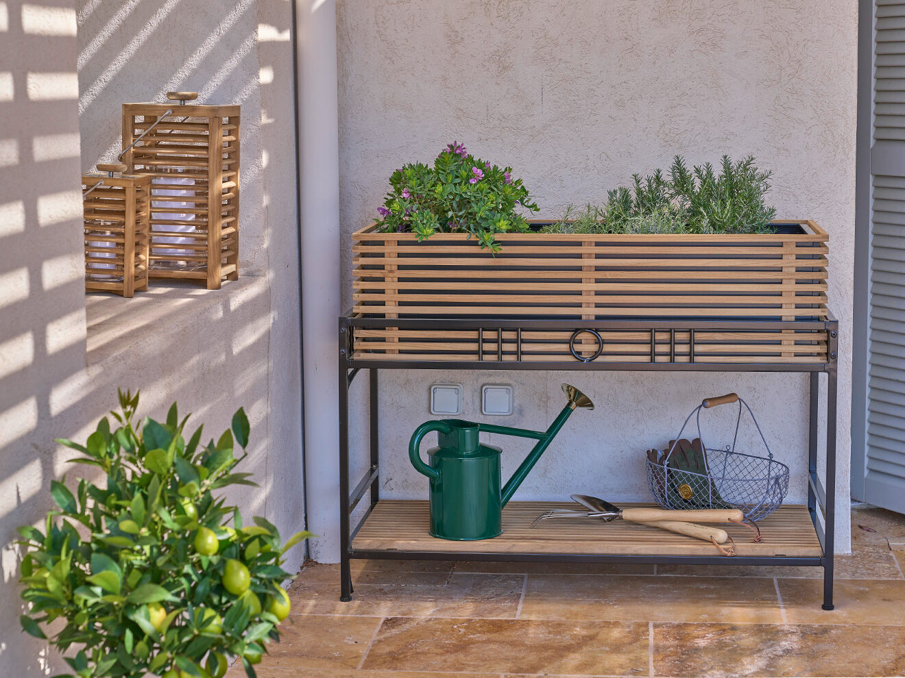 Staunässe verhindert ein integrierter Abfluss, auf dem Regalboden aus Teak finden Töpfe, Gartenwerkzeuge oder Gießkanne Platz. Unter Inspirationen haben wir einige Hinweise zu Standort, Drainage und Bepflanzung für Sie zusammengestellt. Weitere Informationen finden Sie direkt beim Produkt.