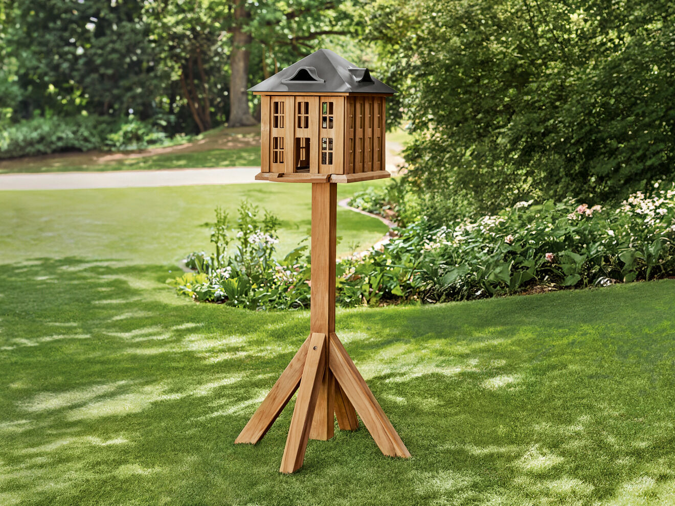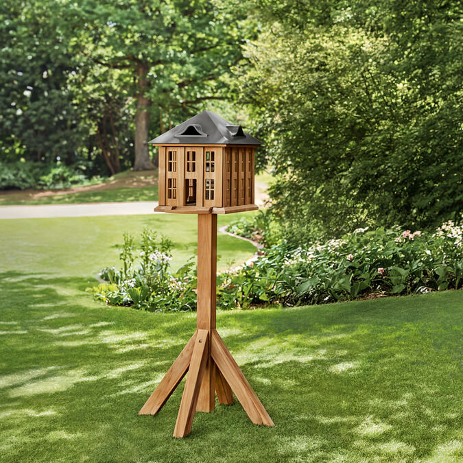 Unsere erlesene Kollektion bedenkt auch die Fauna. Das klassische Vogelhaus ist sowohl als Terrassenversion als auch als Beetlösung erhältlich. Darf es etwas größer sein? Die Varianten mit Reet- oder Schindeldach empfehlen sich ebenso wie unsere beleuchtete Vogelhaus Villa.
