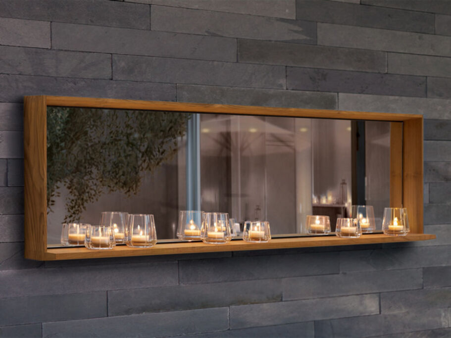 Faszinierend: Ob in vertikaler oder horizontaler Ausrichtung – die dekorativen Spiegel mit Teakrahmen verleihen Räumen optische Tiefe.