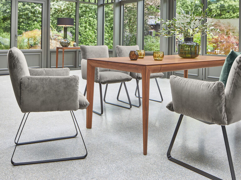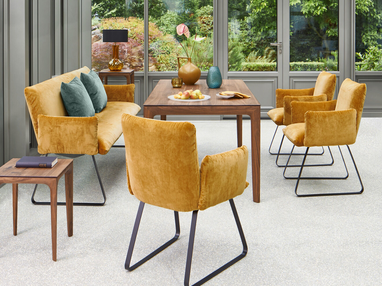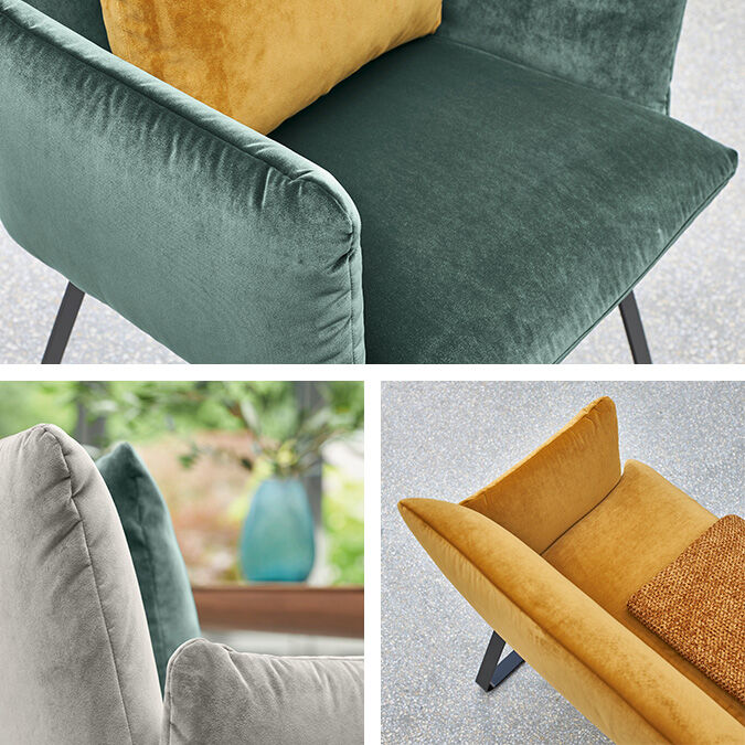 Vollendete Farb- und Formgebung, handverlesene Materialien und zeitgemäße Bequemlichkeit – die außergewöhnlichen Qualitäten der minimalistischen Mandø Sitzmöbel sind in jedem Detail sicht- und spürbar. Ihr samtiger Polsterstoff ist pflegeleicht, die geschwungenen Kufen aus Metall sind mattschwarz pulverbeschichtet. In Kooperation mit Garpa werden die Möbel von den Meistern der Bielefelder Werkstätten in klassischer Manufakturarbeit gefertigt. Eines so perfekt wie das andere.