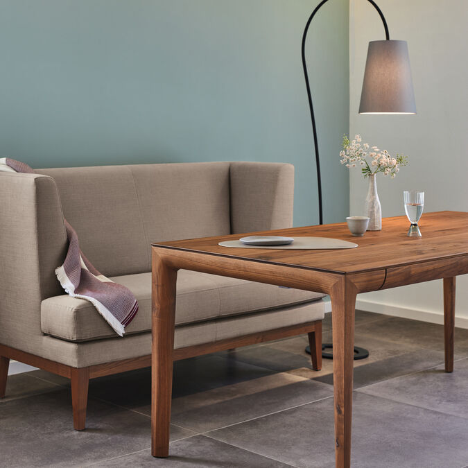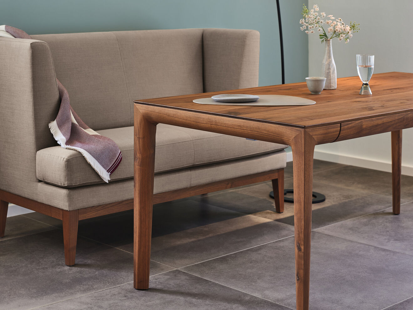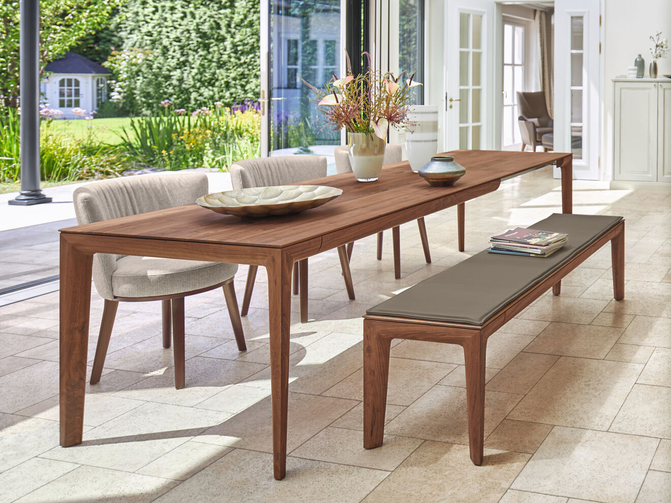 Zu Tisch bitte! Dieser Einladung folgt man besonders gern, wenn auch das Ambiente Hochgenüsse verspricht. Hochwertige Esstische aus massivem, amerikanischem Nussbaum laden zu ausgedehnten Tafelfreuden.