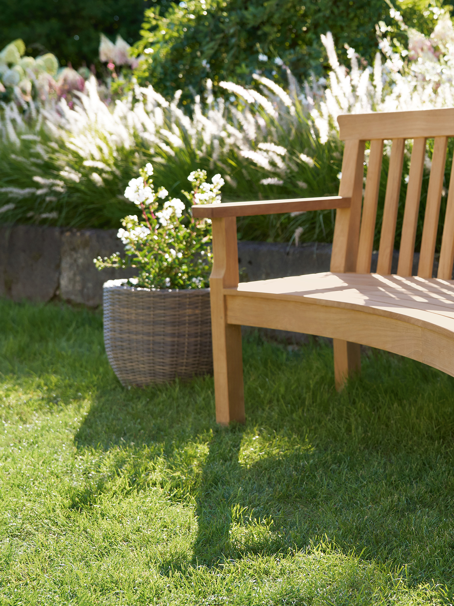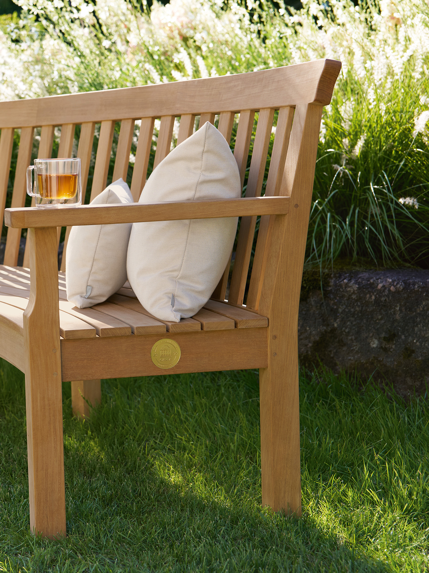 Die Gartenbank gehört zur Familie; Generationen verbinden mit ihr besondere Momente. Aus hochwertigem Teakholz – naturschön und von bleibendem Wert – ist die Jubiläumsbank, das jüngste Mitglied der Garpa Familie, gefertigt. Inspiriert von englischer Gartentradition und ausgezeichnet mit der Jubiläumsplakette aus Messing, bringt sie unsere gesammelte Erfahrung auf den modernsten Stand.