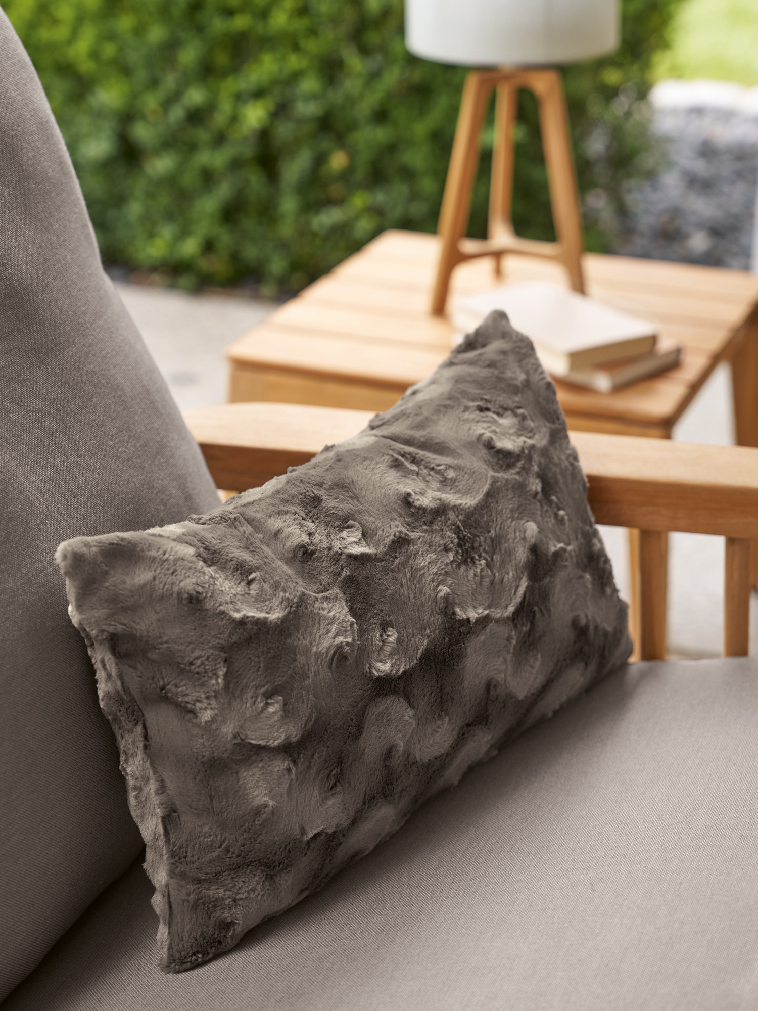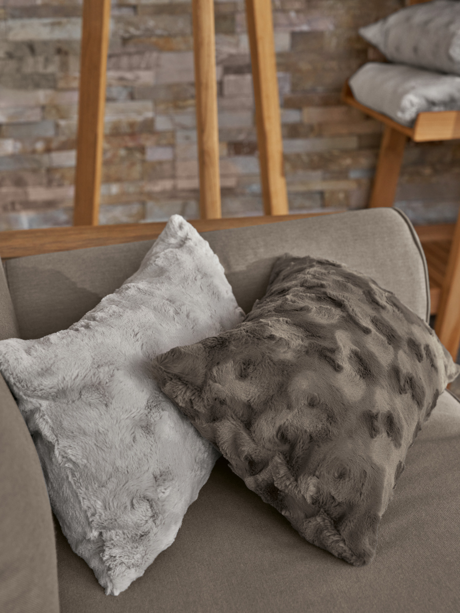 Die vielseitigen Kissen aus hochwertigem Fellimitat setzen wohnliche Akzente im Innen- und Aussenbereich.