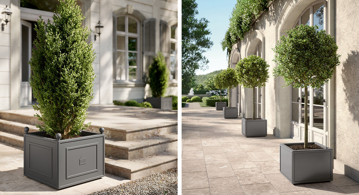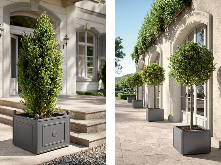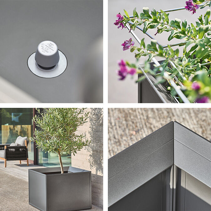 Kleiner, leichter und mit einer geringeren Pflanzhöhe überzeugen die Pflanzkübel Antony und Grenoble Petit mit edlem Design und überragender Funktionalität. Wie die großen Vertreter der Kollektionen bestehen sie aus frostfestem, pulverbeschichtetem Aluminium. Alle kleinen Modelle werden inklusive Abdeckvlies, einer Drainageschicht aus Lavasteinen und einem Kunststoffinlay mit Wasserablaufsystem geliefert, um die Pflanzen vor Staunässe zu schützen.