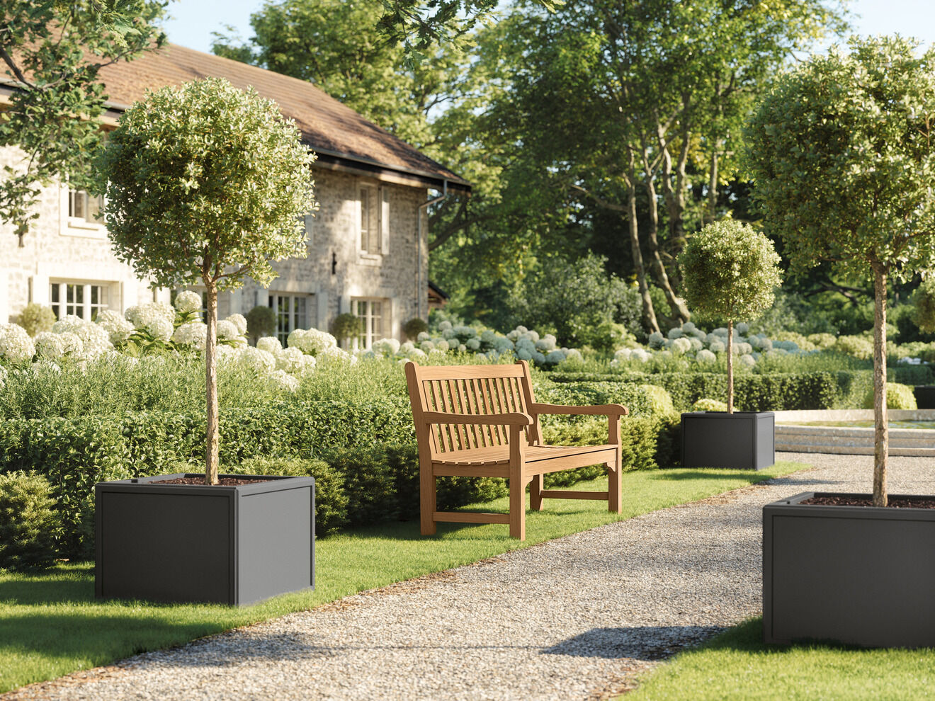 Die hochwertigen Pflanzkübel wurden gemeinsam mit Experten aus dem Garten- und Landschaftsbau entwickelt und sind auf Wunsch als Sonderanfertigungen auch in anderen Größen und Farben erhältlich. Die Lieferzeit beträgt 8-10 Wochen. Bitte sprechen Sie uns an.