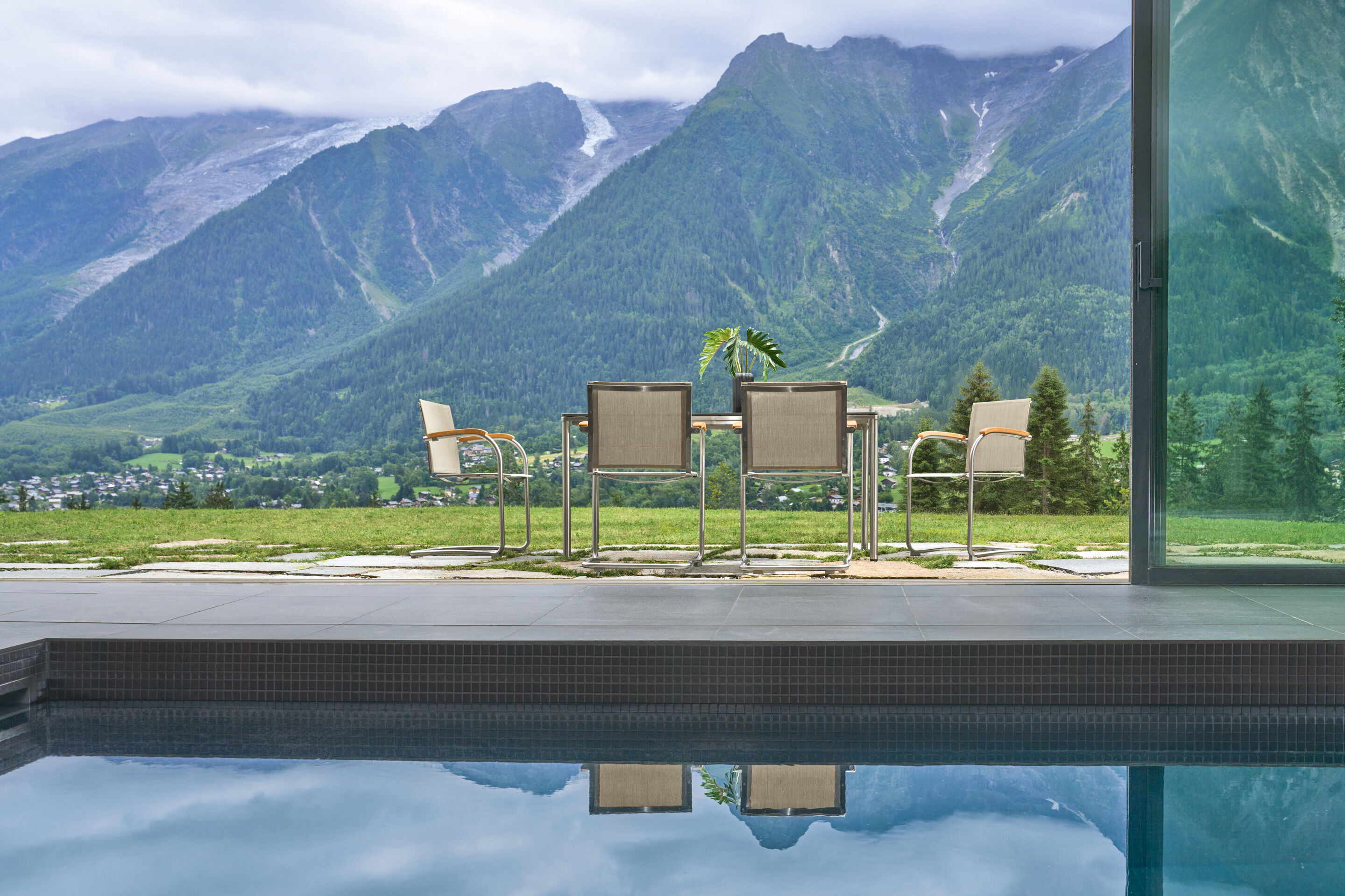 Alle Schrauben sind versenkt verankert, nichts stört die luftige Optik. Kunststoffgleiter unter dem Gestell schonen empfindliche Böden.
