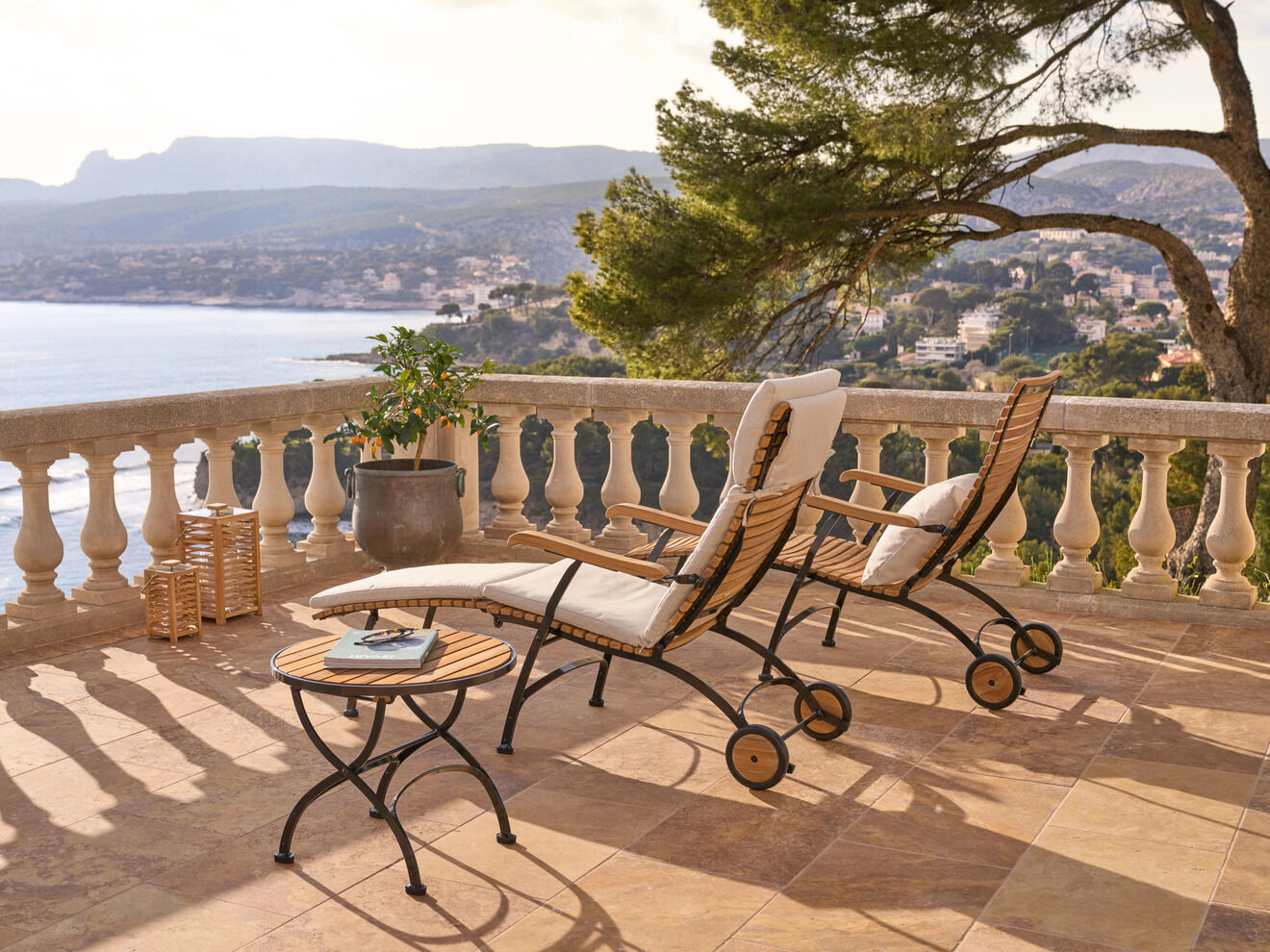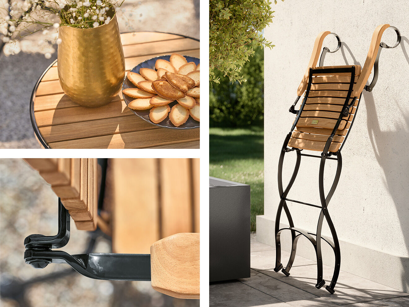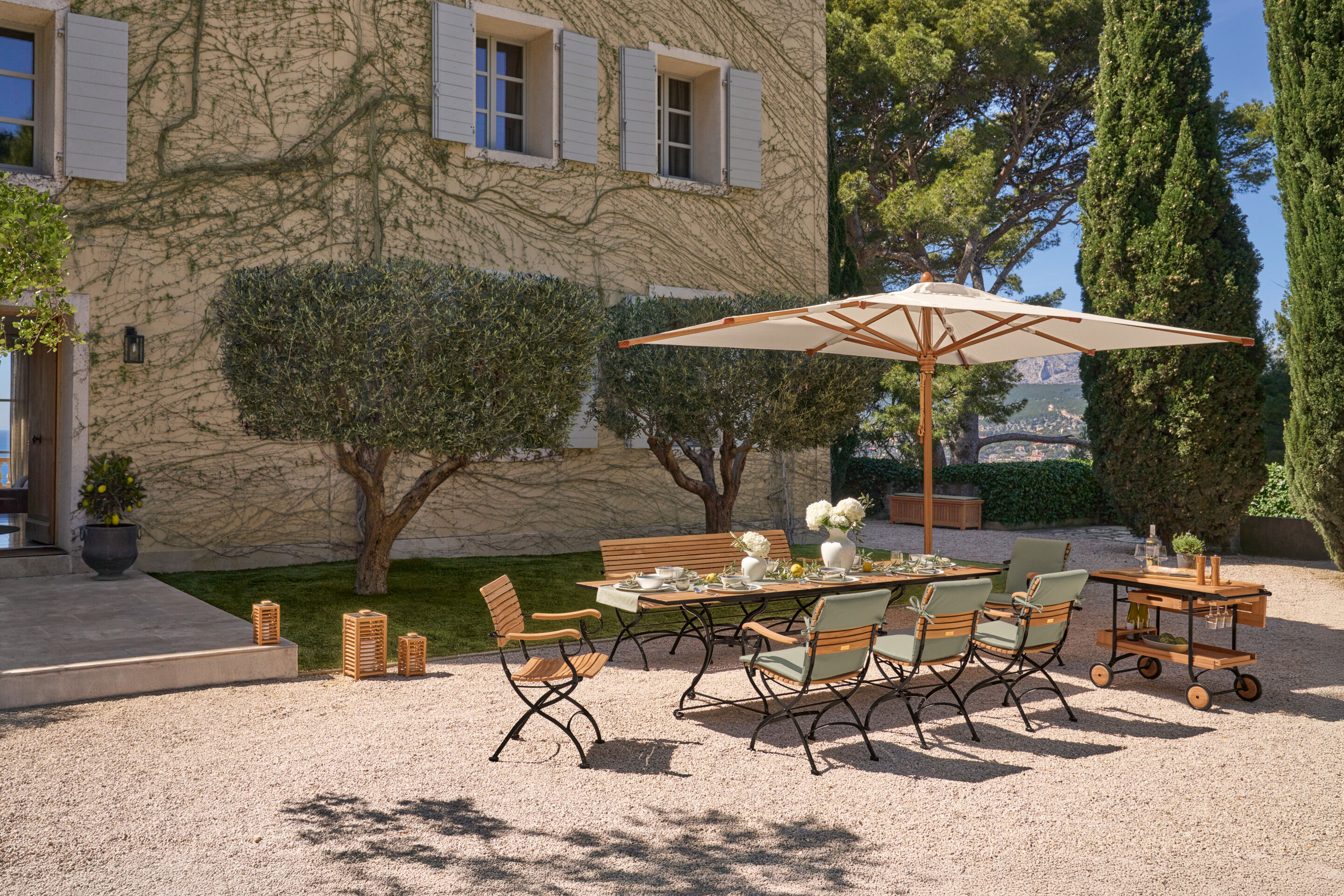 Klassiker aus Teak und Stahl verhelfen dem Flair der Belle Époque zu neuen Ehren. Die heutige Generation, spielend leicht zusammenzuklappen oder verstellbar, überzeugt mit modernem Know-how und handwerklicher Meisterschaft. Jedes Detail wurde für höchste Ansprüche perfektioniert. Vielfältige Tische, Deck Chairs und Loungemöbel erweitern das Repertoire: Ein Klassiker präsentiert seine weit verzweigte Familie.