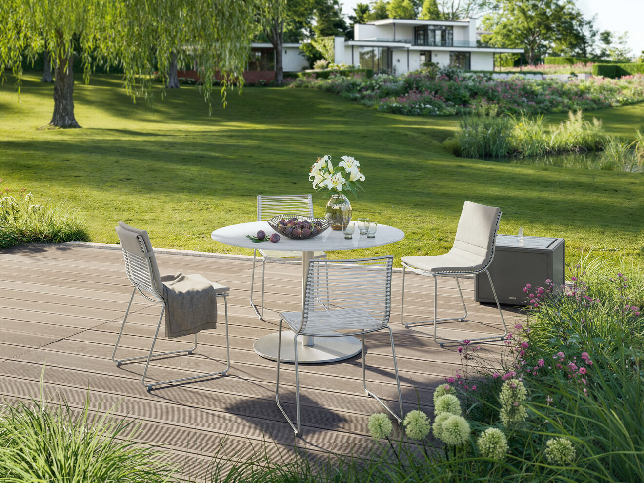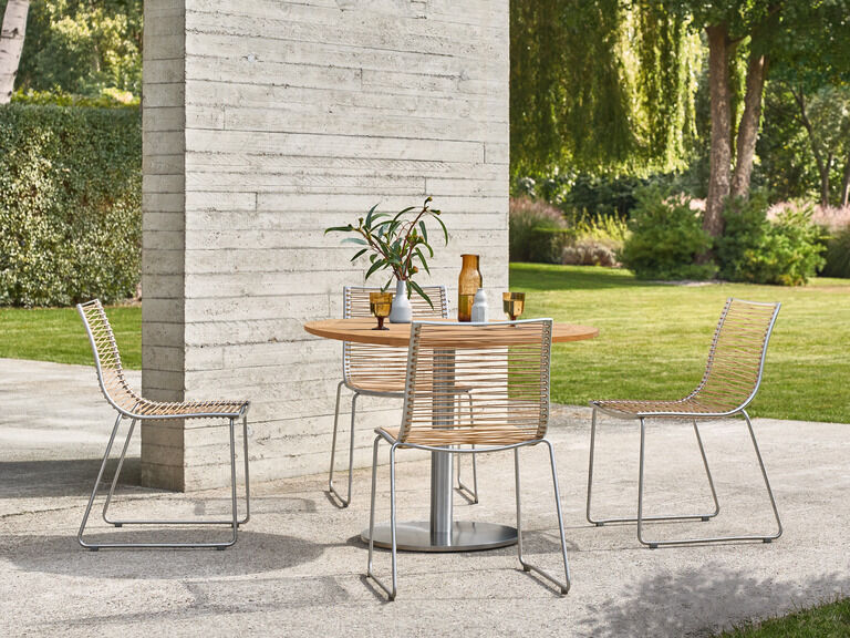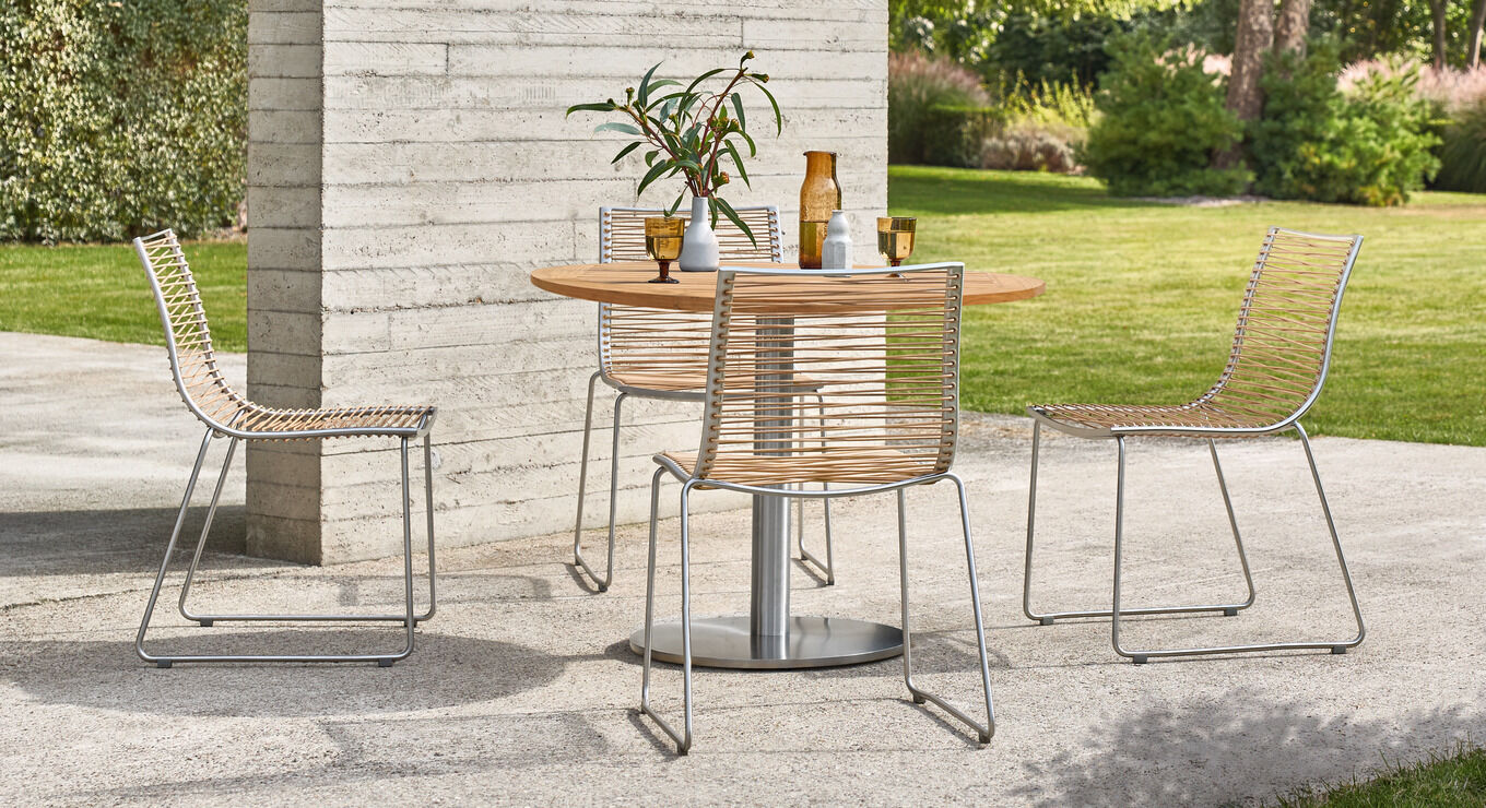 Die feinen Linien der Pan Stühle entwickeln grafische Anmut.