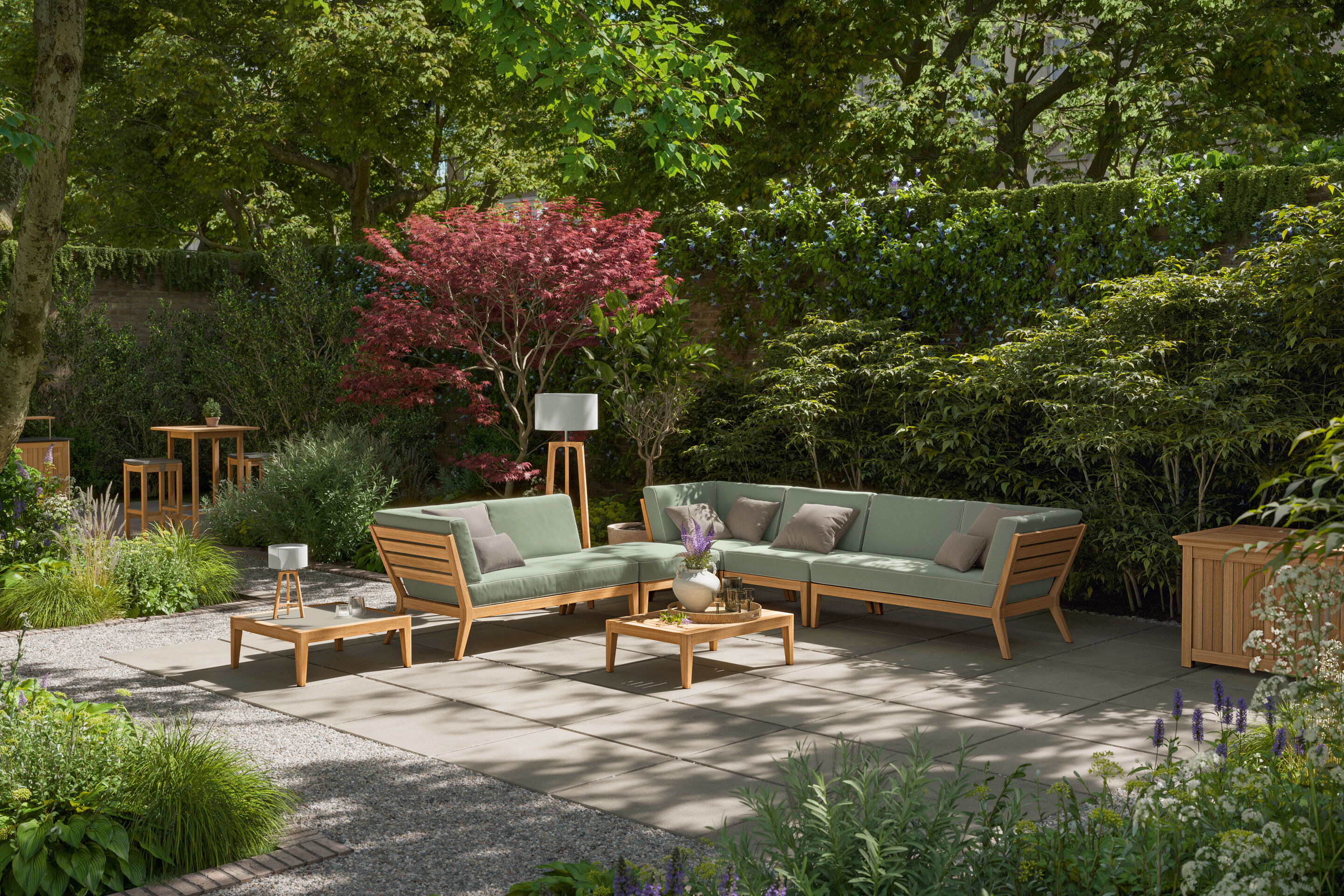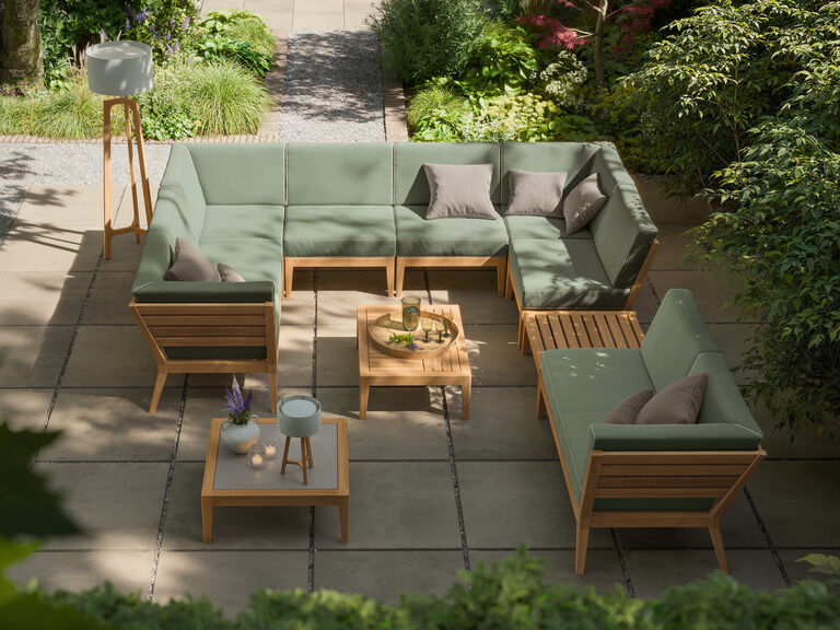 Weiche Polster verführen bei Tag zum Müßiggang und halten bei Laune, wenn der Abend lang werden soll. Das Arrangement folgt klaren Vorstellungen, sowohl im Design als auch in vielen möglichen Kombinationen: Extrabreit und besonders tief, bieten die Loungemöbel mit quer verlaufenden Sitz- und Rückenlehnen und ausgestellten Beinen viel Raum zum Anlehnen.