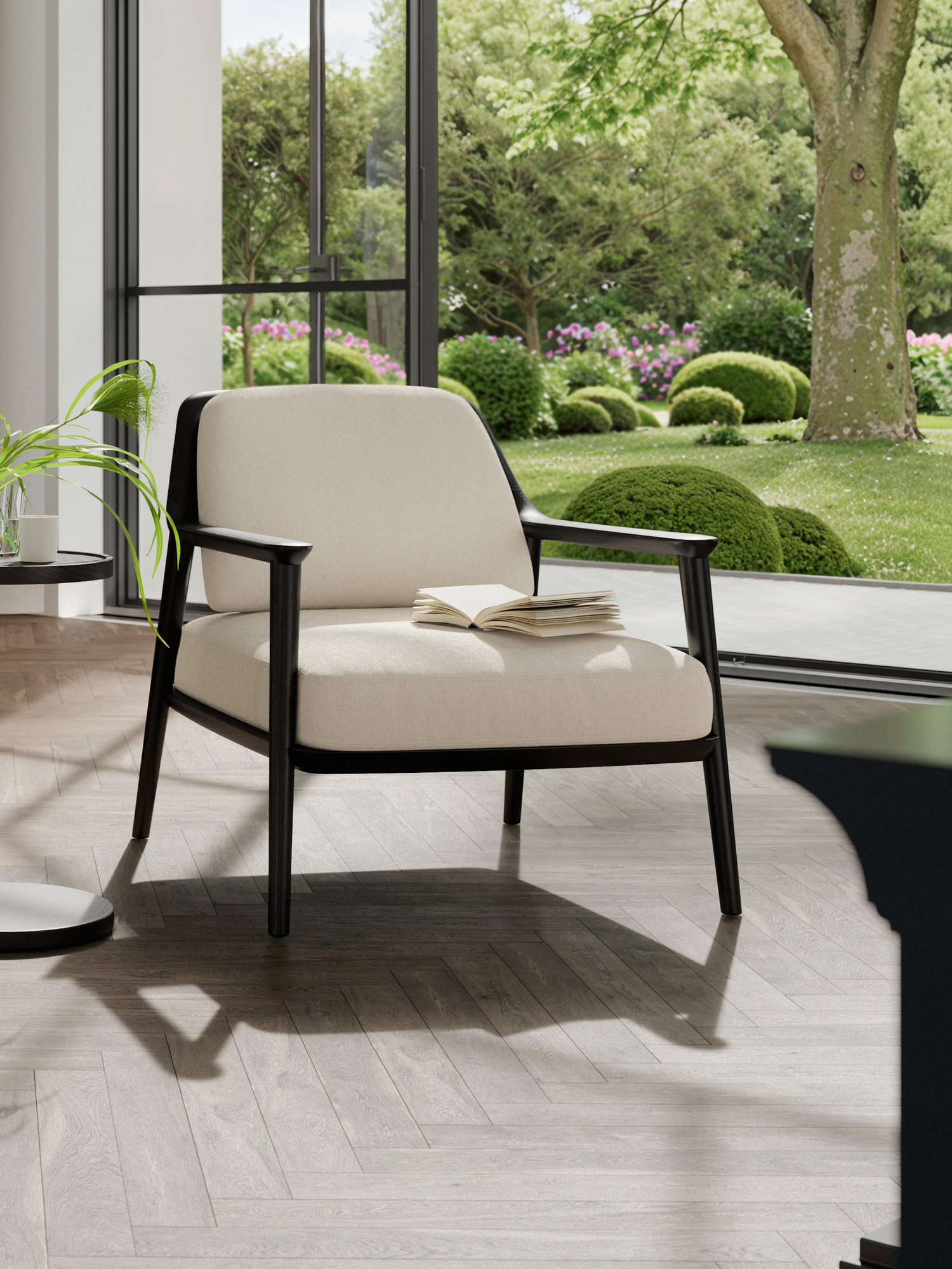 Klare Formensprache und moderner Komfort: Der Leonardo Sessel verströmt Behaglichkeit in wohnlichen Interieurs.