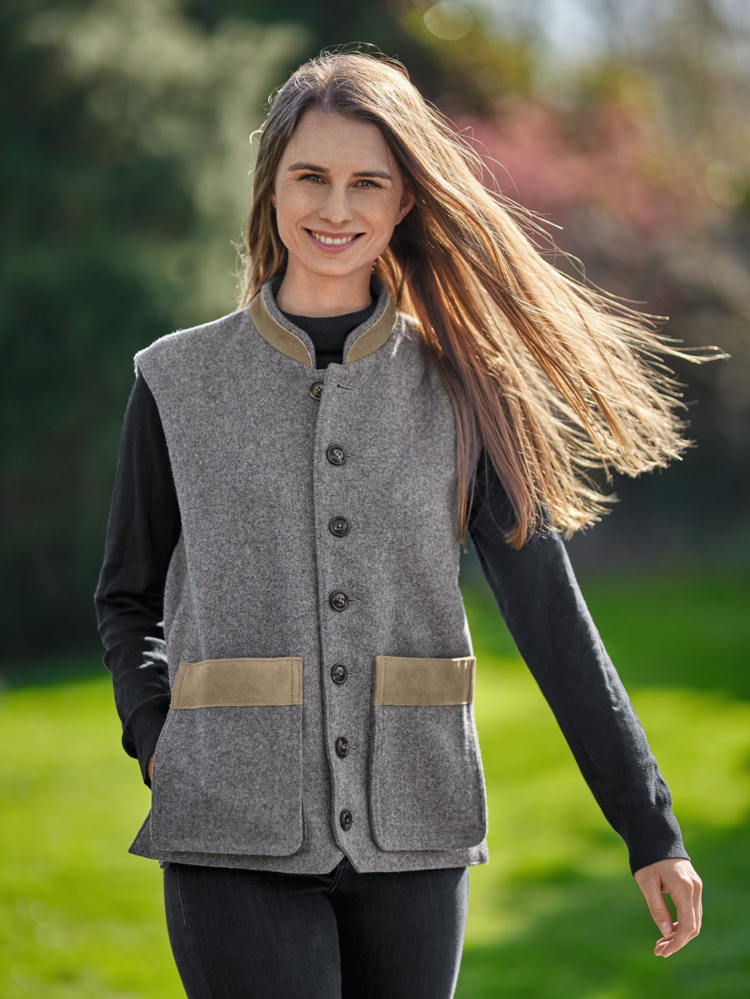 Das hochwertige Material überzeugt neben seiner Nachhaltigkeit auch durch zahlreiche praktische Vorteile. So ist der Loden sowohl klimaregulativ und atmungsaktiv als auch wärmend und antibakteriell. Erleichtert werden Gartenarbeiten außerdem durch die Außentaschenpaare der Weste. Die nach oben geöffneten Taschen stiften Platz und die zur Seite geöffneten Taschen wärmen an kälteren Tagen die Hände – im Garten, beim Strandspaziergang oder bei sonstigen Outdoor-Aktivitäten.
