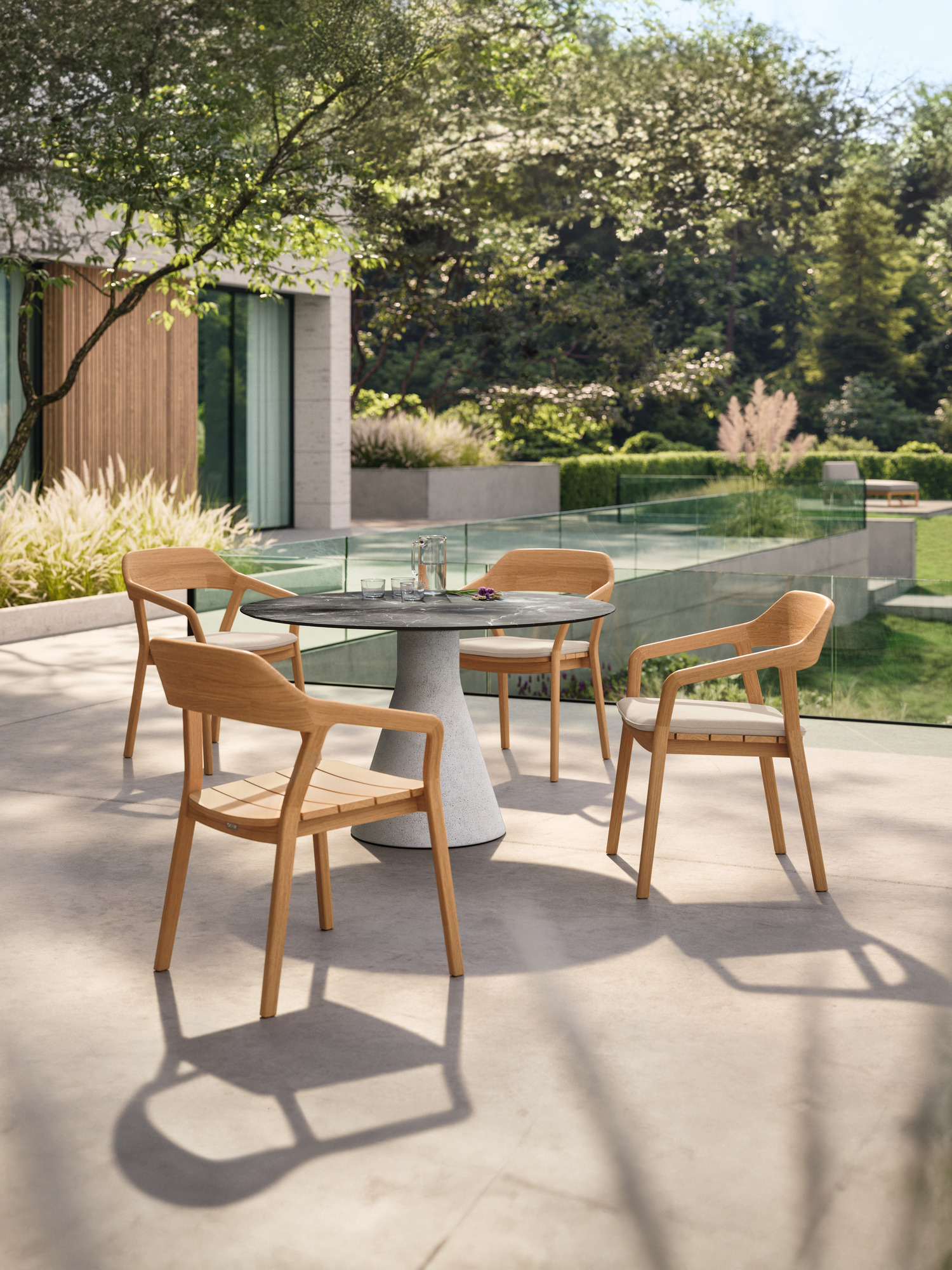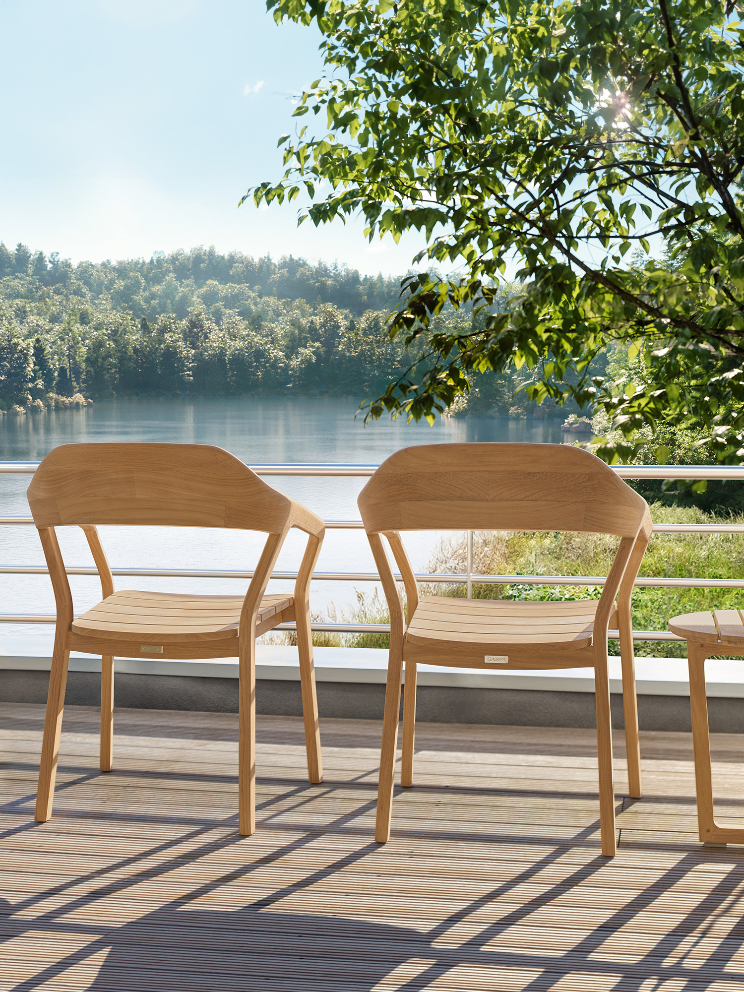 Aufgrund des reduzierten Designs – der Luton Armlehnstuhl ist ausschließlich aus wetterfestem Teakholz gefertigt – bieten sich zahlreiche Kombinationen mit Tischen der Serien Portland, Namur, Clark und Benton an. Bilden Sie ein harmonisches Ganzes: mit Luton und dem Tisch Ihrer Wahl.