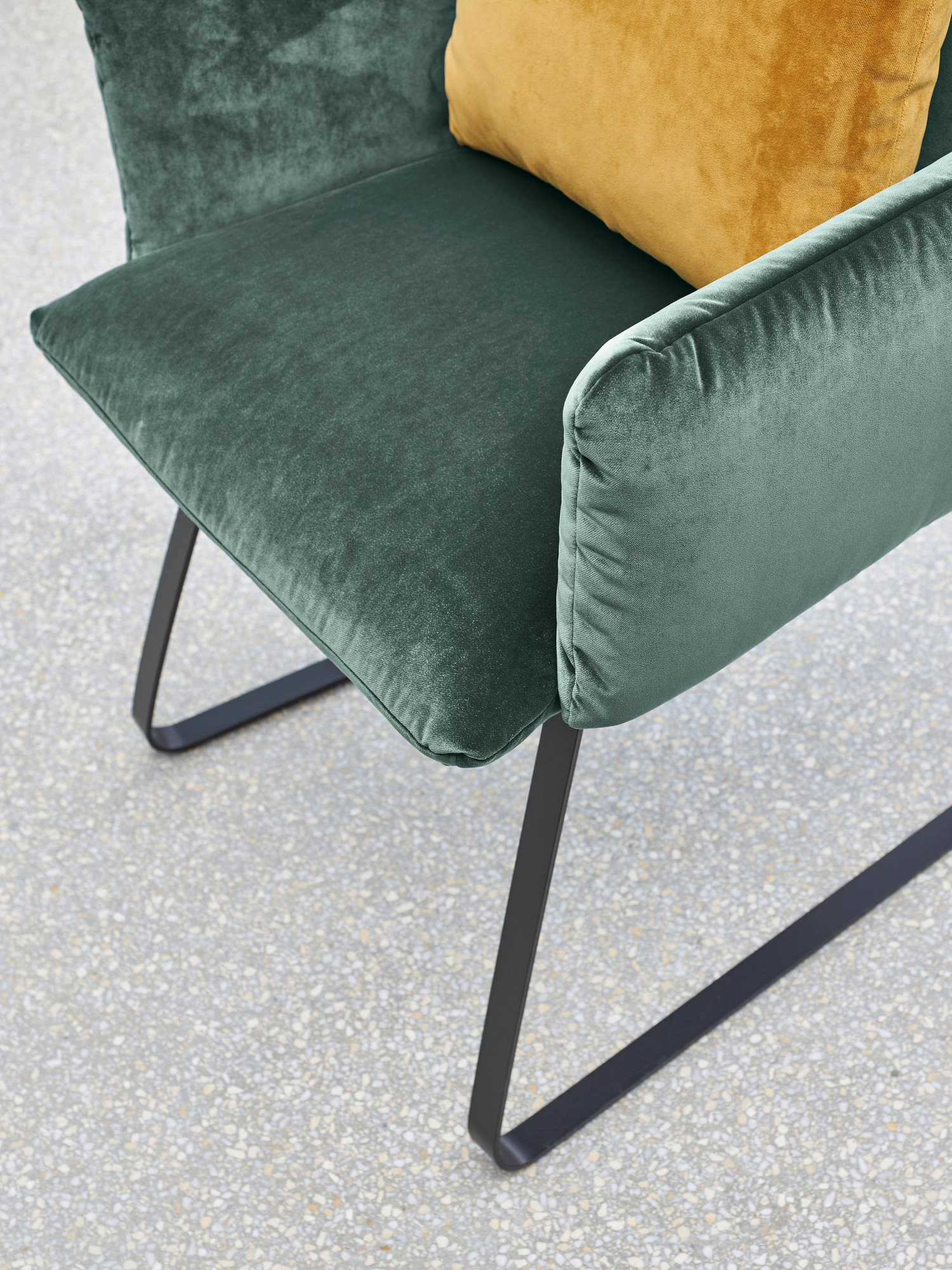 Ausgefeiltes Handwerk, vollendete Farb- und Formgebung, handverlesene Materialien und zeitgemäße Bequemlichkeit – die außergewöhnlichen Qualitäten der minimalistischen Mandø Sitzmöbel sind in jedem Detail sicht- und spürbar. Ihr samtiger Polsterstoff ist pflegeleicht, die geschwungenen Kufen aus Metall sind mattschwarz pulverbeschichtet. In Kooperation mit Garpa werden die Möbel von den Meistern der Bielefelder Werkstätten in klassischer Manufakturarbeit gefertigt. Eines so perfekt wie das andere und jedes ein Unikat.