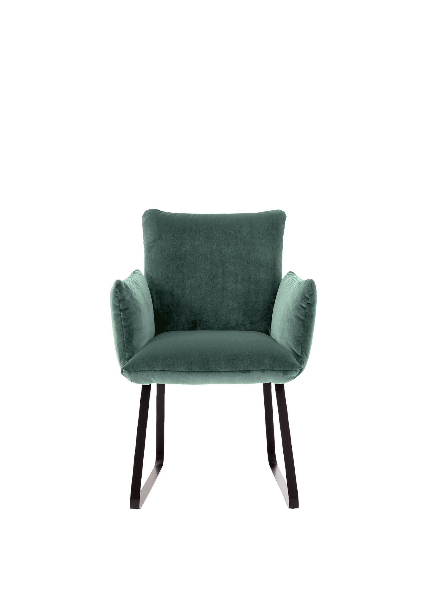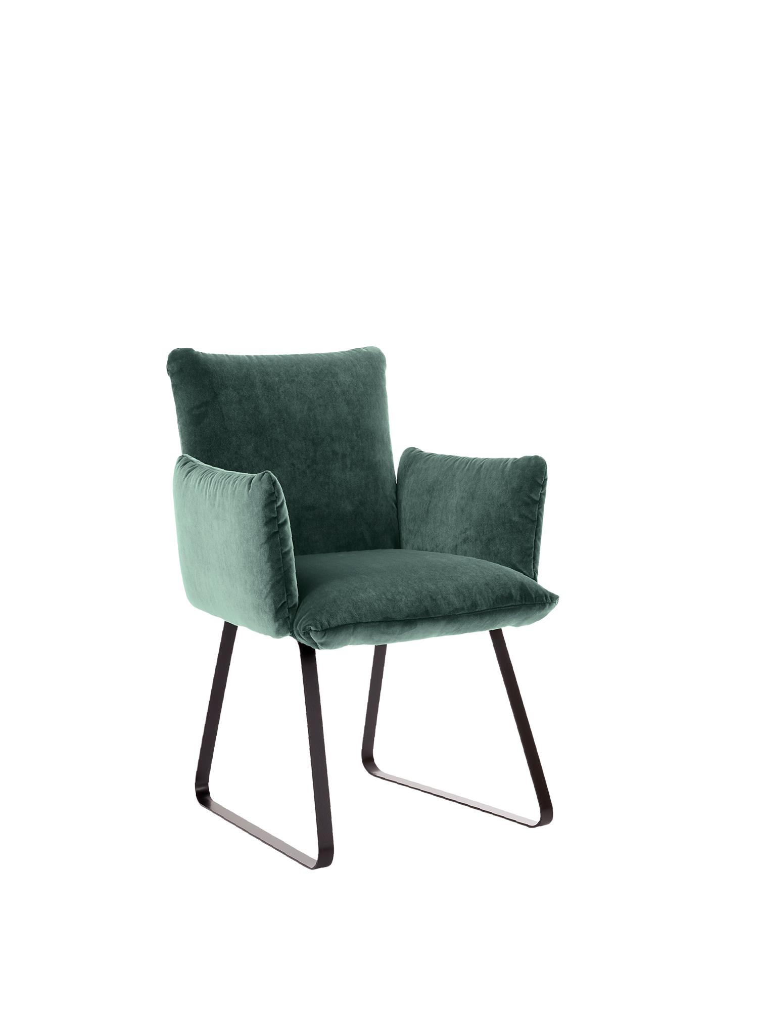 Die Mandø Armlehnstühle und Bänke machen nicht nur bei Tisch eine gute Figur. Schlanke Sitz-, Arm- und Rückenpolster unterstreichen den Eindruck zeitloser Eleganz und legerer Behaglichkeit. Im matten Schwarz des Metallgestells finden die leuchtenden Farben der Samtbezüge eine neutrale Basis. Für höchsten Komfort sorgen die perfekt geformten Rückenlehnen.