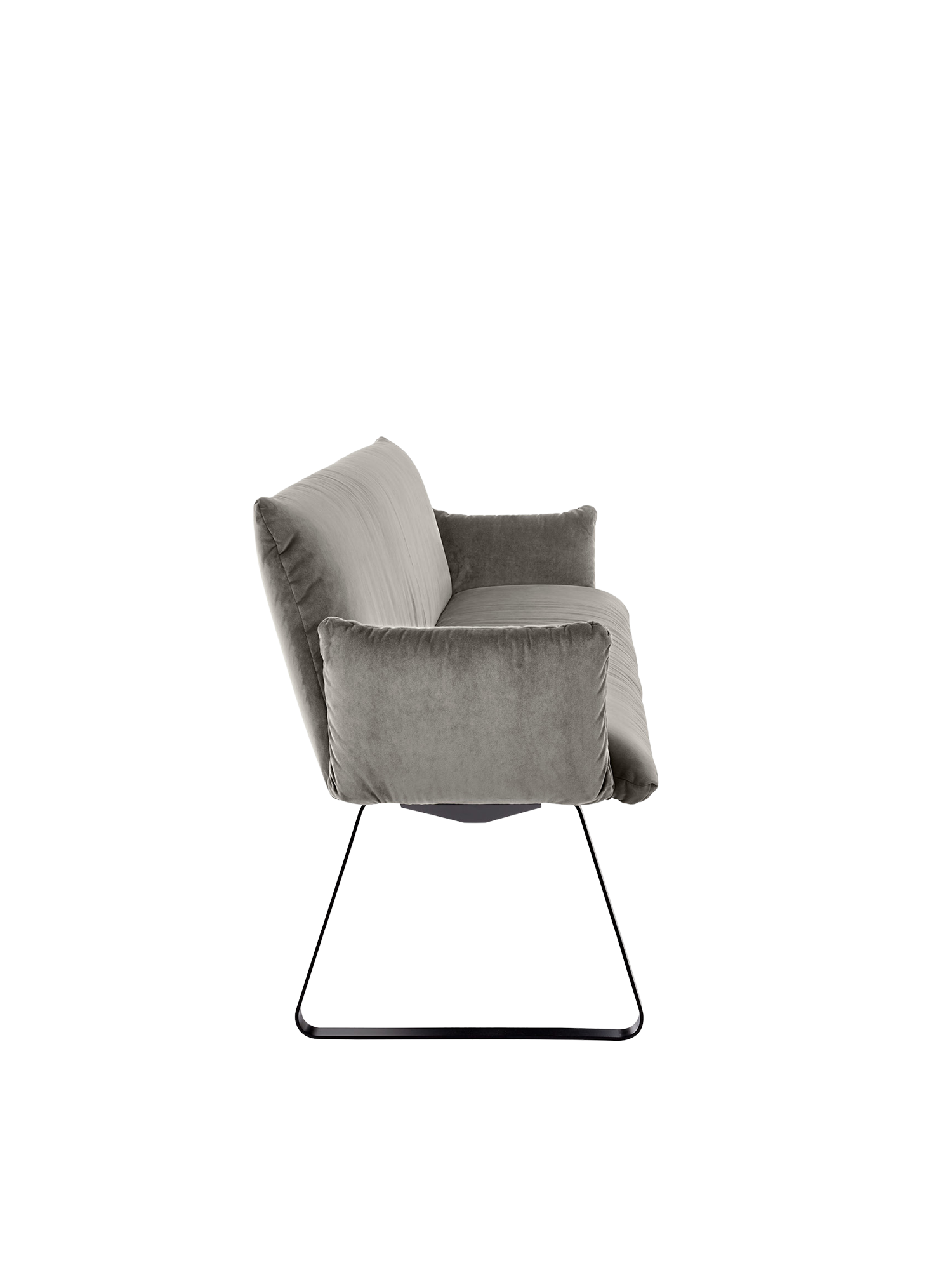 Ausgefeiltes Handwerk, vollendete Farb- und Formgebung, handverlesene Materialien und zeitgemäße Bequemlichkeit – die außergewöhnlichen Qualitäten der minimalistischen Mandø Sitzmöbel sind in jedem Detail sicht- und spürbar. Ihr samtiger Polsterstoff aus Polyester ist pflegeleicht, die geschwungenen Kufen aus Metall sind mattschwarz pulverbeschichtet. In Kooperation mit Garpa werden die Möbel von den Meistern der Bielefelder Werkstätten in klassischer Manufakturarbeit gefertigt. Eines so perfekt wie das andere und jedes ein Unikat.