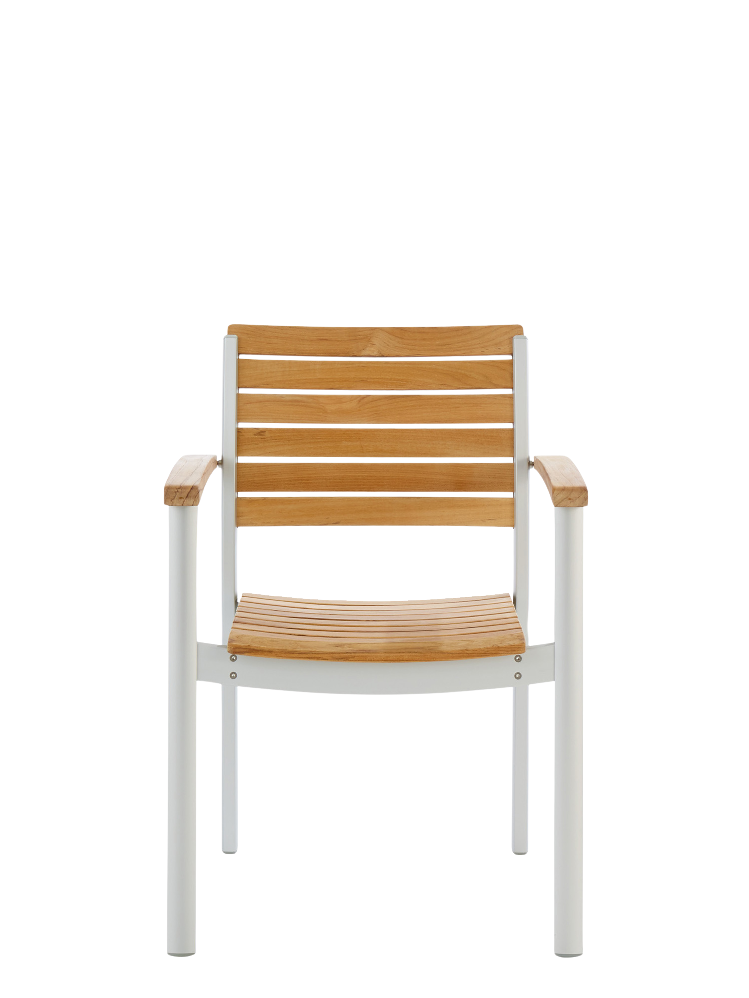 Perfektes Ensemble: Aus der glücklichen Verbindung unterschiedlicher Materialien entstand ein Designklassiker. Die eloxierten Profile des seidig glänzenden Aluminiumgestells des Armlehnstuhls umfassen passgenau an Sitz und Lehne die ergonomisch modellierten Teakleisten.