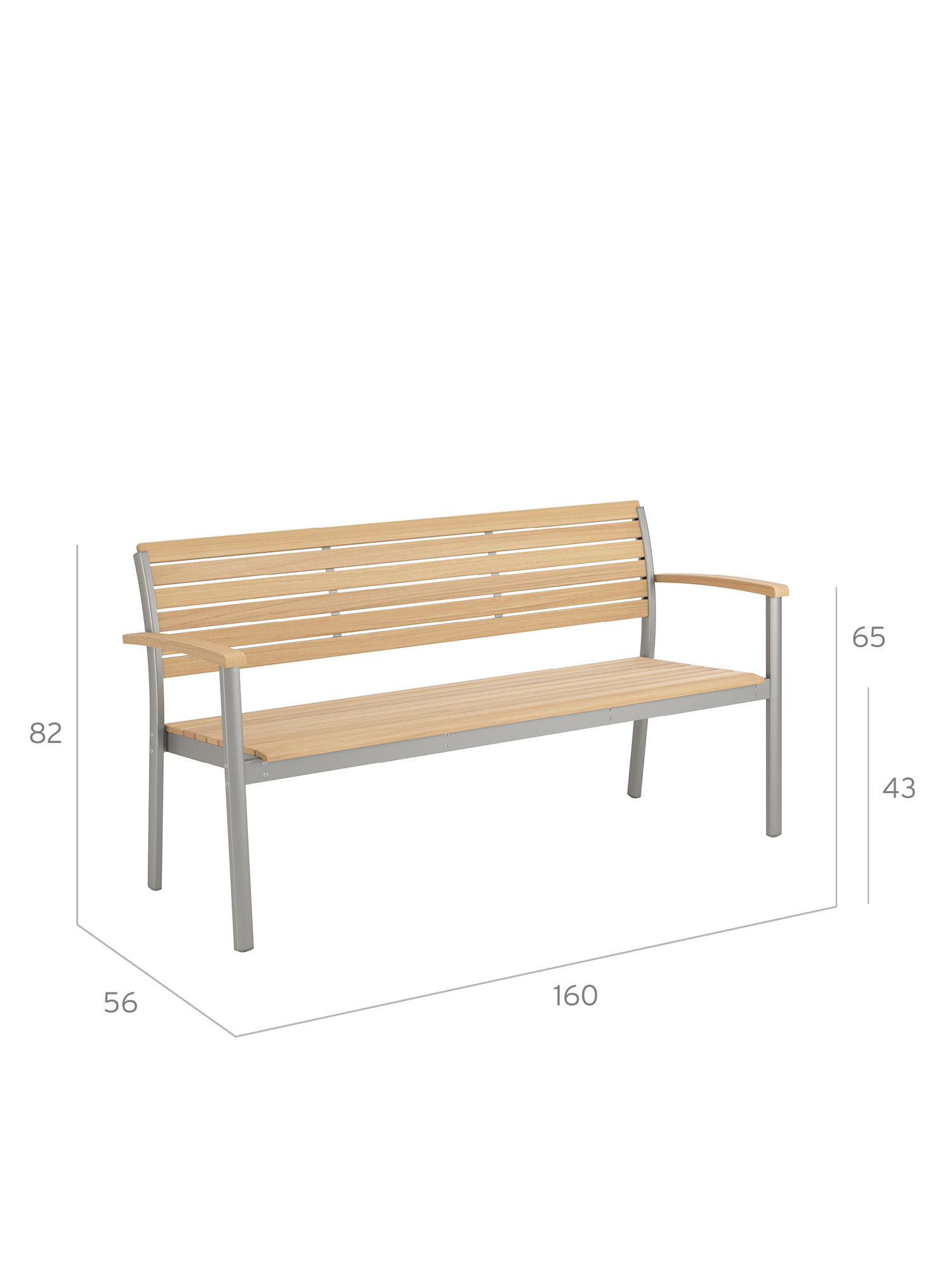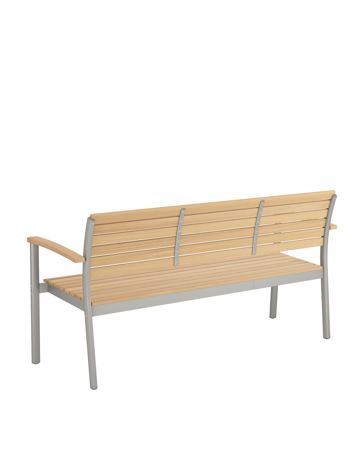 Hier werden langlebige Materialien perfekt in Szene gesetzt: Die eloxierten Profile des seidig glänzenden Aluminiumgestells und die ergonomisch modellierten Teakleisten von Sitzfläche und Rückenlehne gehen eine stimmige Beziehung ein. Der Designklassiker mit moderner Note verspricht bis zu drei Personen Platz.
