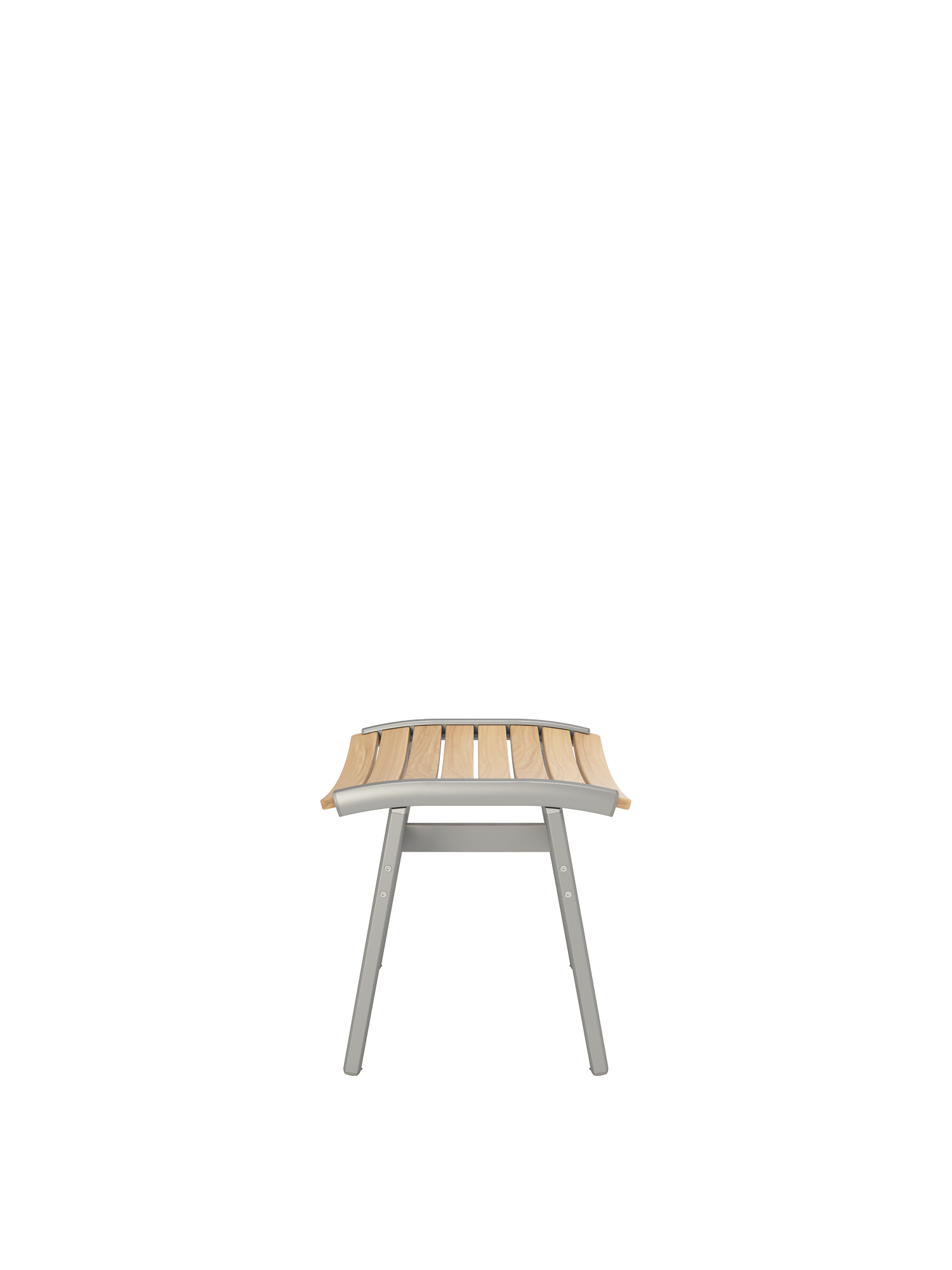 Hier werden langlebige Materialien perfekt in Szene gesetzt: Die eloxierten Profile des seidig glänzenden Aluminiumgestells umfassen passgenau die ergonomisch modellierten Teakleisten der Sitzfläche. Und verleihen dem Designklassiker eine moderne Note.