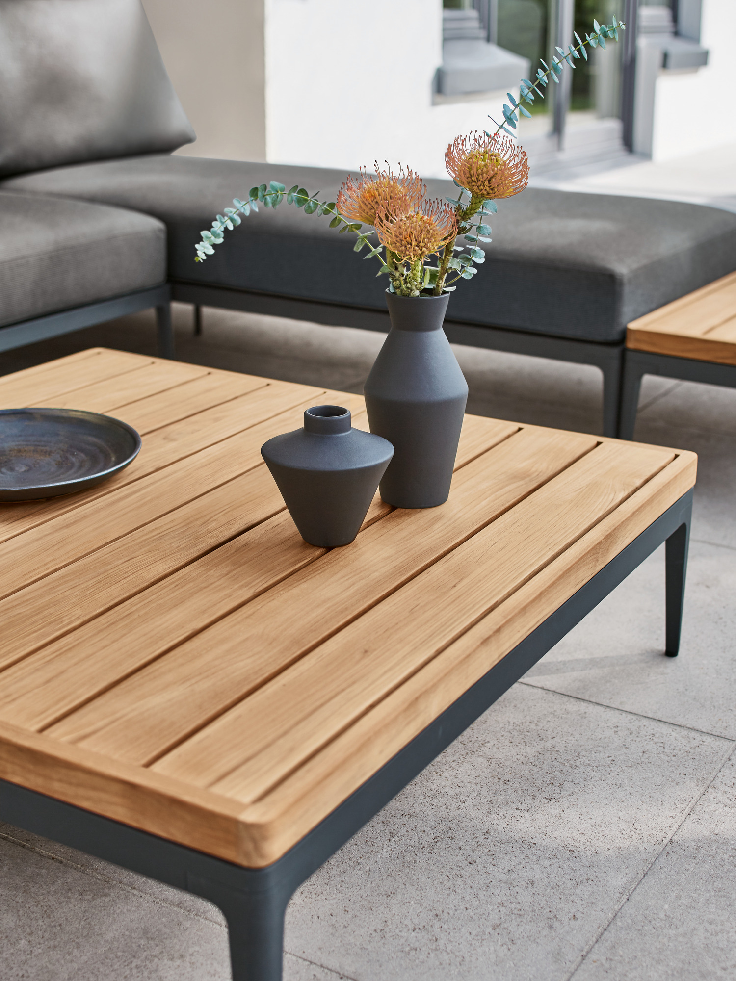 Das Morgans Bay Lounge Set steht für ausgedehnten Komfort. Jeweils zwei Polstermöbel und Couchtische mit Gestellen aus pulverbeschichtetem Aluminium eröffnen angenehmen Gestaltungsspielraum. Von der grünen Gartenlandschaft bis zur urbanen Dachterrasse – Morgans Bay verleiht individuellen Rückzugsorten eine moderne Note.