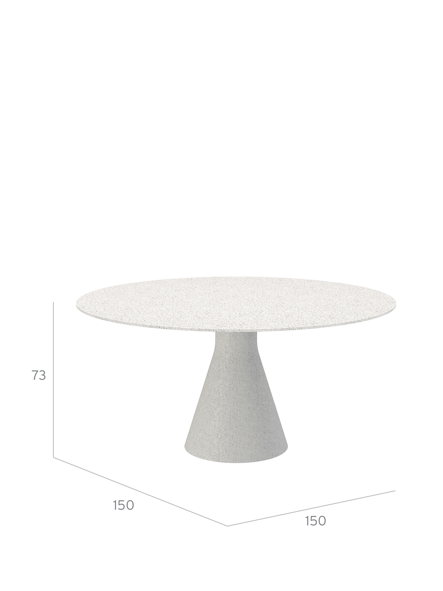 Der Namur Tisch mit einem konisch geformten Mittelfuß lässt angenehme Beinfreiheit für kleinere und größere Runden. Gesprächsthema dürfte auch das skulpturale Design des Tisches sein. Gastgeber und Gäste behalten sich stets im Blick und genießen die Gesellschaft – bei gekühlten Getränken oder beim Nachmittagskaffee, beim Snack zwischendurch oder beim exquisiten Abendessen.