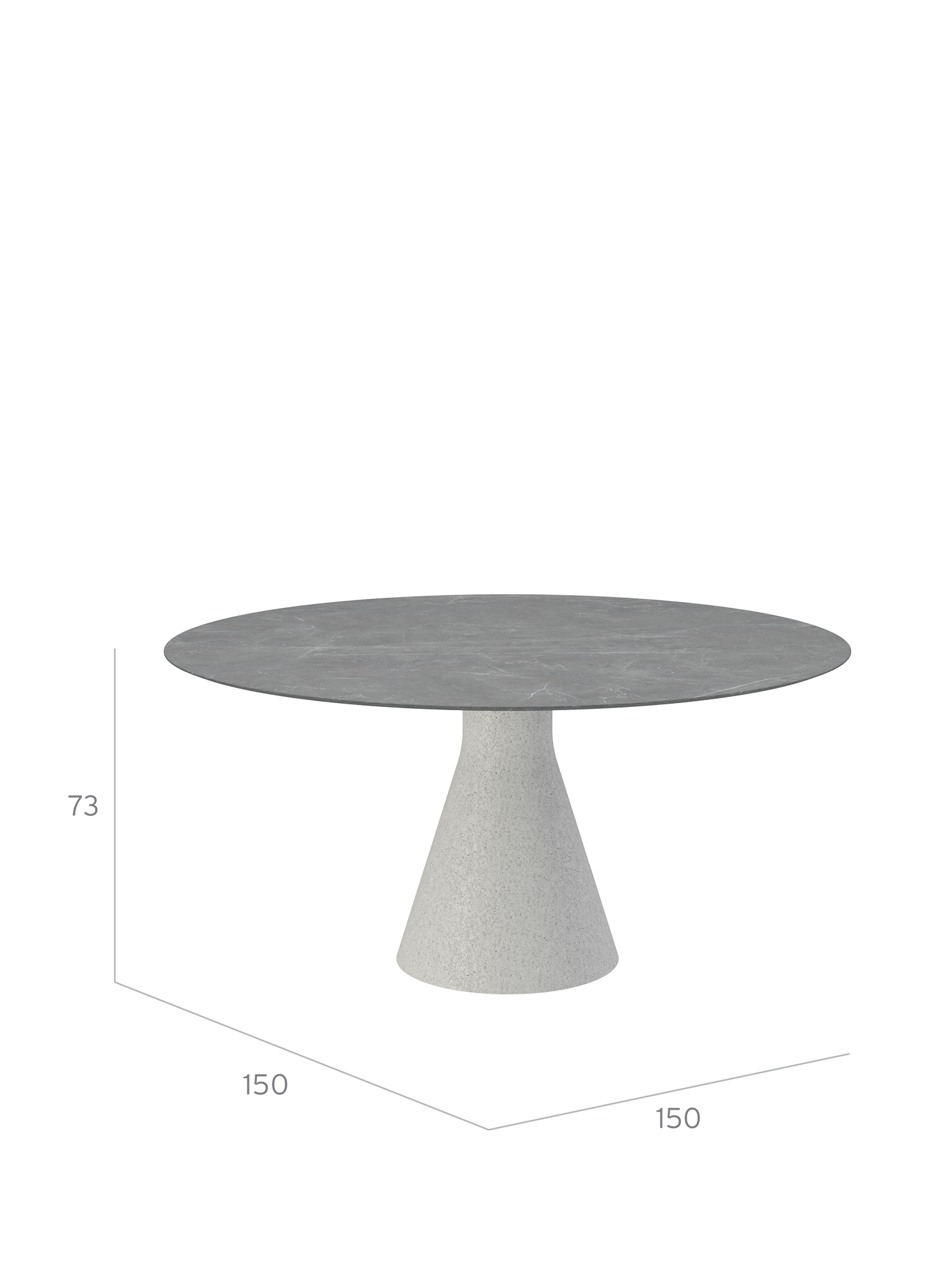 Der Namur Mittelfußtisch mit einem Durchmesser von 150 cm bittet zu Tisch und lädt zu anregenden Gesprächen, gemeinsamen Mahlzeiten und mehr ein.