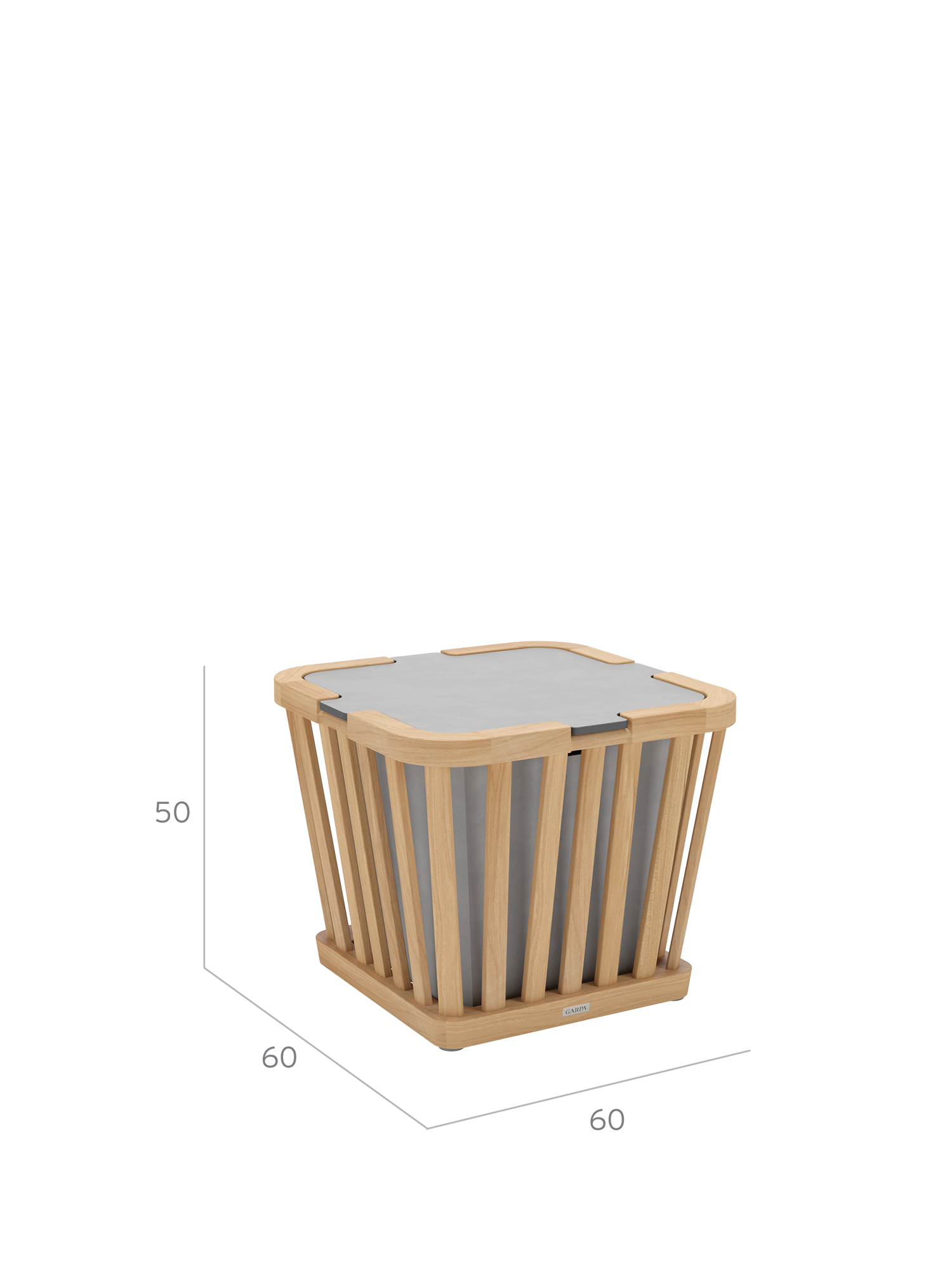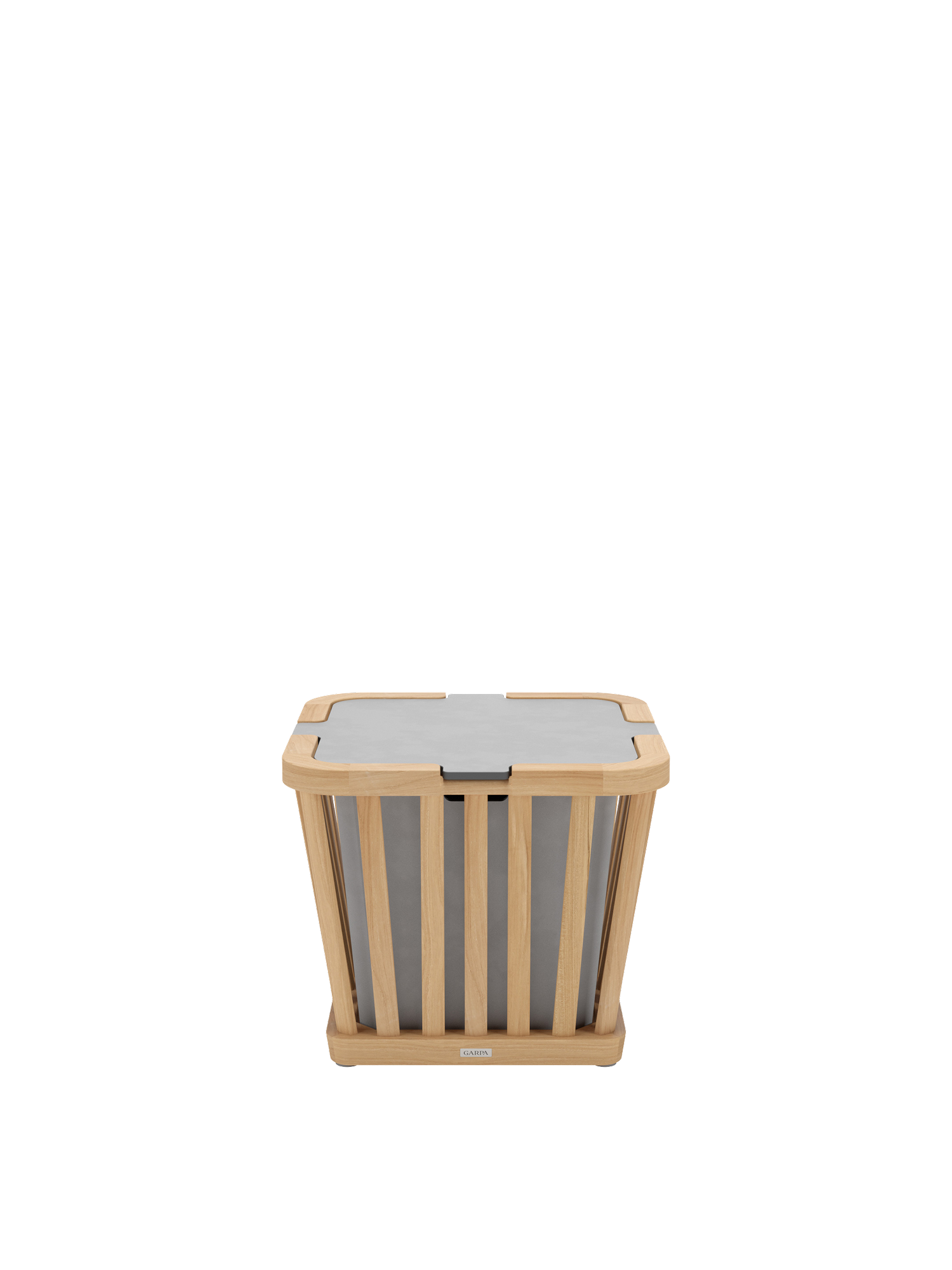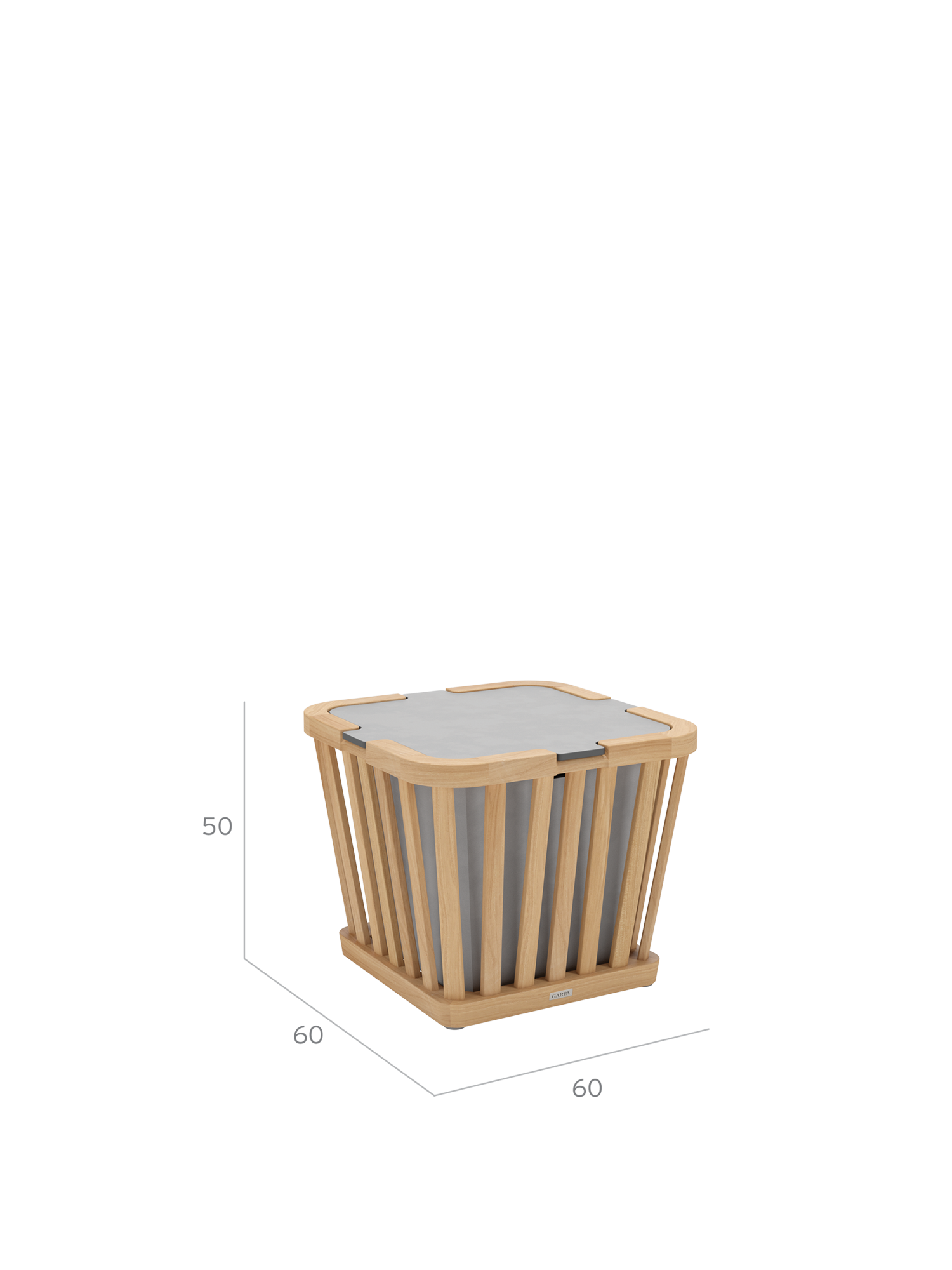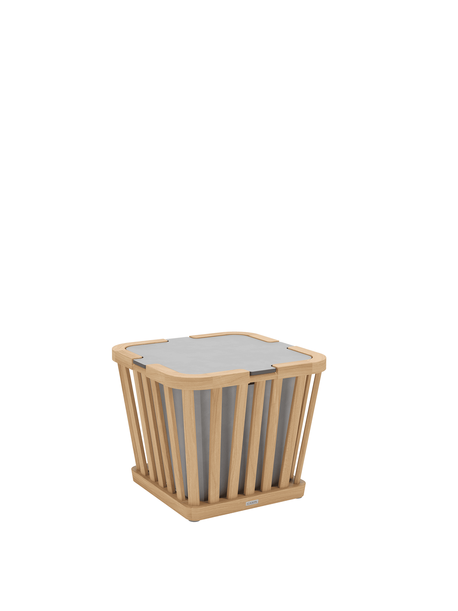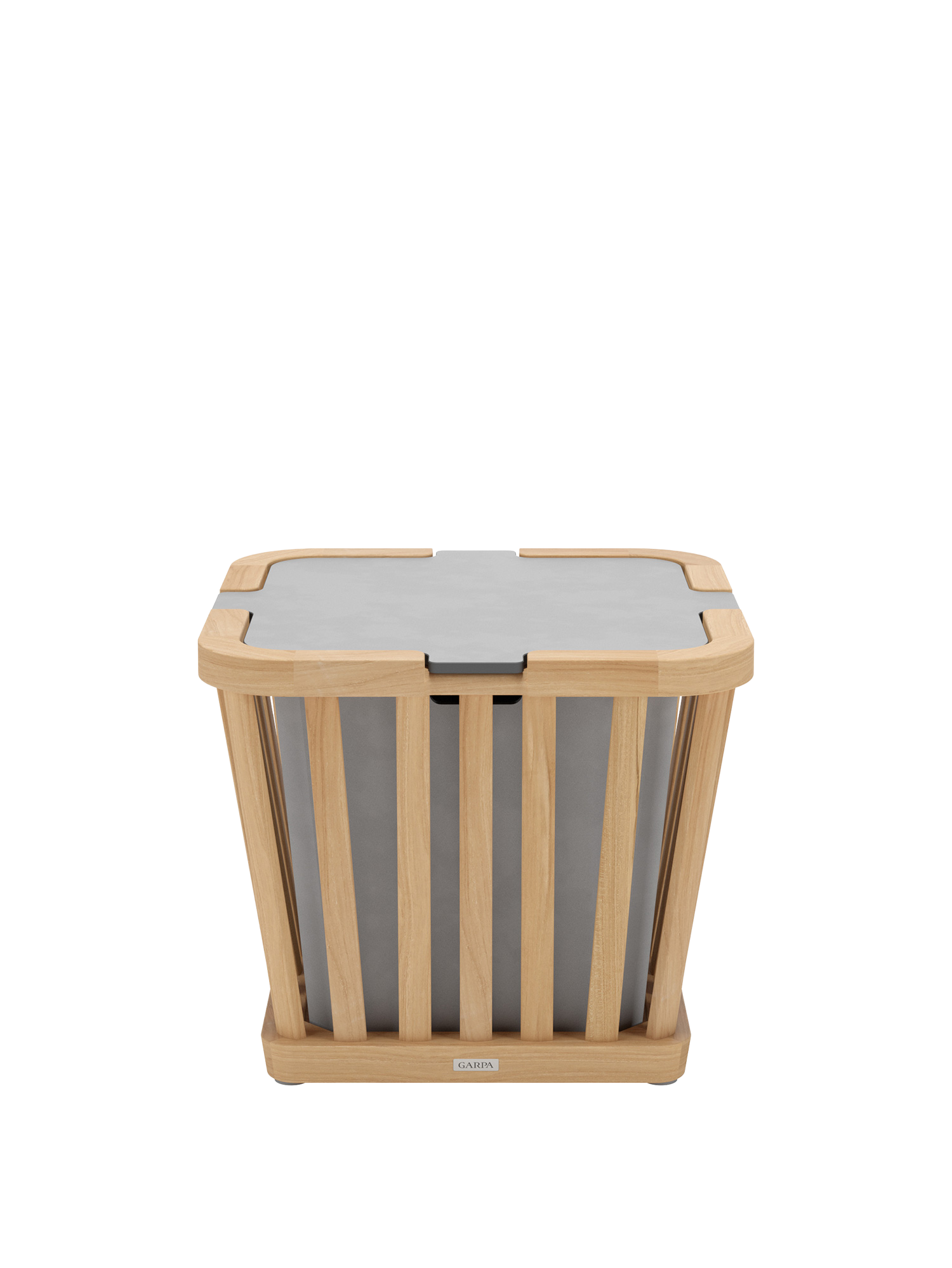 Damit Newcastle seine Wirkung voll entfalten kann, spielt das Rack aus Teak und Kunstharz all seine Vorzüge aus. In seinem Inneren verschwinden unter anderem Räder, Abdeckhaube und Schutzhülle für das Newcastle Sommerdach.