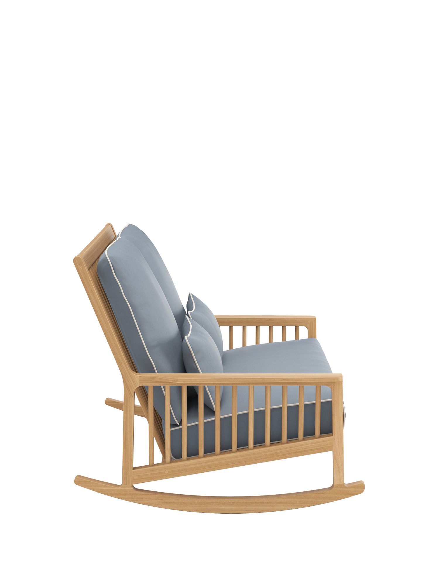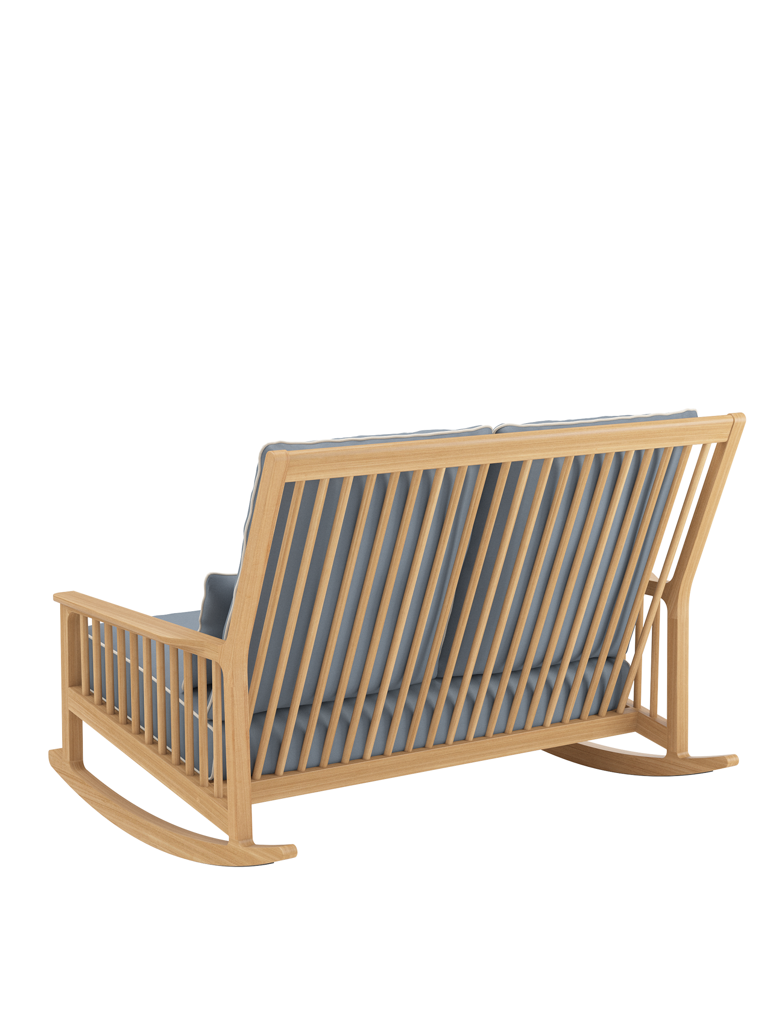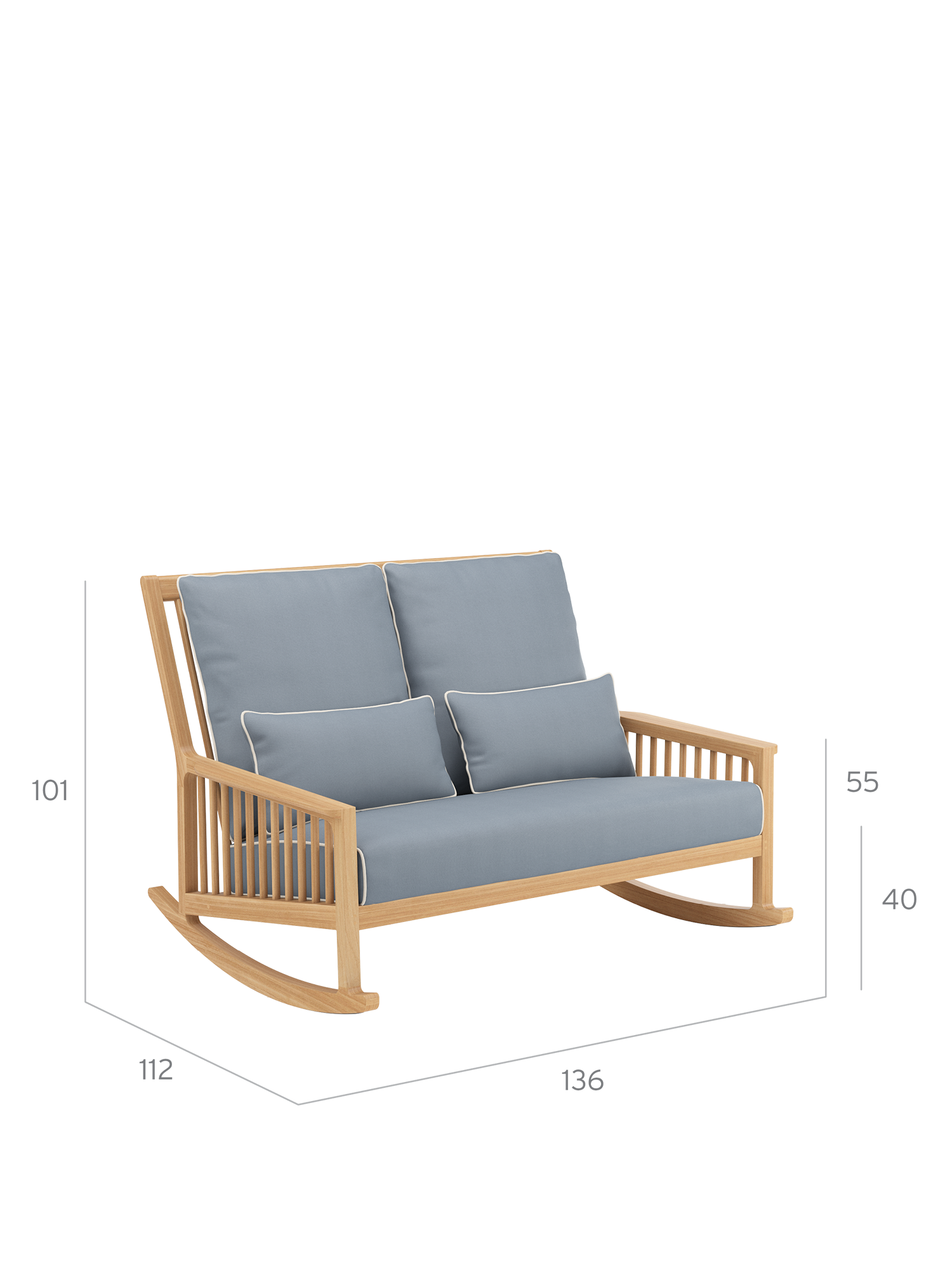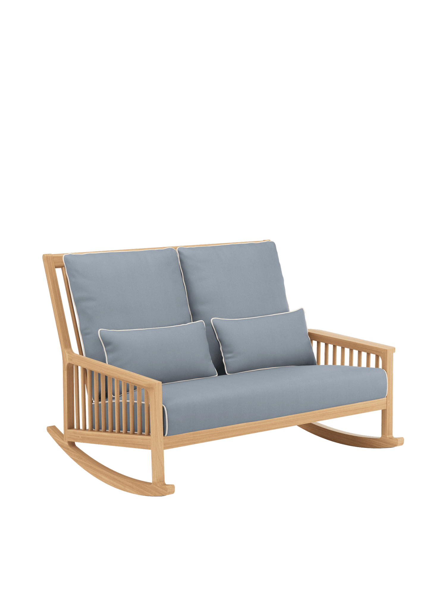Die bewährten Qualitäten von Gartenbank und Schaukelstuhl potenzieren sich, wenn man sie vereint. Der Zweisitzer ist dazu da, glückliche Stunden zu teilen und Behaglichkeit Seite an Seite zu genießen. Newhaven verwöhnt dabei mit einer schulterhohen Rückenlehne und besonders tiefem Sitz. Klassisches Teak bringt die nötige Bodenhaftung, elegantes Design den erwünschten Schwung. Hat man beide Sitzplätze einmal ganz für sich allein, kann man sich darauf auch ausstrecken, die Beine hoch- und eines der weichen Kissen unter den Kopf legen.