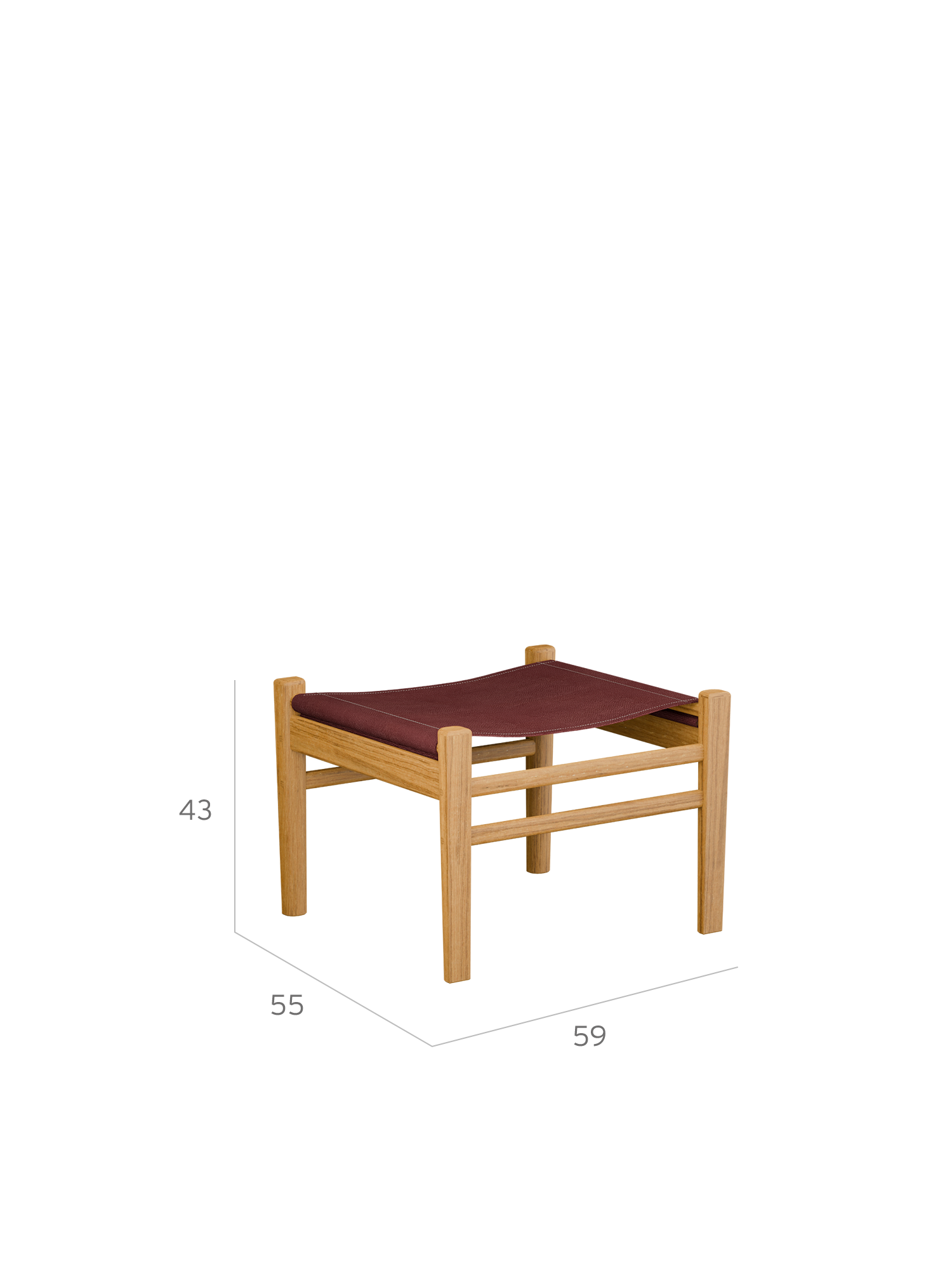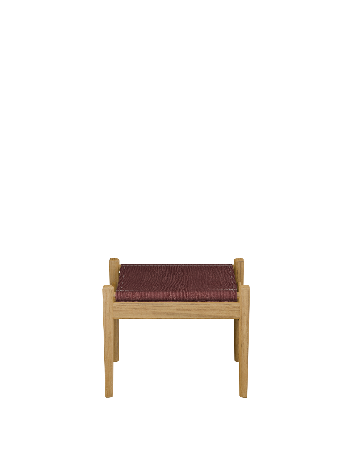 Der in verschiedenen Dessins erhältliche Hocker der Nomai Kollektion bereichert einladende Loungegruppen – als stimmige Ergänzung zum Sessel, der den ikonischen Safari Chair von Kaare Klint neu interpretiert, oder als zusätzlicher Sitzplatz. Der Hocker besteht aus FSC-zertifiziertem Plantagenteak und hat funktionale Details aus Edelstahl sowie eine texturierte Bespannung, die anschmiegsam ist.