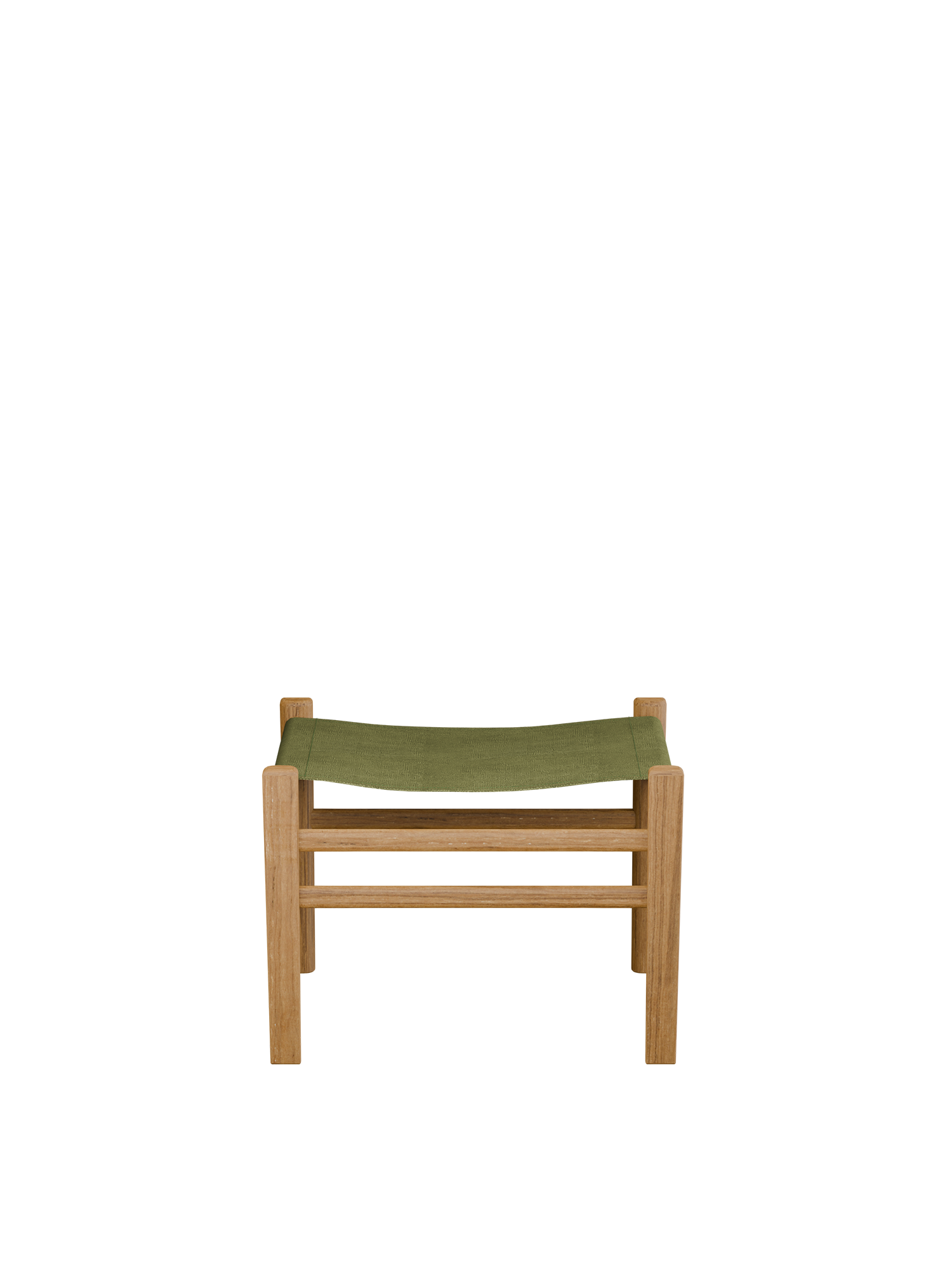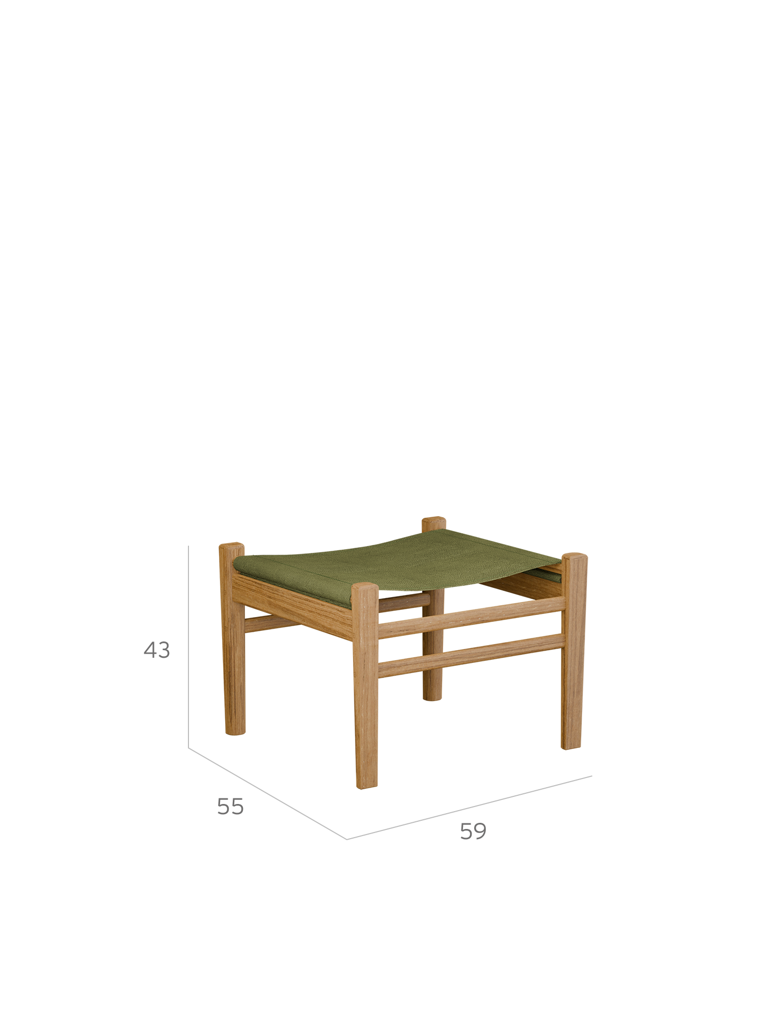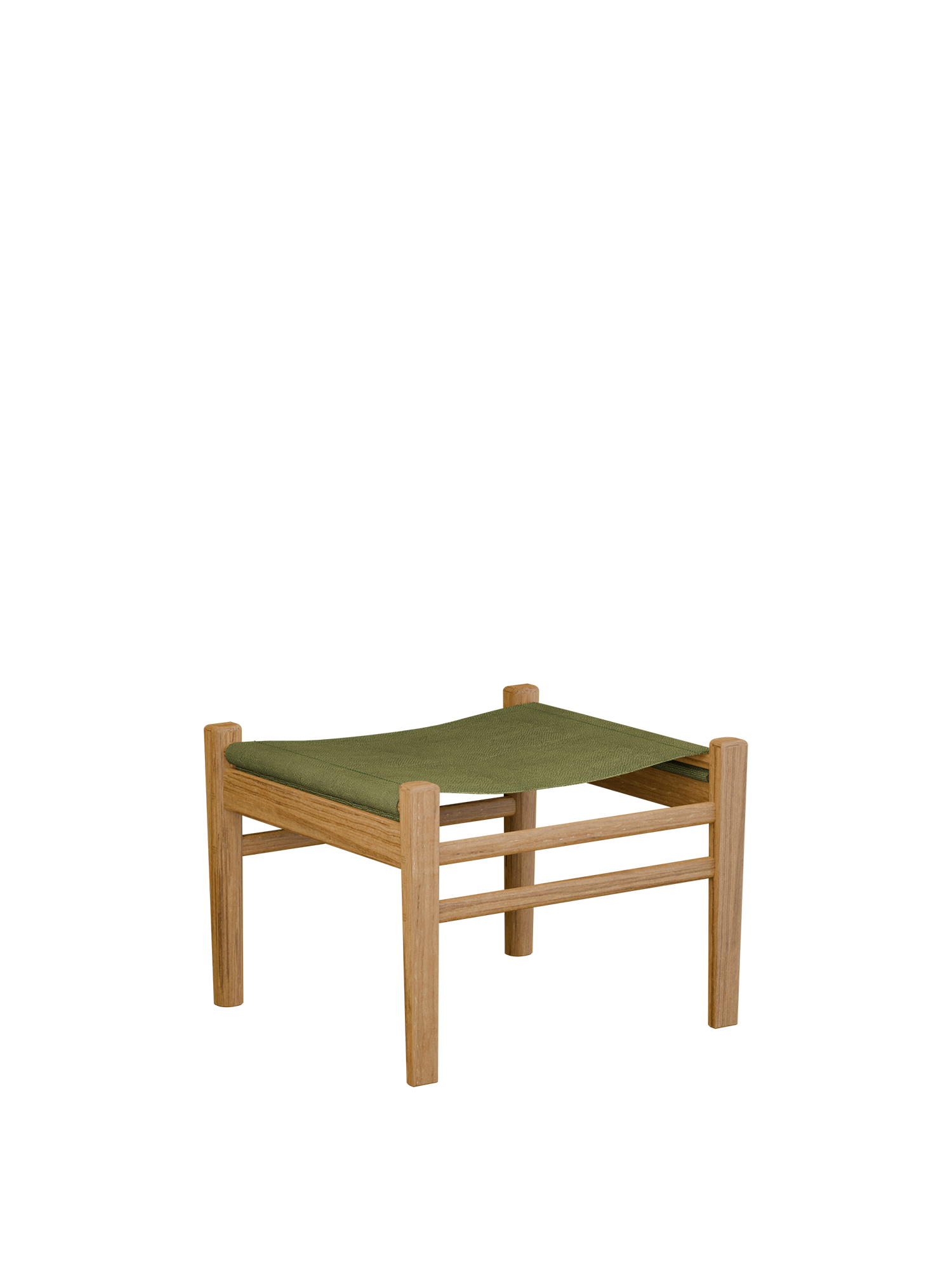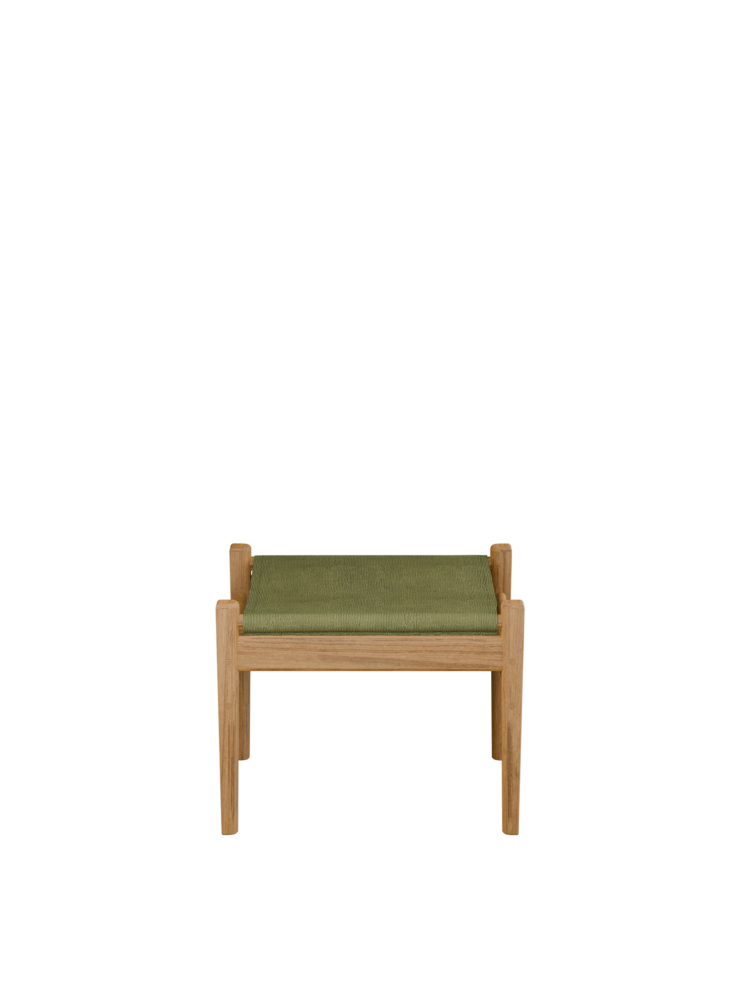 Der in verschiedenen Dessins erhältliche Hocker der Nomai Kollektion bereichert einladende Loungegruppen – als stimmige Ergänzung zum Sessel, der den ikonischen Safari Chair von Kaare Klint neu interpretiert, oder als zusätzlicher Sitzplatz. Der Hocker besteht aus FSC-zertifiziertem Plantagenteak und hat funktionale Details aus Edelstahl sowie eine texturierte Bespannung, die anschmiegsam ist.
